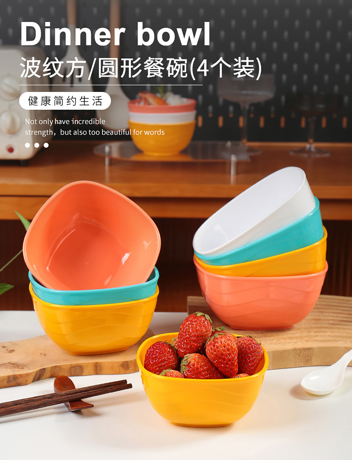 波紋圓形/方形餐碗 小號/中號/大號(4個裝)