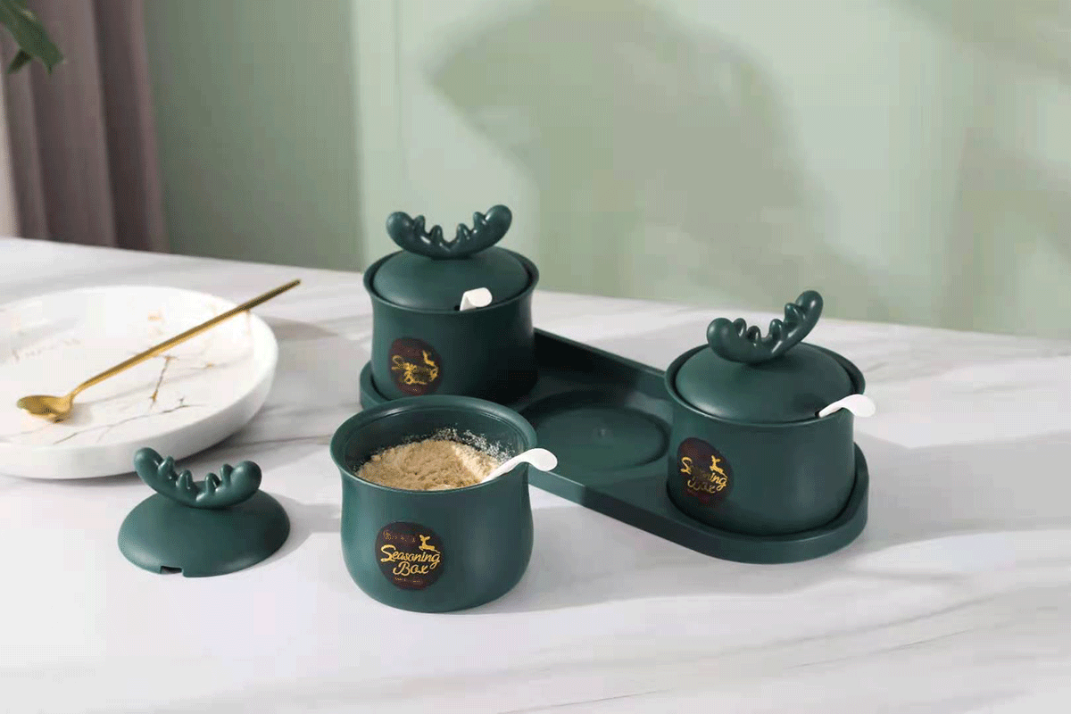 掛壁萌鹿兩格/三格調(diào)味盒