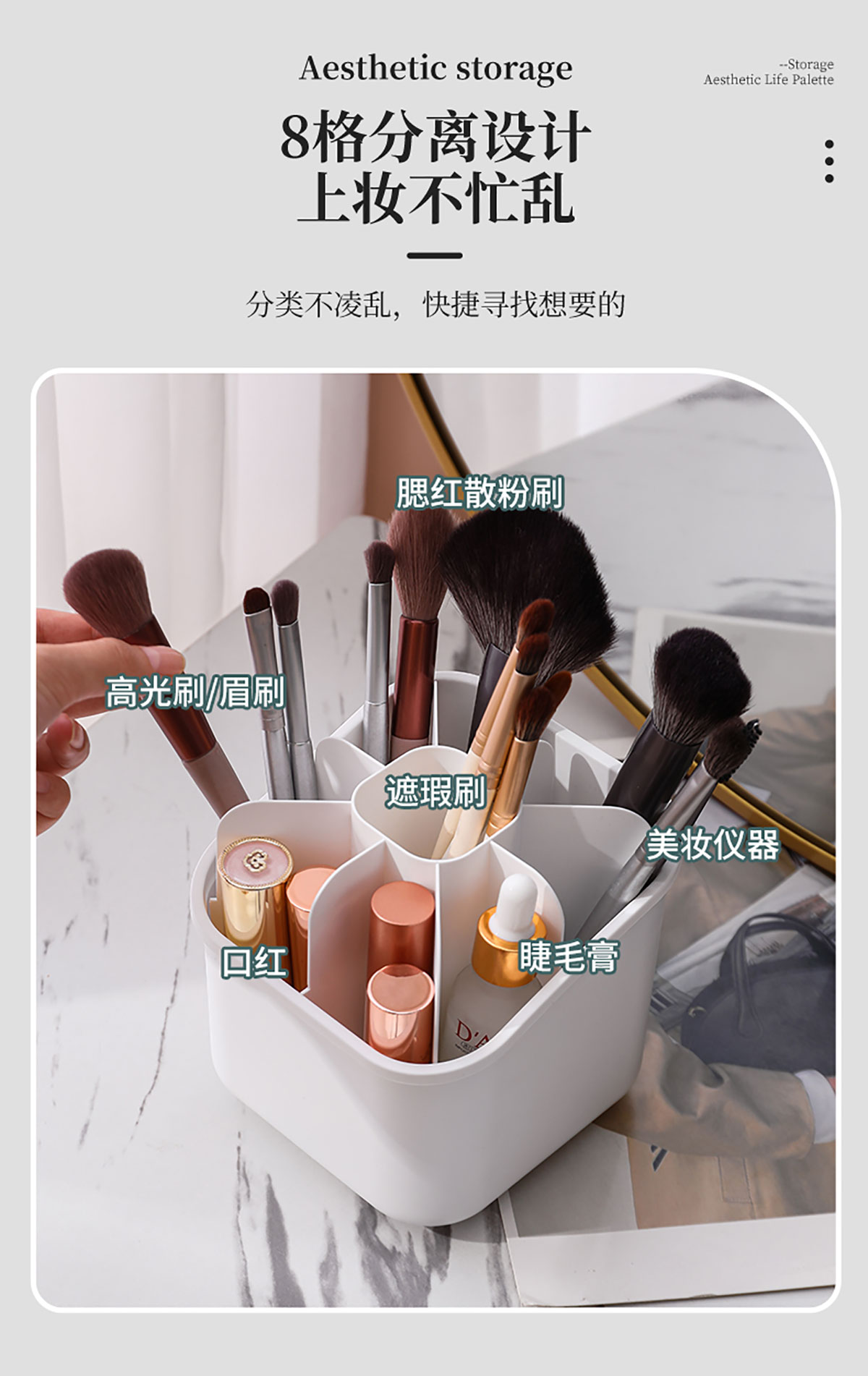 方形化妝收納盒 (帶蓋/不帶蓋)
