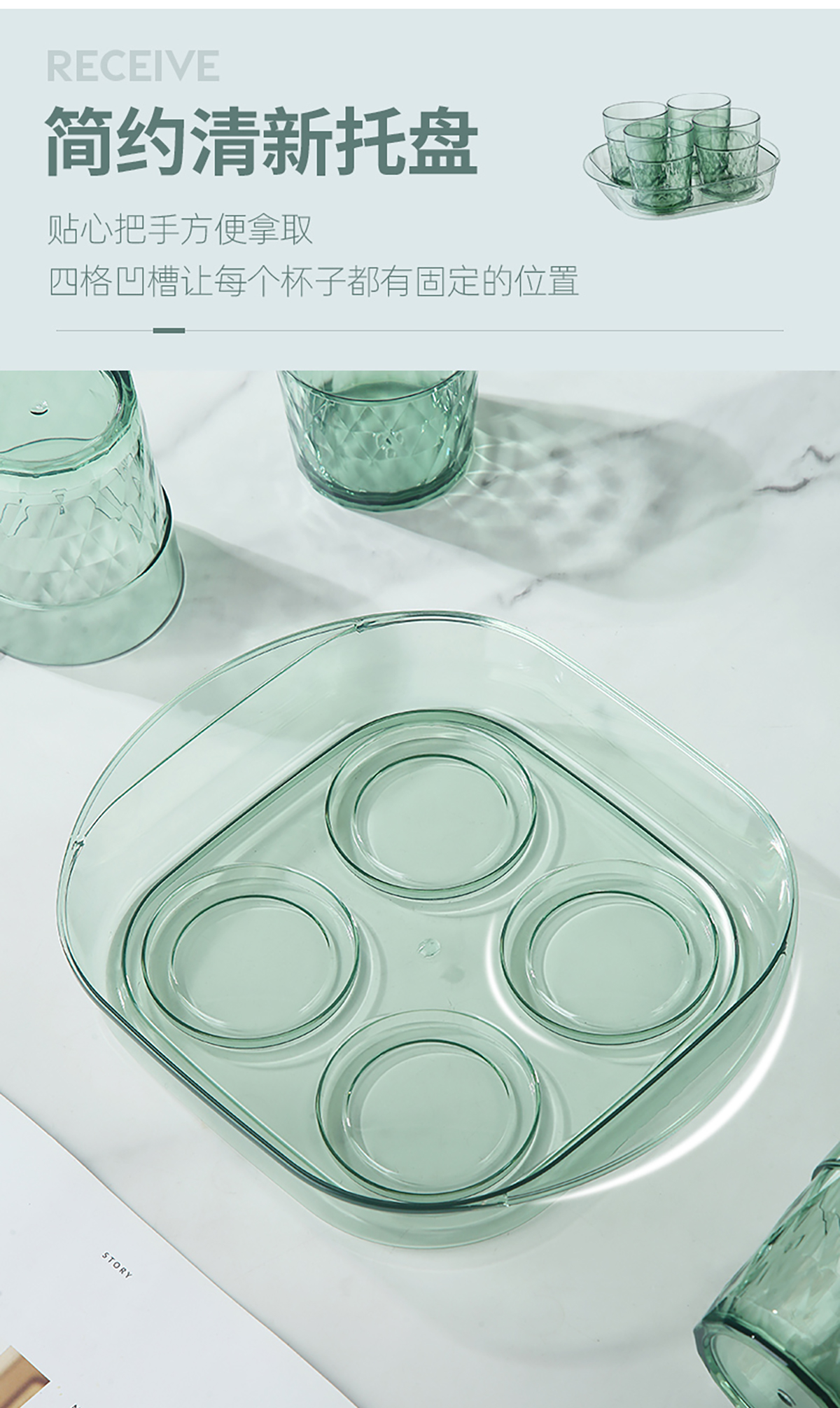 晶透水杯套裝(4杯+托盤)310mlx4