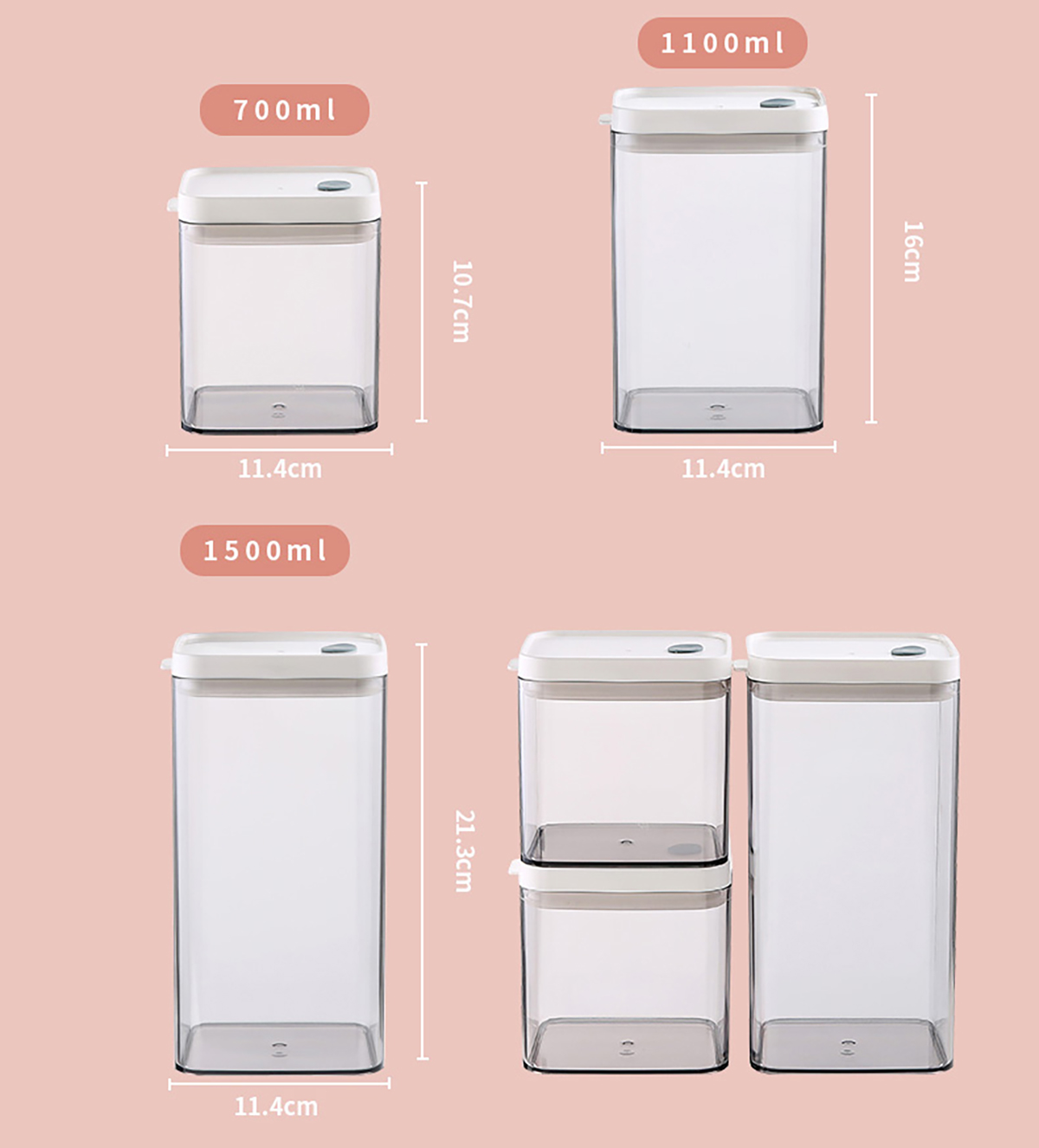 睿思長(zhǎng)方形密封罐(700ml/1100ml/1500ml/1900ml)