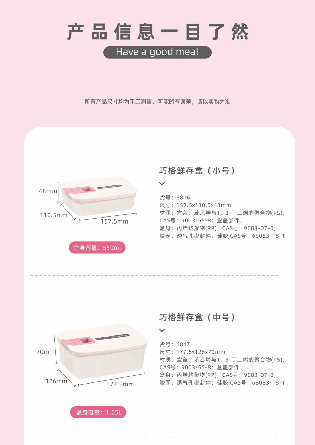 Size: HM-6816(小號(hào)):158*112*48mm/550ml
