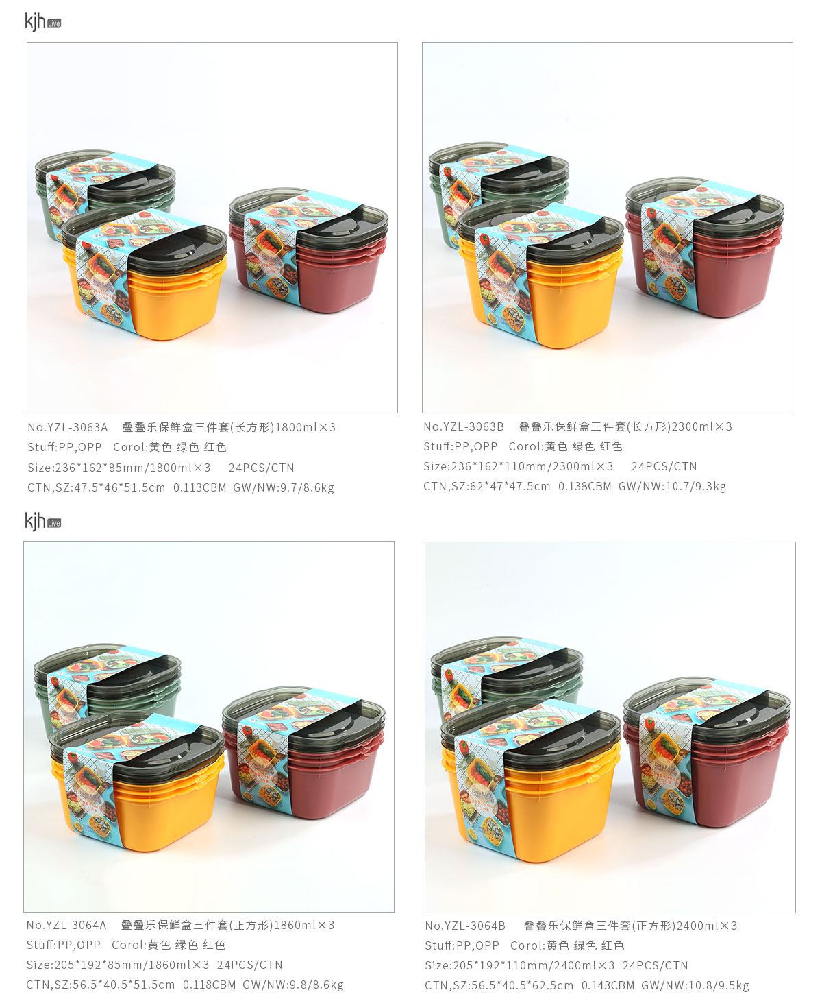 Size: YZL-3063A(長方形):236*162*85mm/1800ml×3