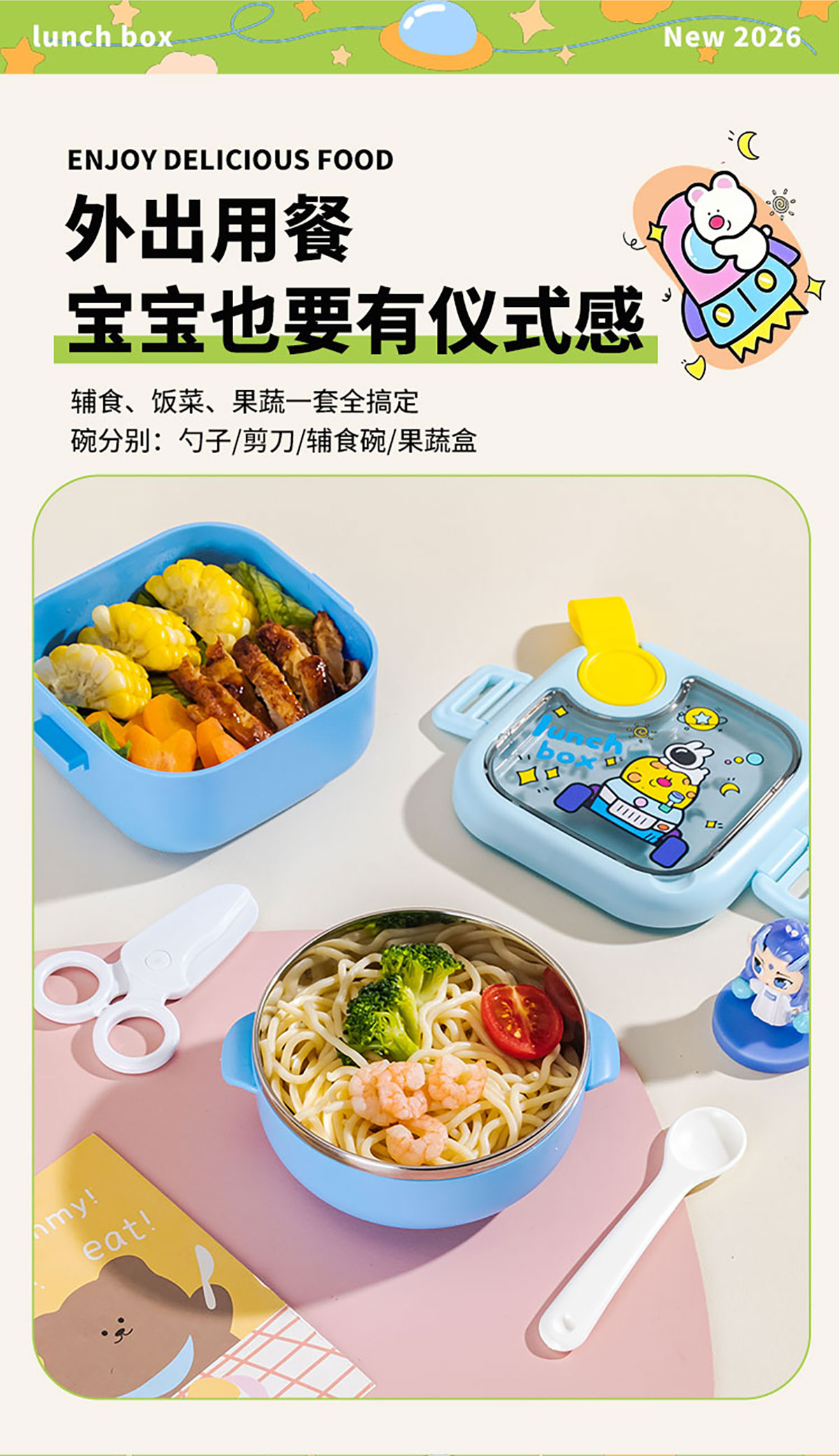 兒童外出不銹鋼輔食套裝  2026新色