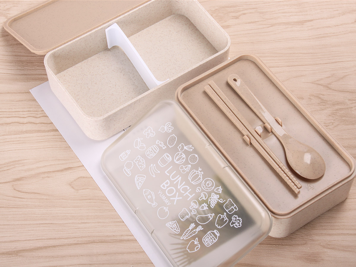 麥秸稈透明蓋長方形飯盒