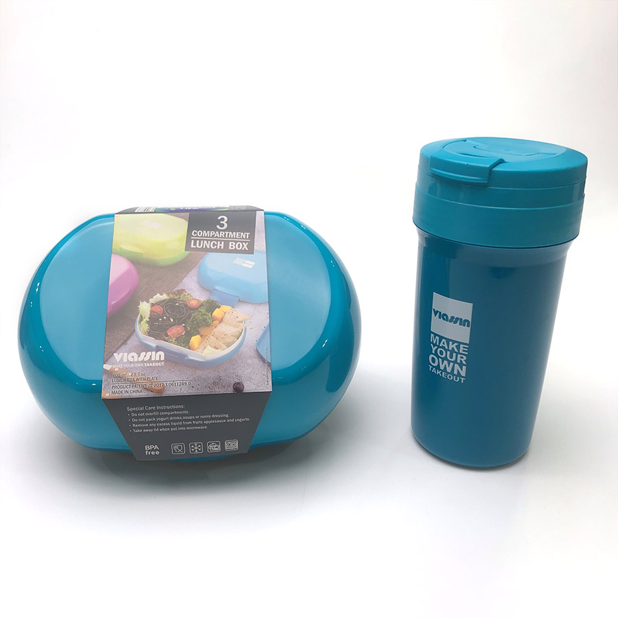 鮮樂3格餐盒+隨手杯套裝(橢圓700ml+500ml)
