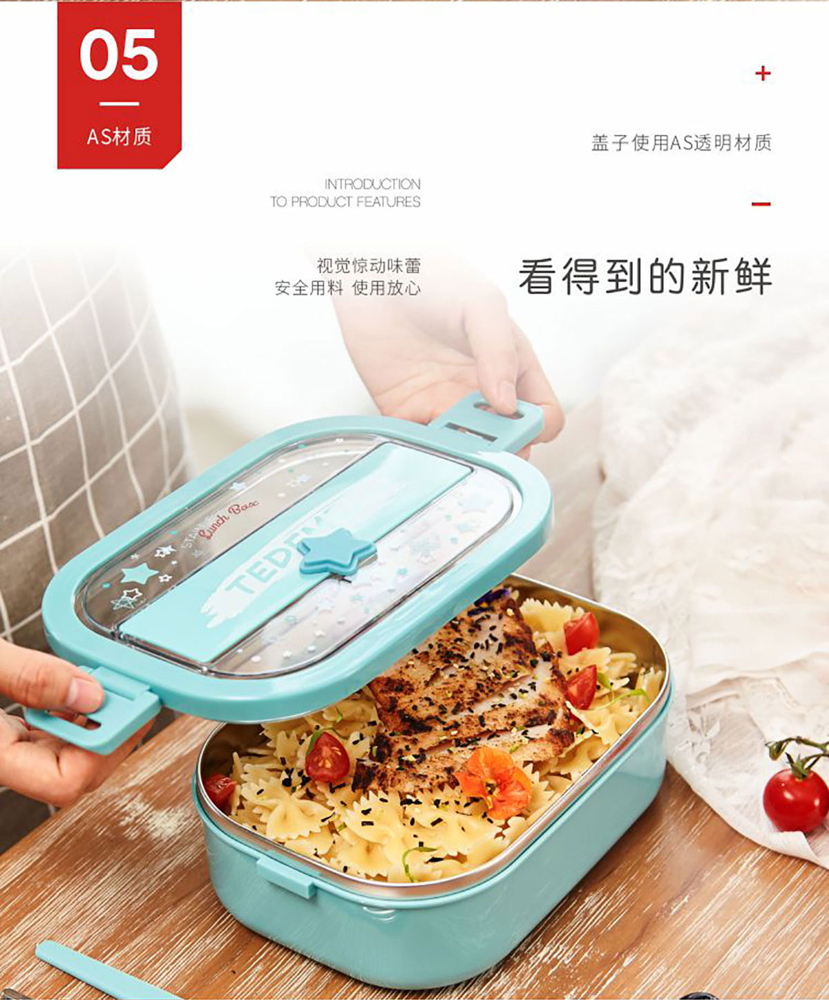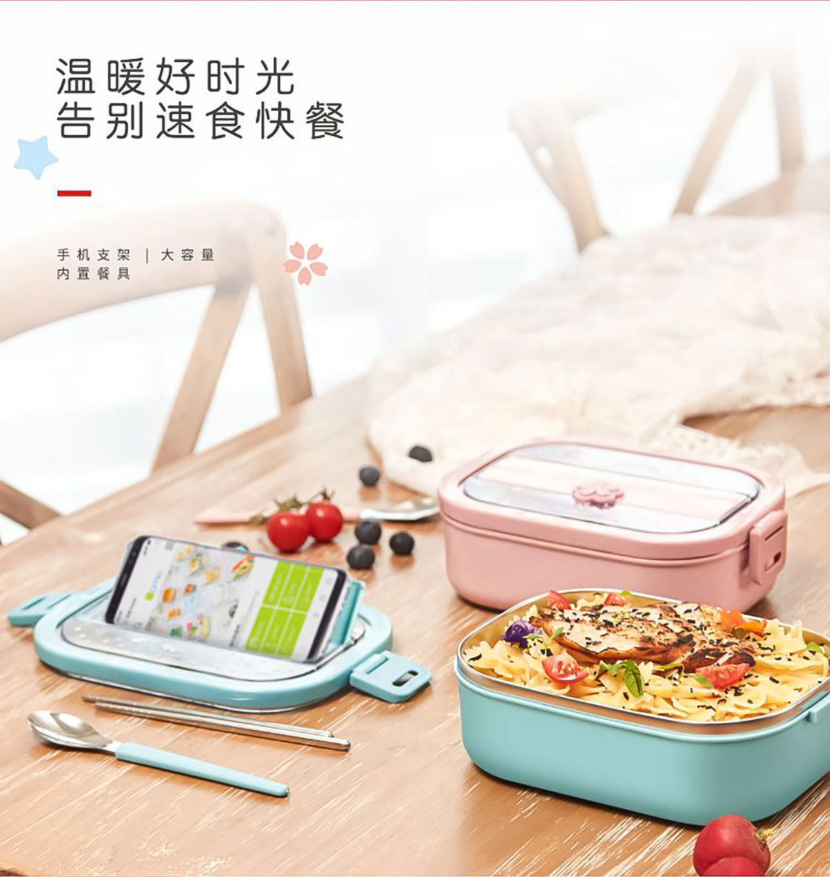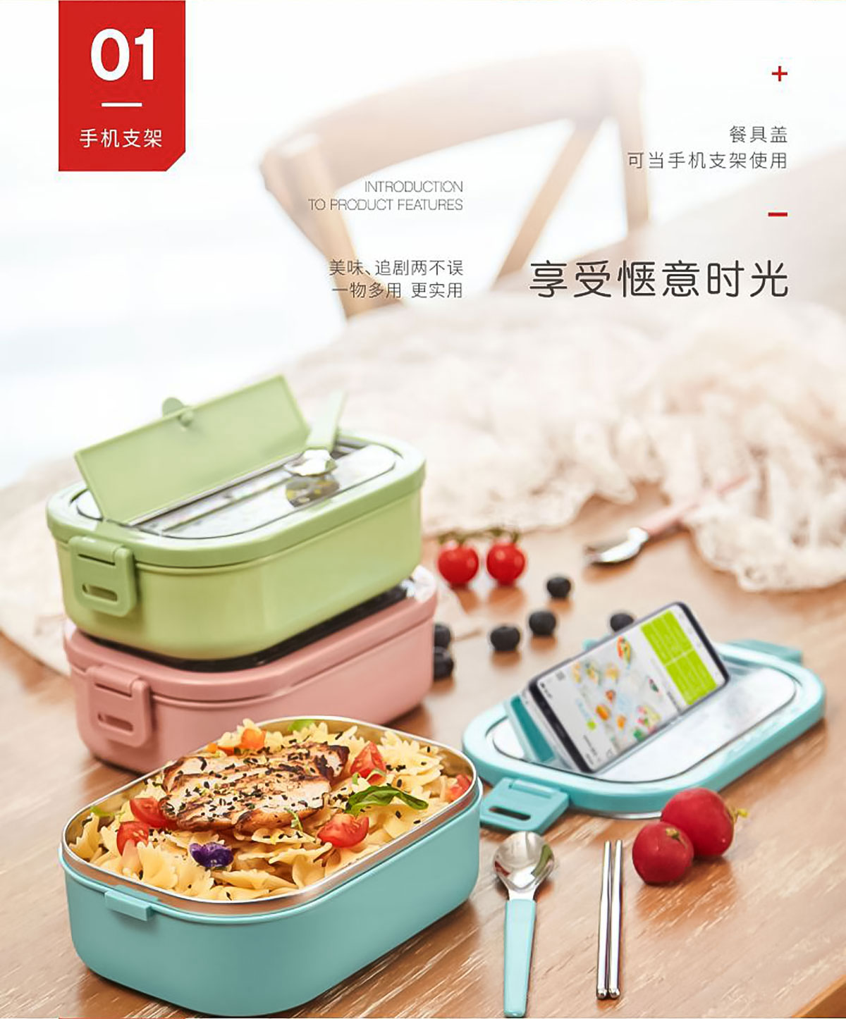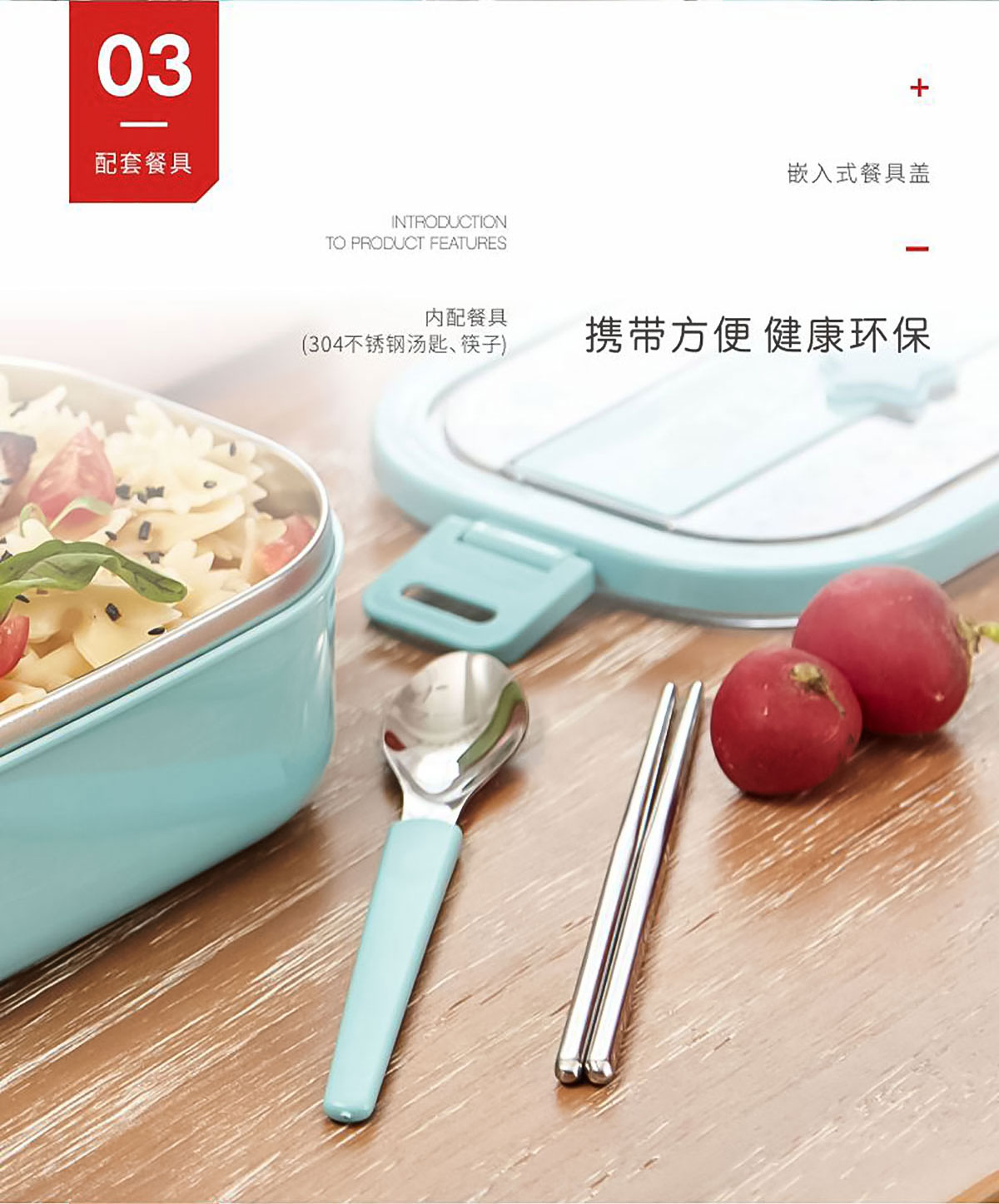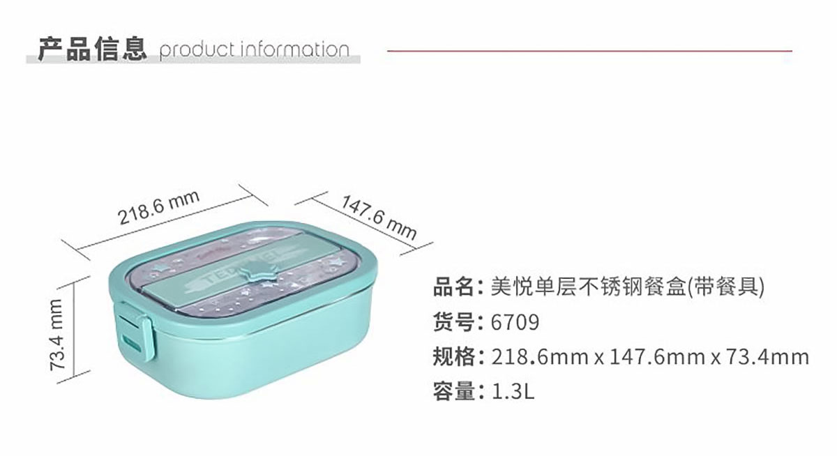 美悅單層不銹鋼餐盒(帶餐具)1300ml