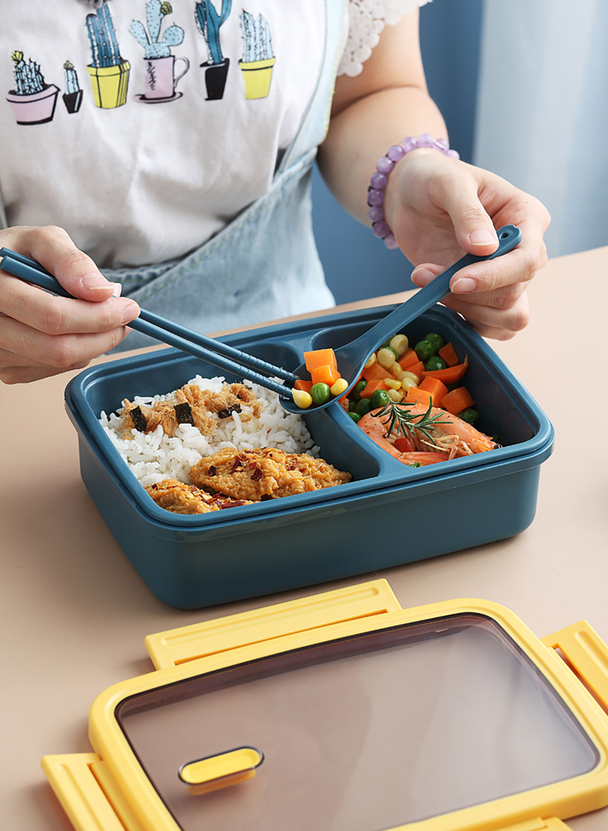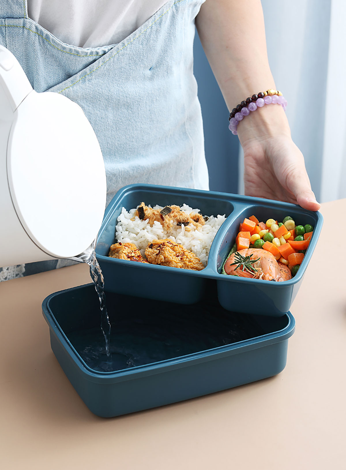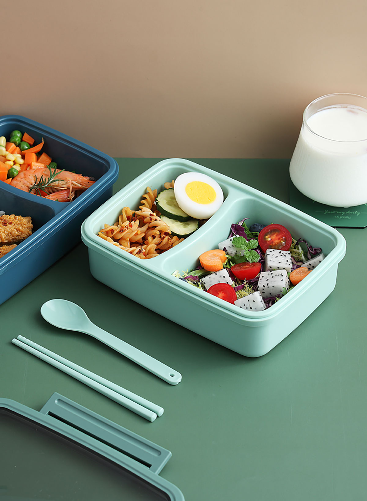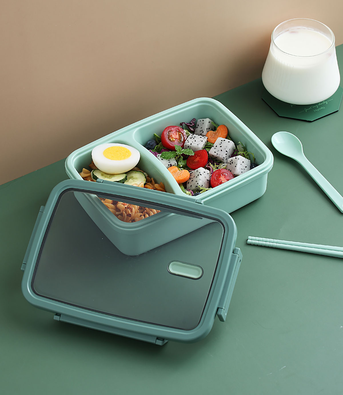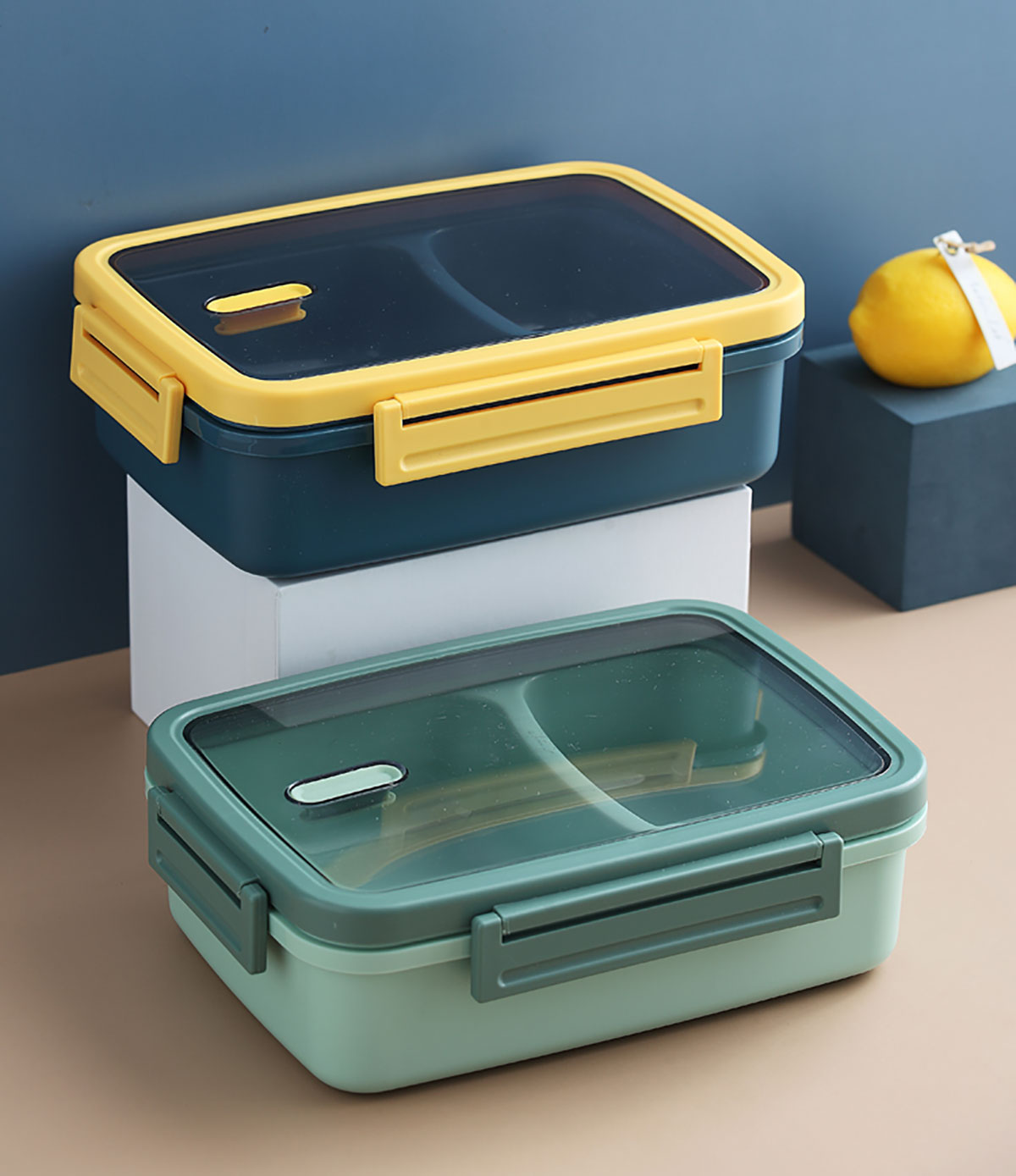 莫蘭迪長方雙格飯盒