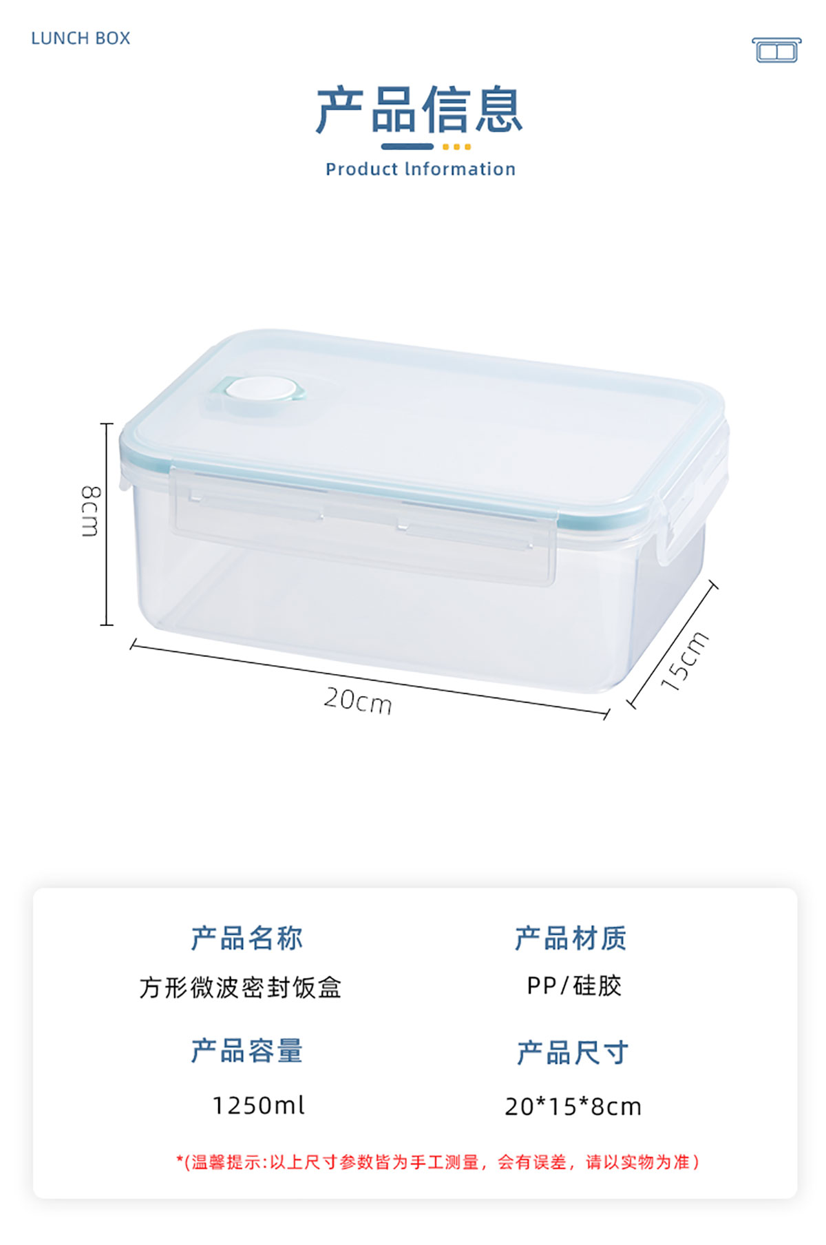 方形微波密封飯盒