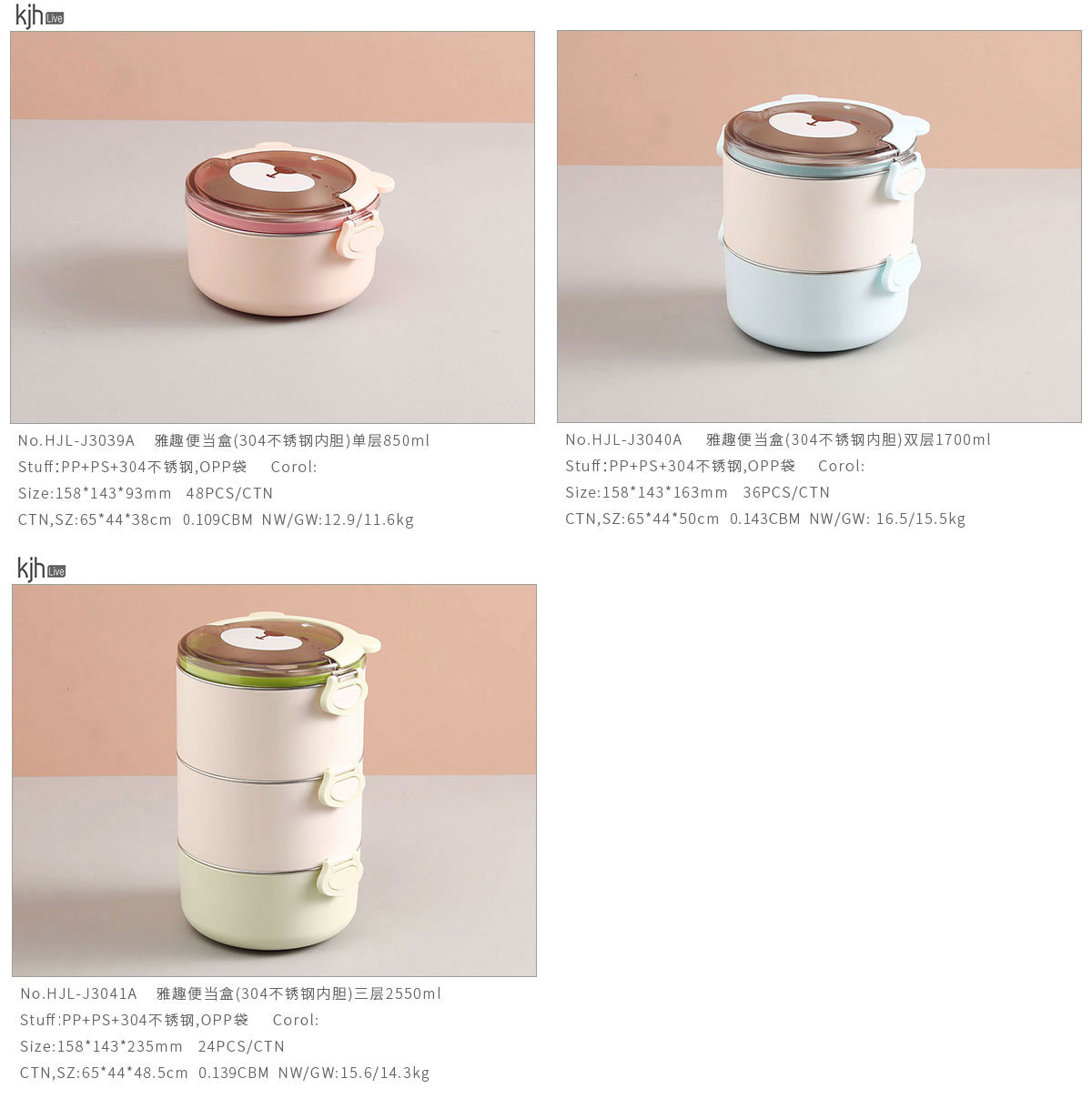 雅趣便當(dāng)盒(304不銹鋼內(nèi)膽)單層850ml/雙層1700ml/三層2550ml(2022年新色)