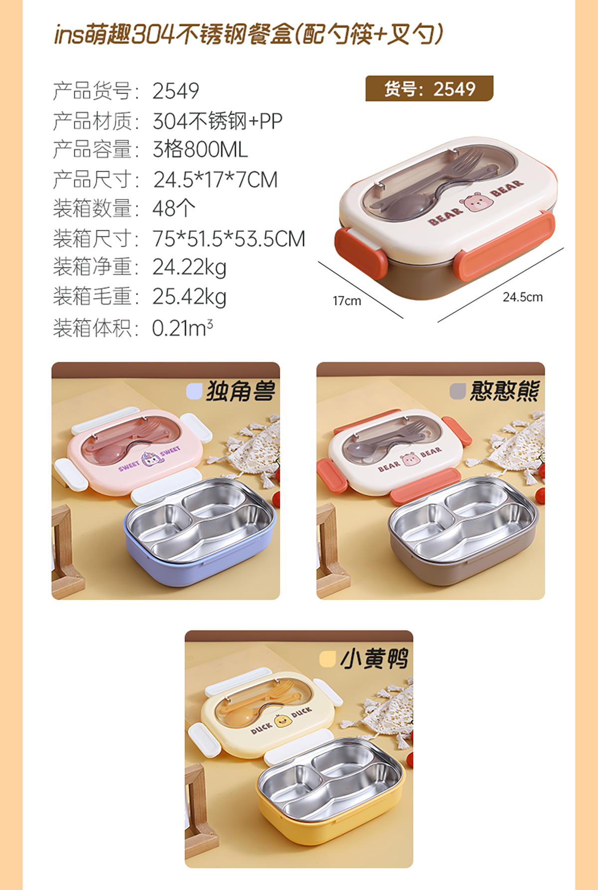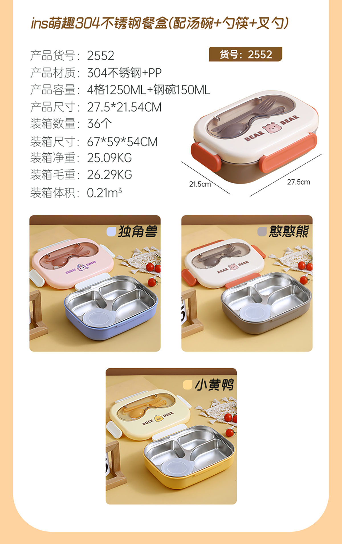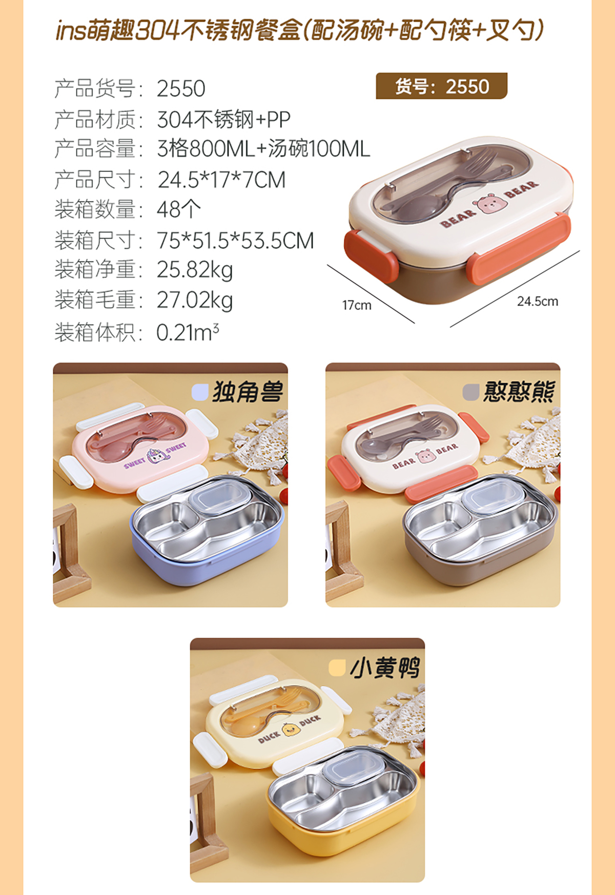 ins萌趣304不銹鋼餐盒系列