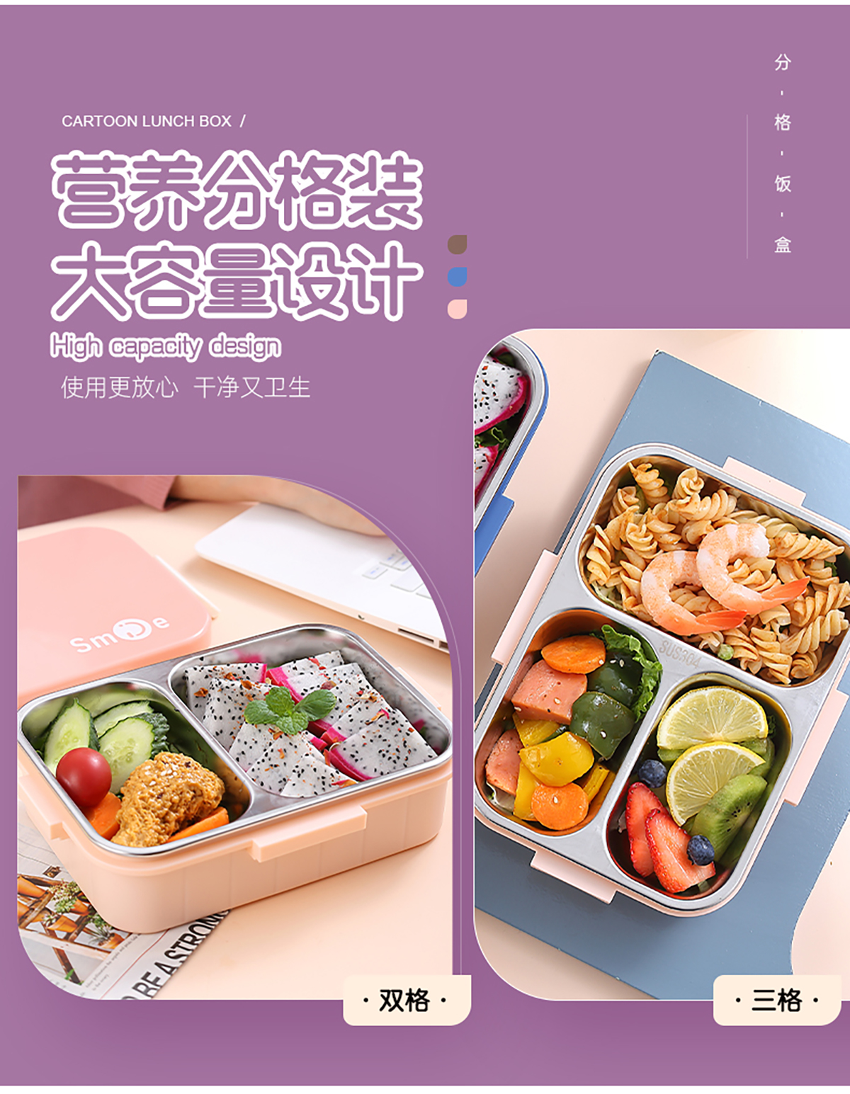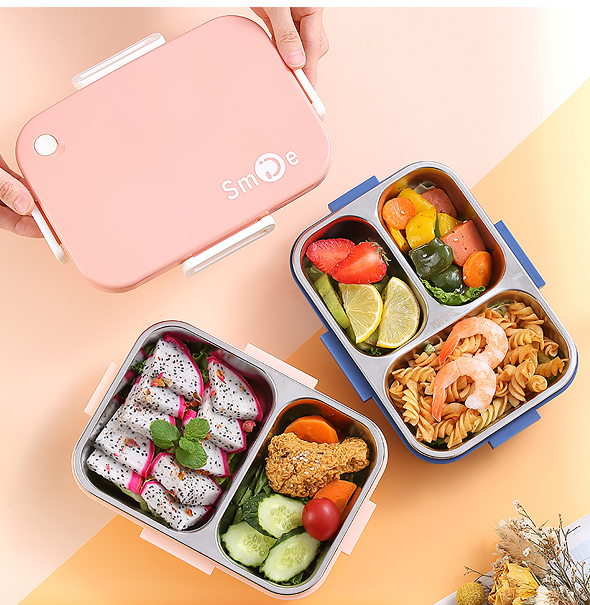 800ml/750ml獨(dú)立密封不銹鋼餐盒(時(shí)尚二格/三格+不銹鋼勺筷)