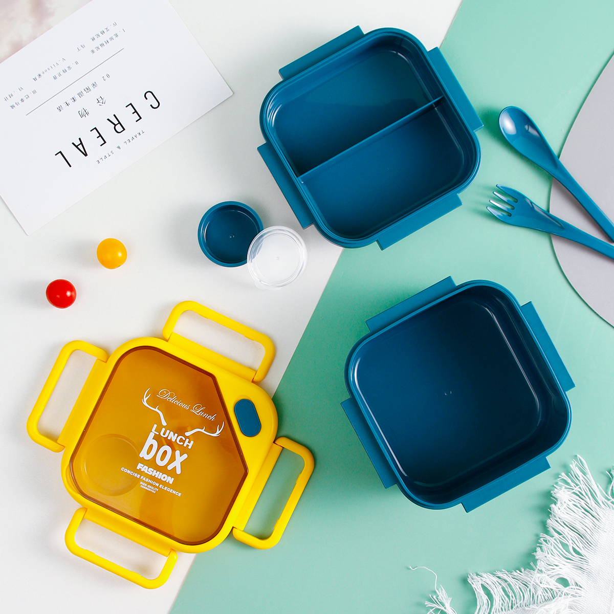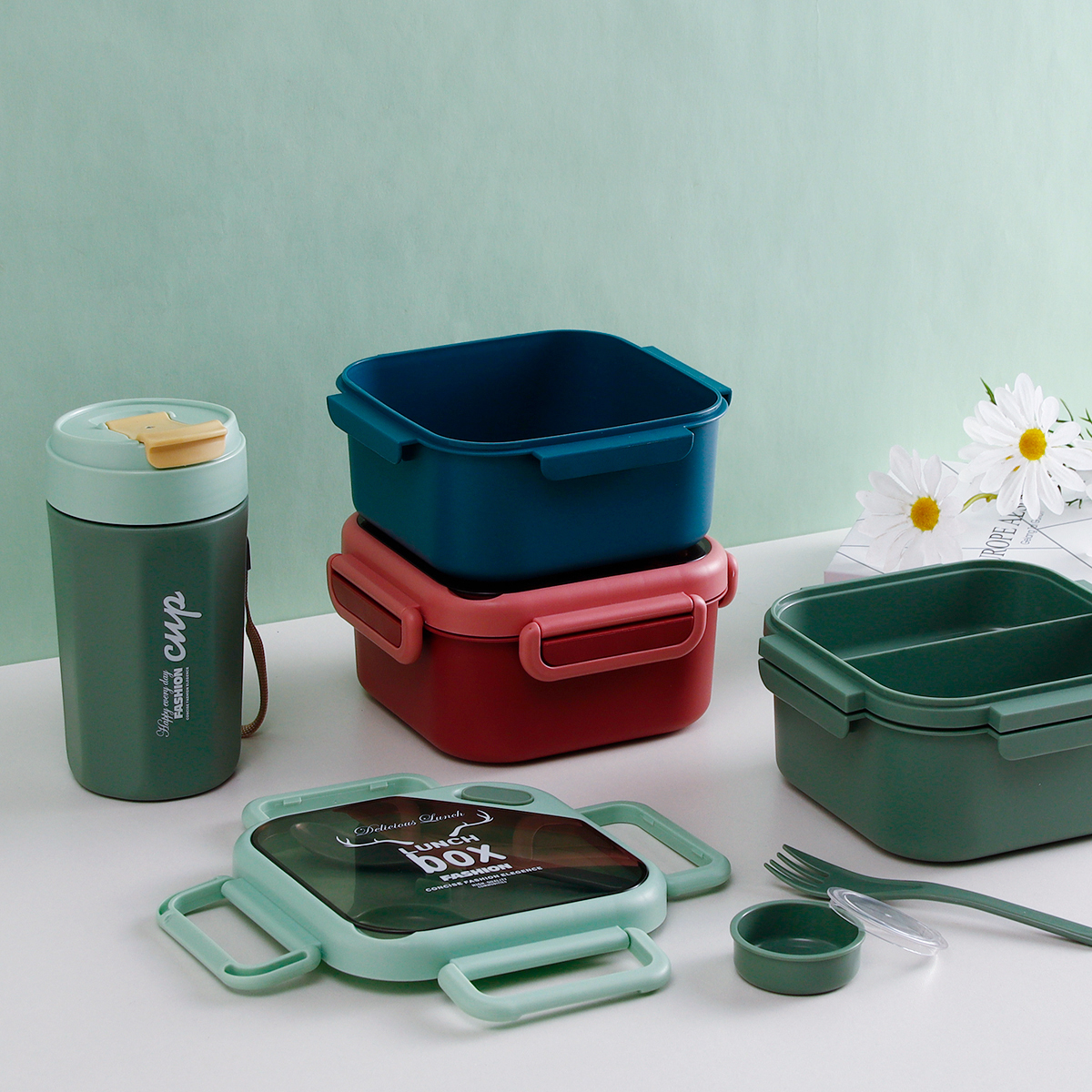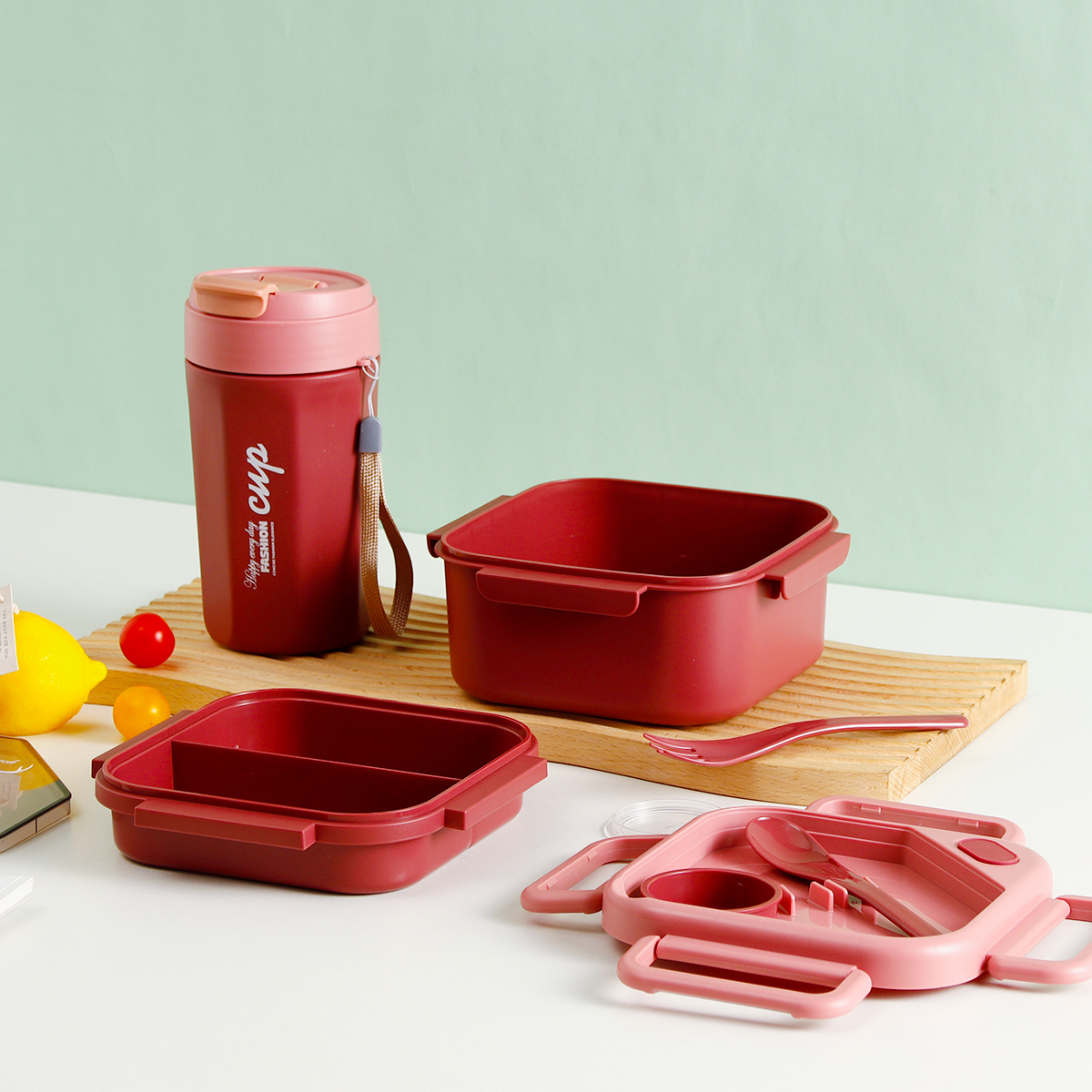 品悅正方單層/雙層密封飯盒(含醬料盒)+圓形/八角隨行杯