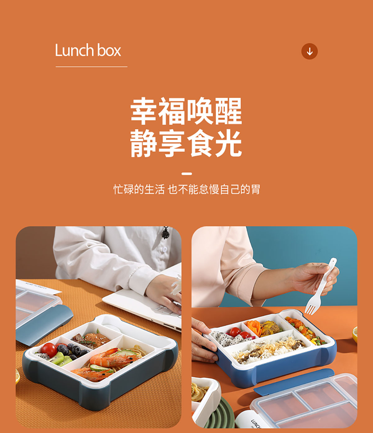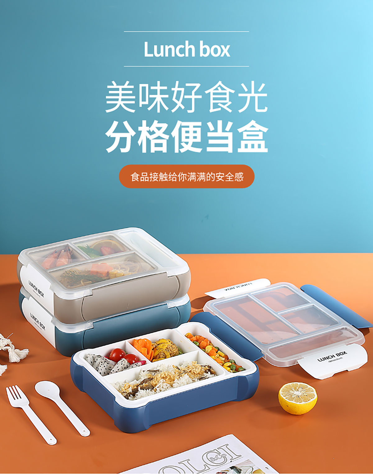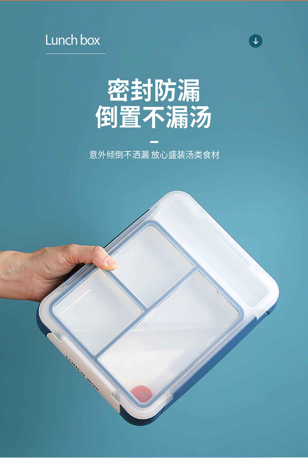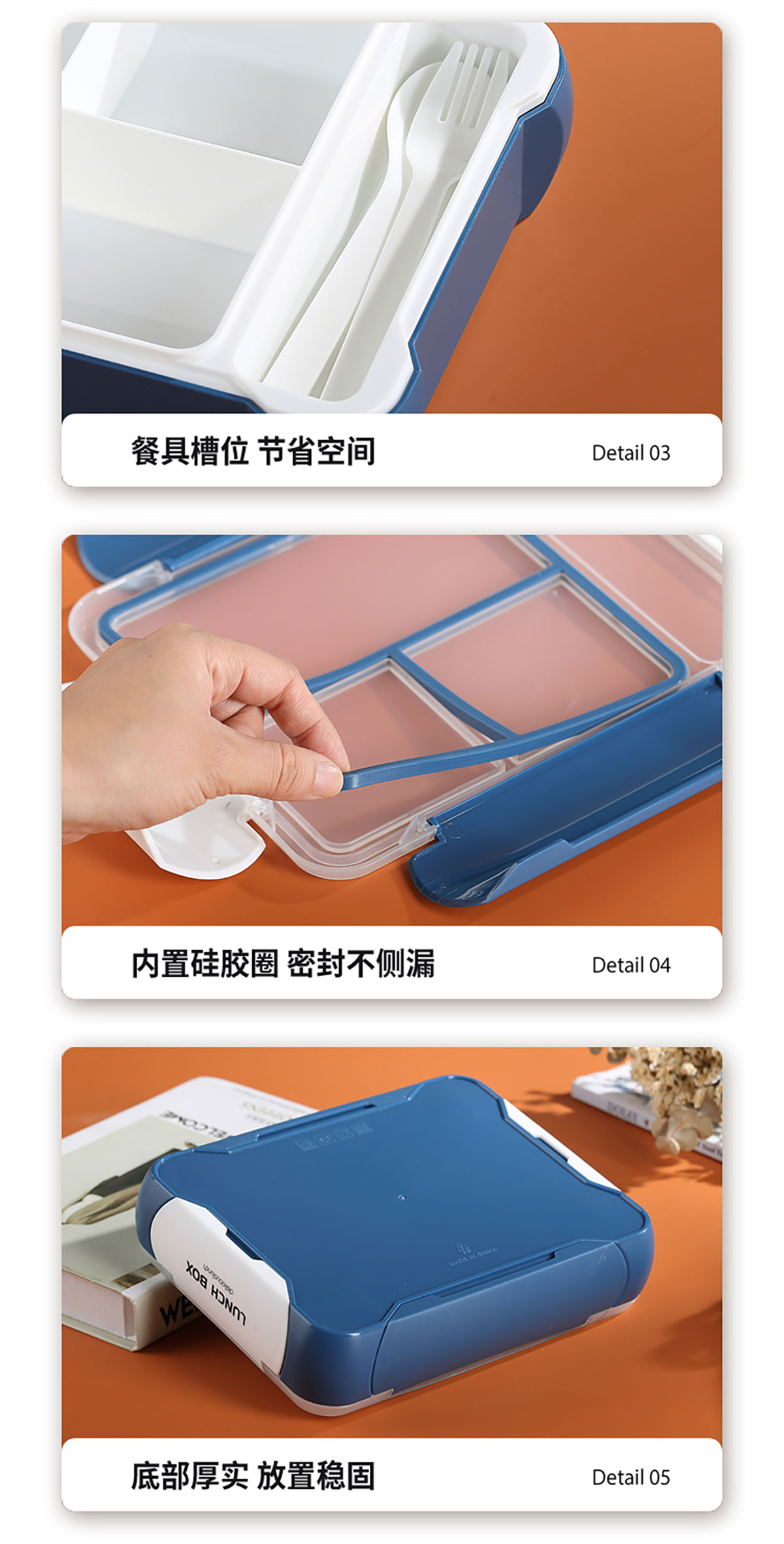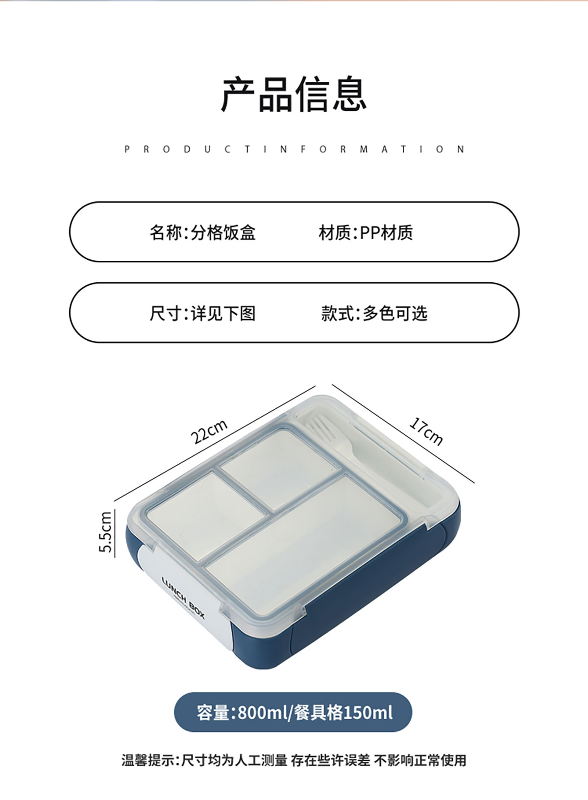 長(zhǎng)方三格餐盒800ml+餐具格150ml