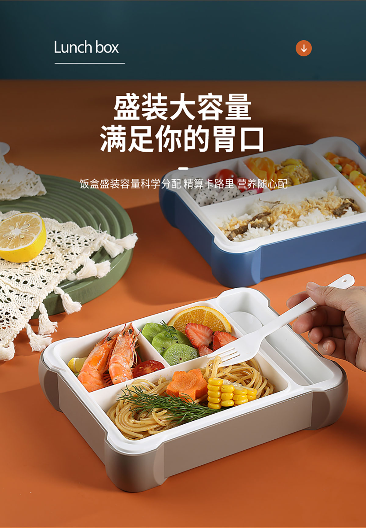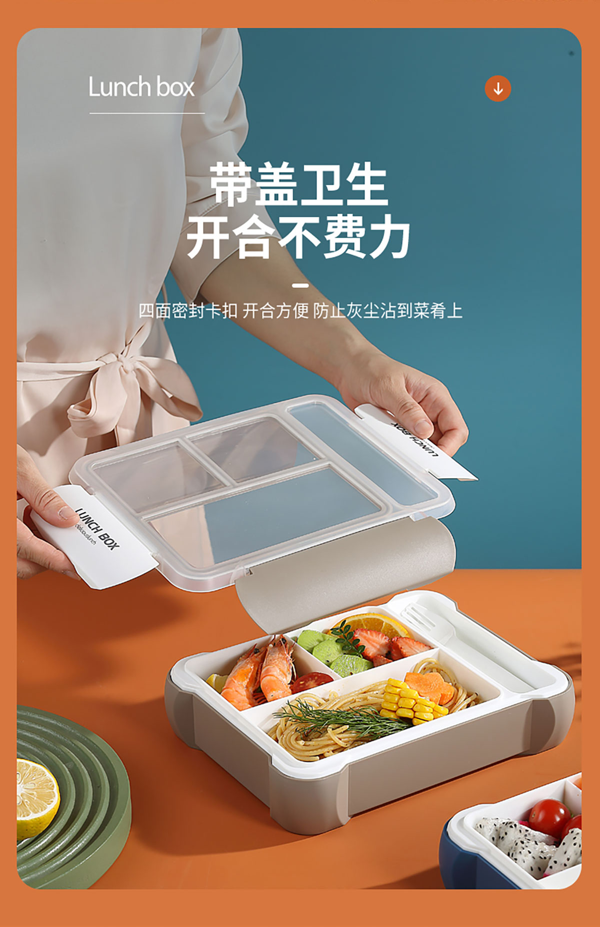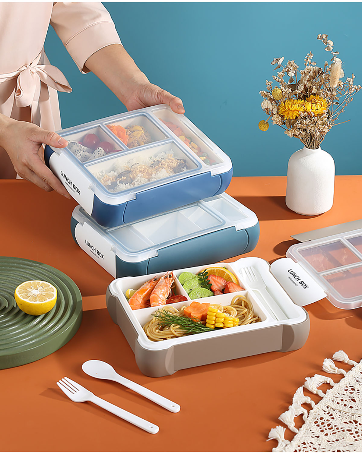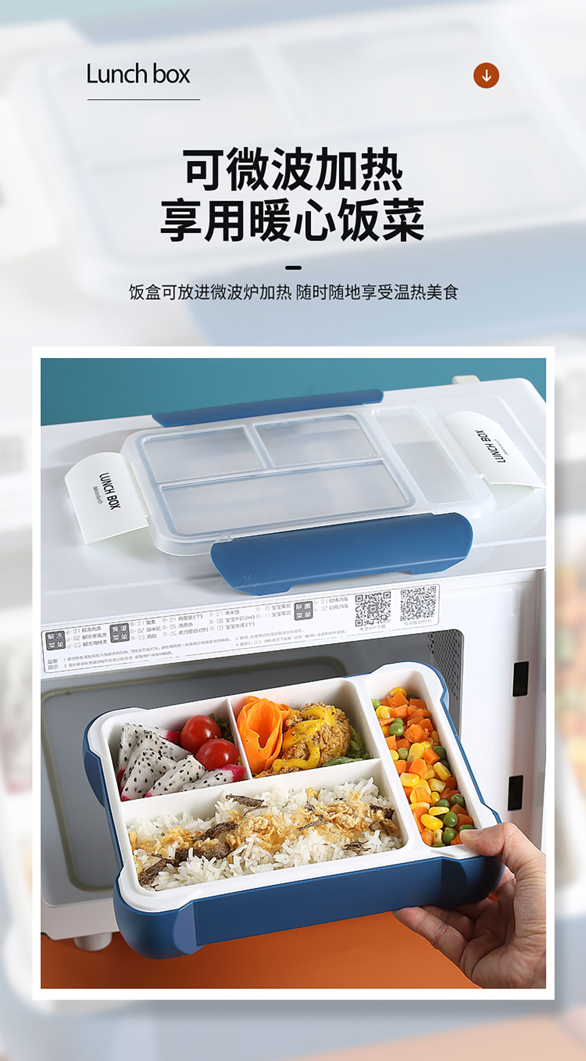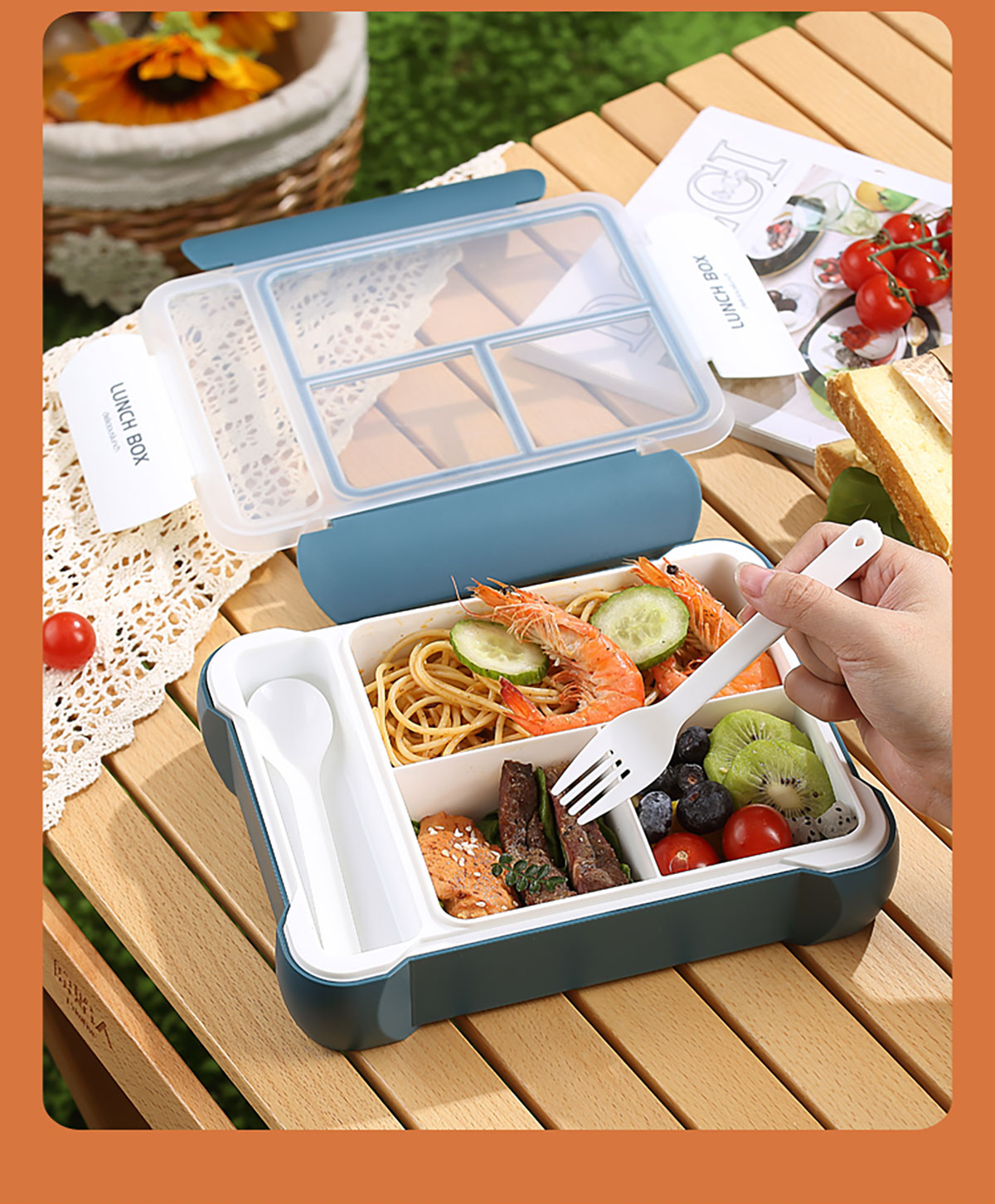 長(zhǎng)方三格餐盒800ml+餐具格150ml