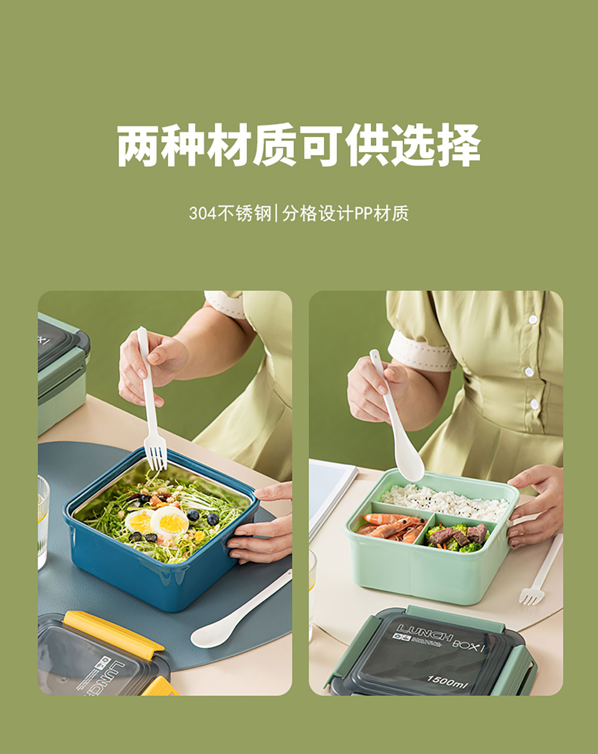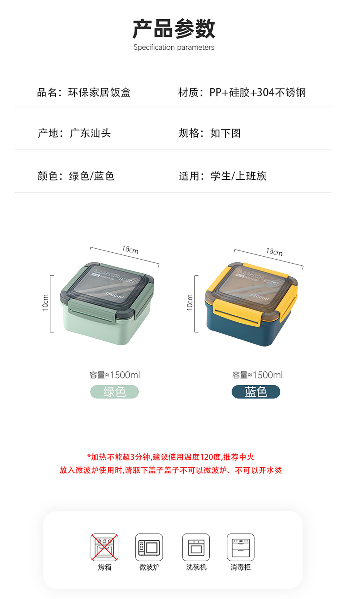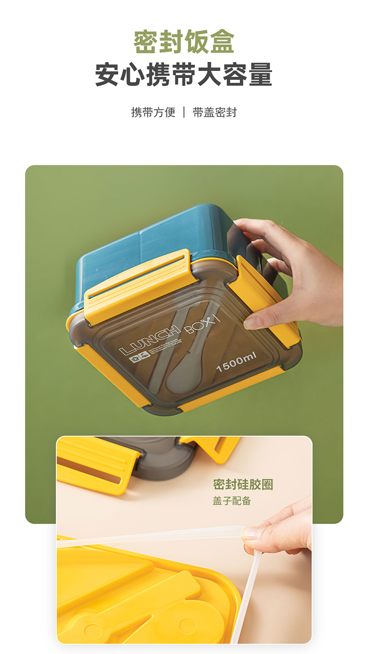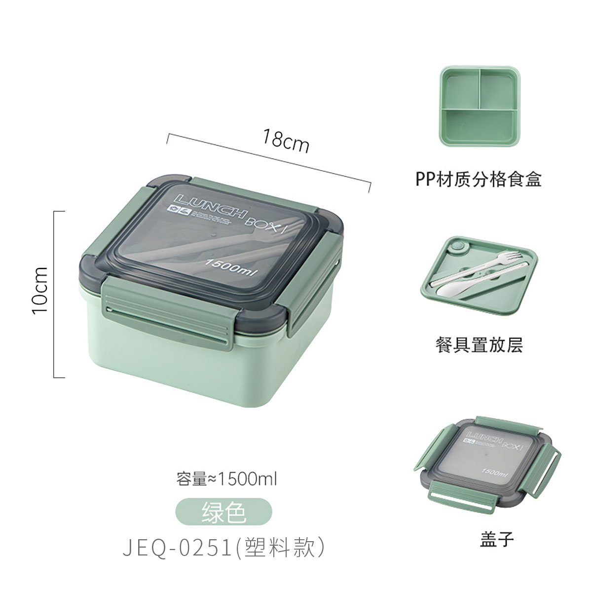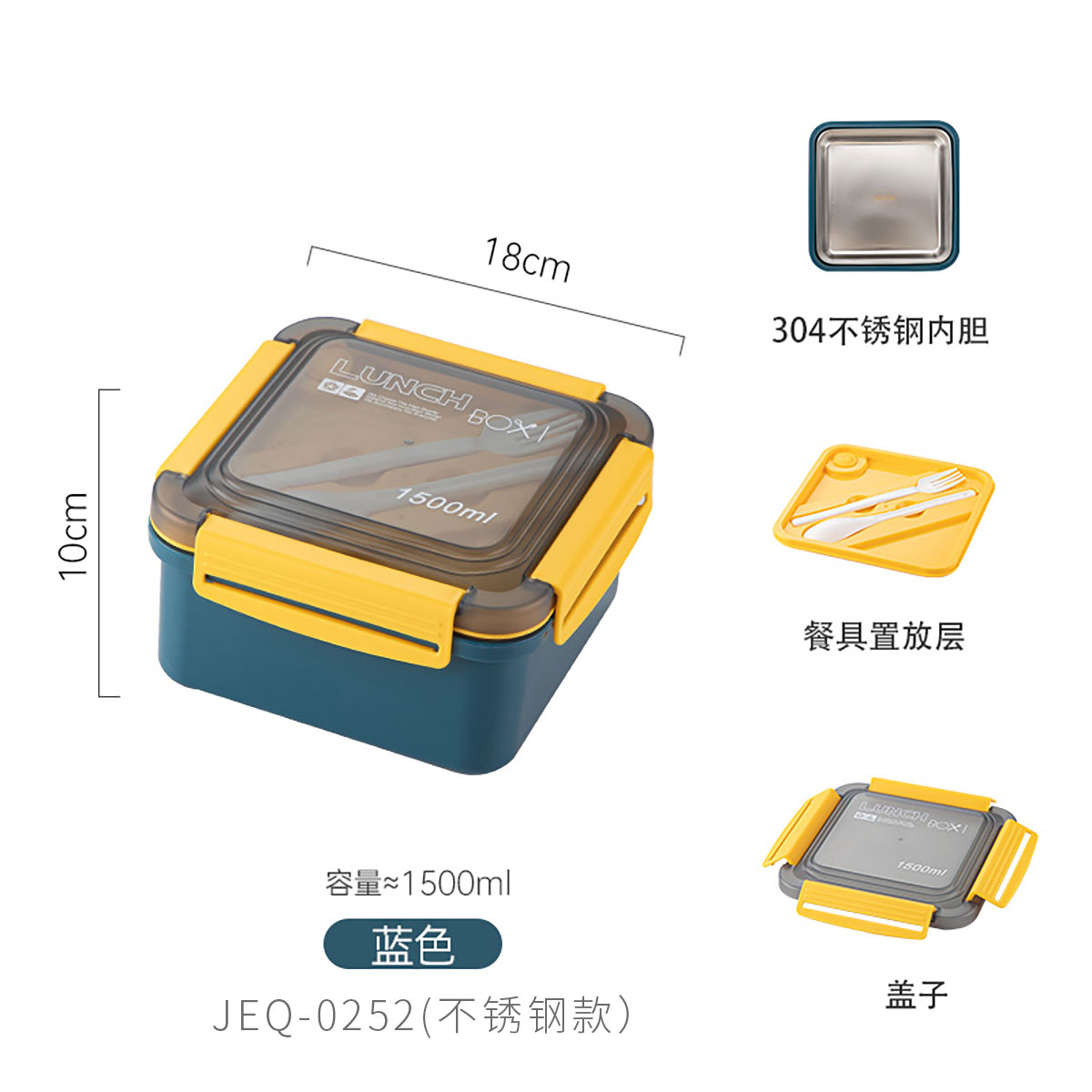 正方塑料/不銹鋼飯盒1500ml