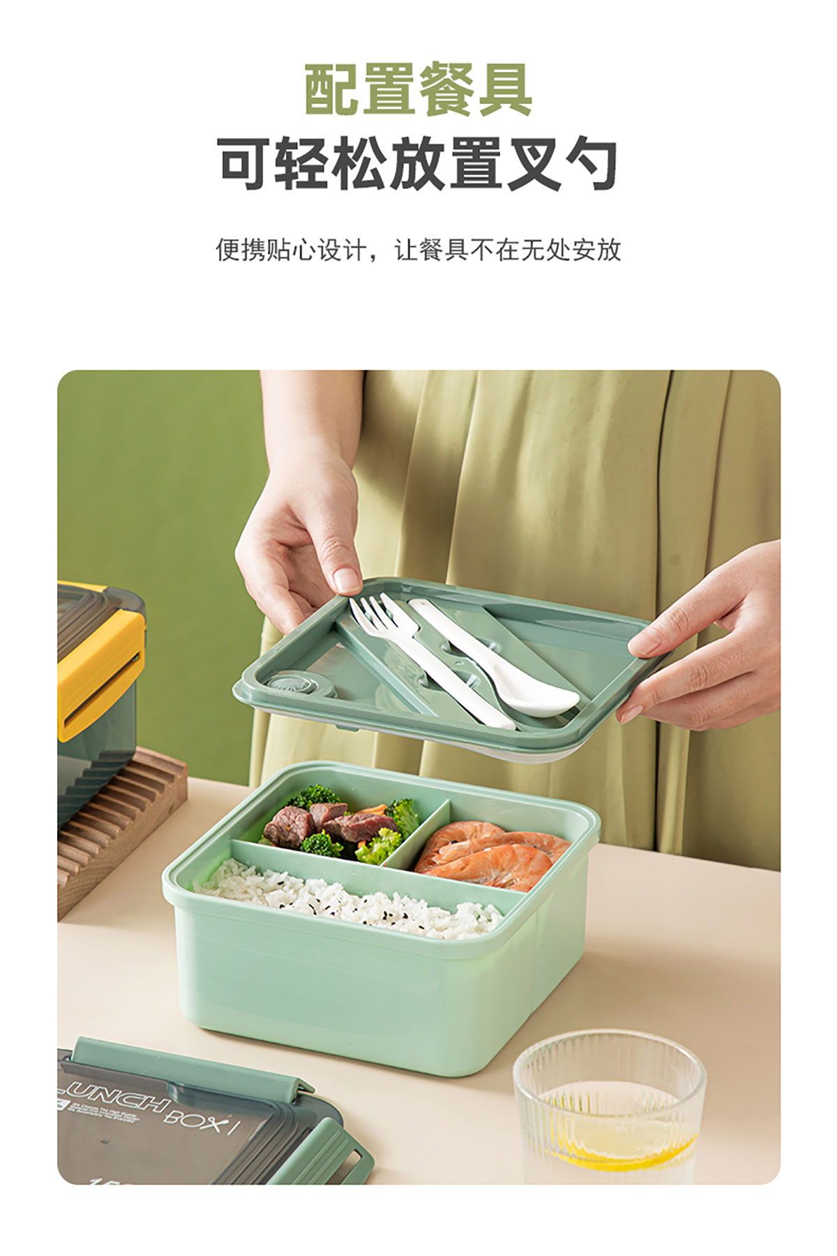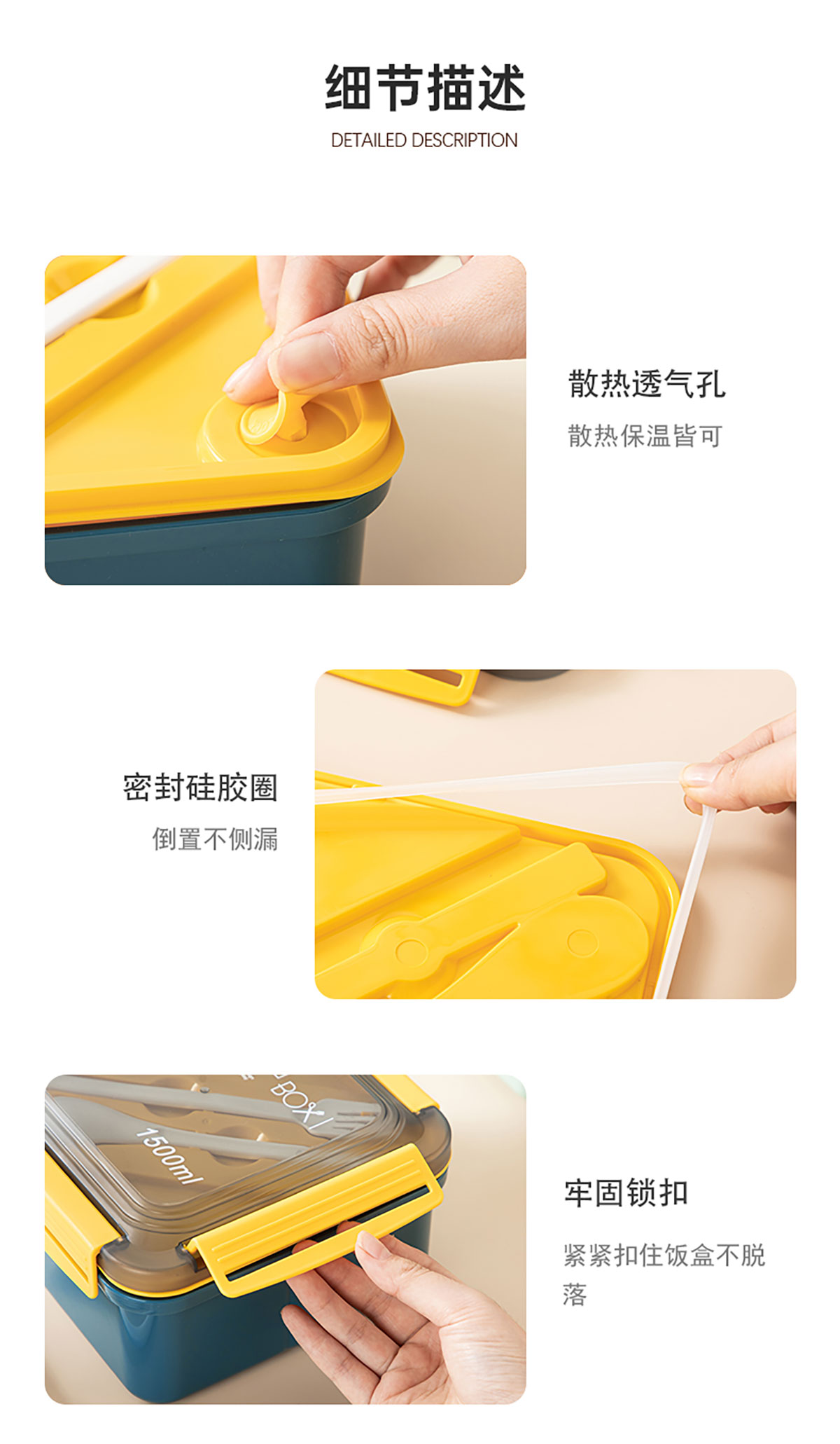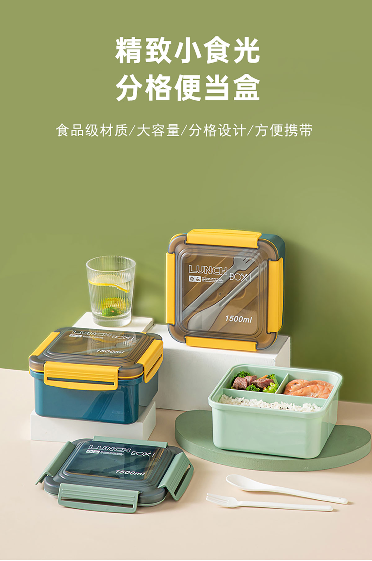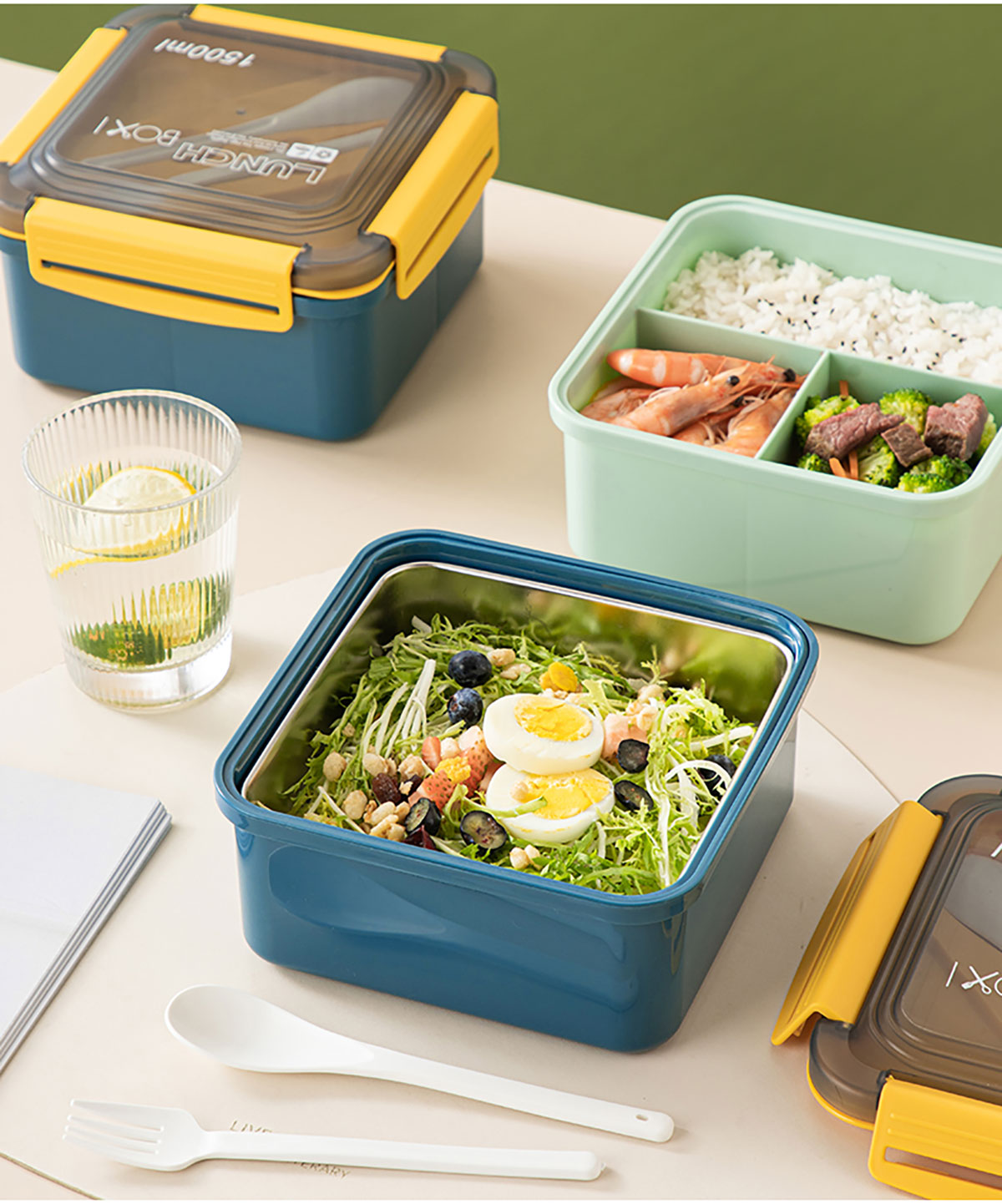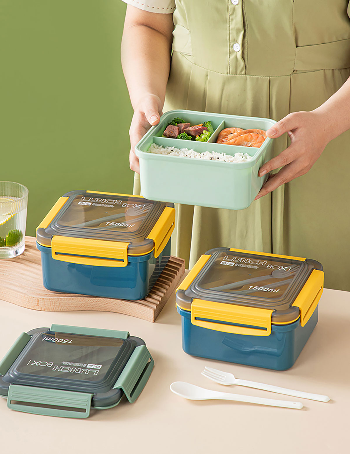 正方塑料/不銹鋼飯盒1500ml