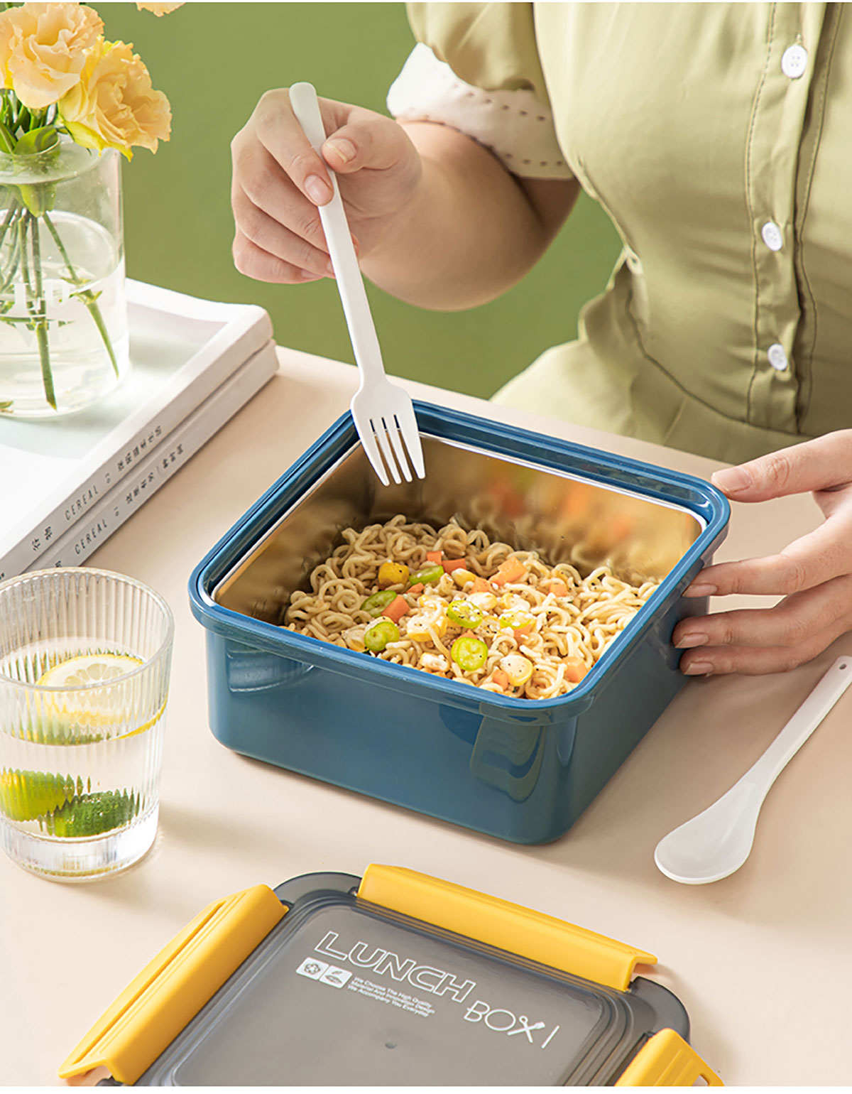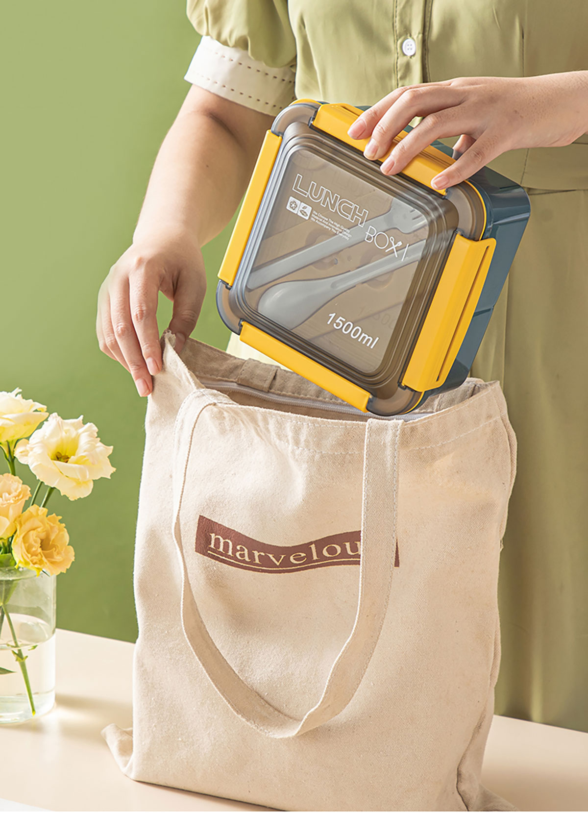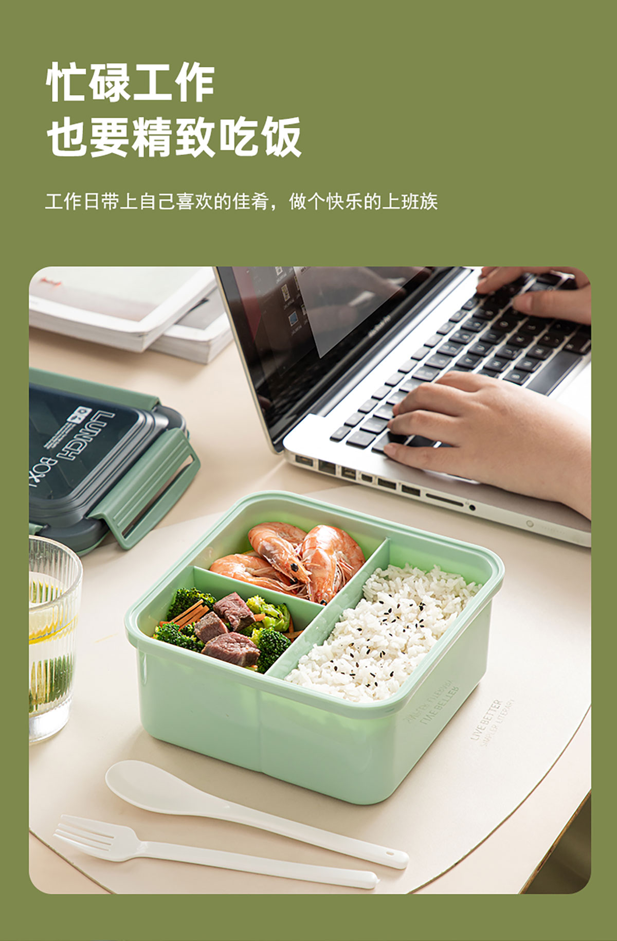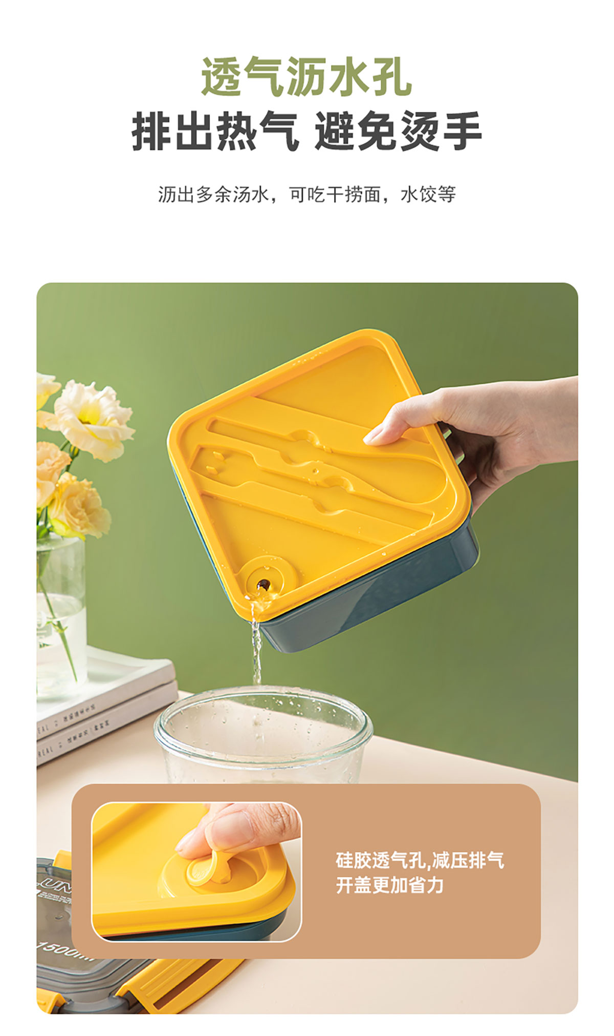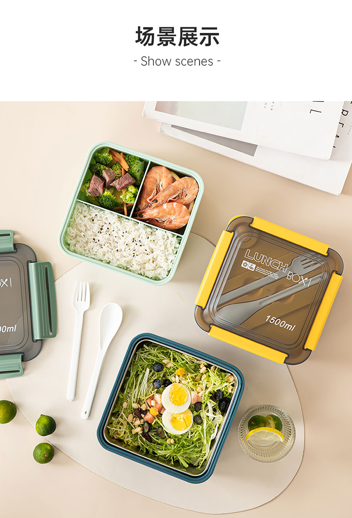 正方塑料/不銹鋼飯盒1500ml