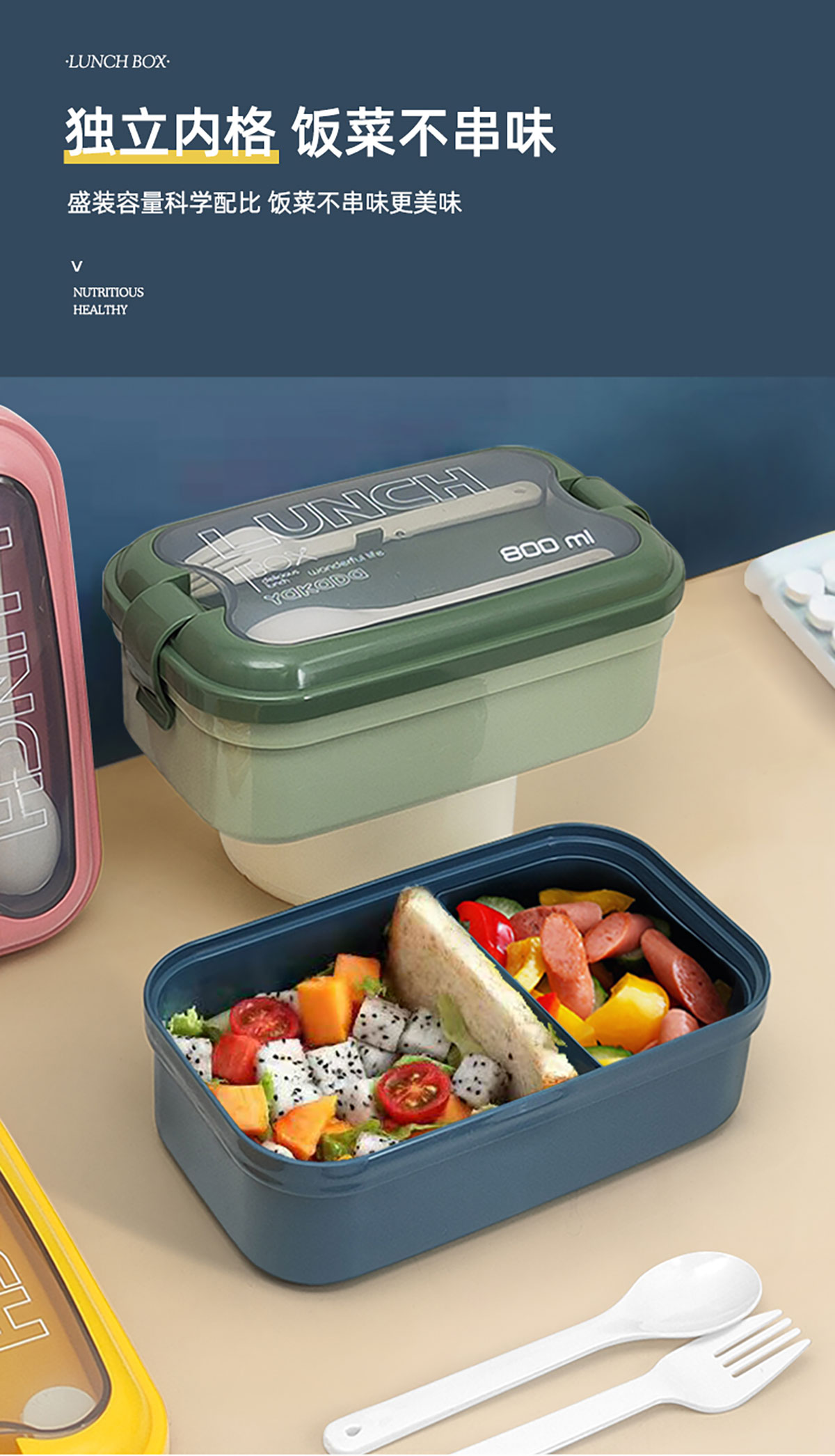 莫蘭迪單層弧扣飯盒800ml