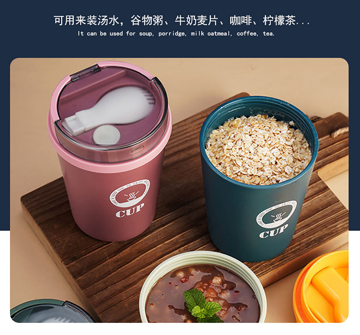 莫蘭迪帶勺早餐杯500ml