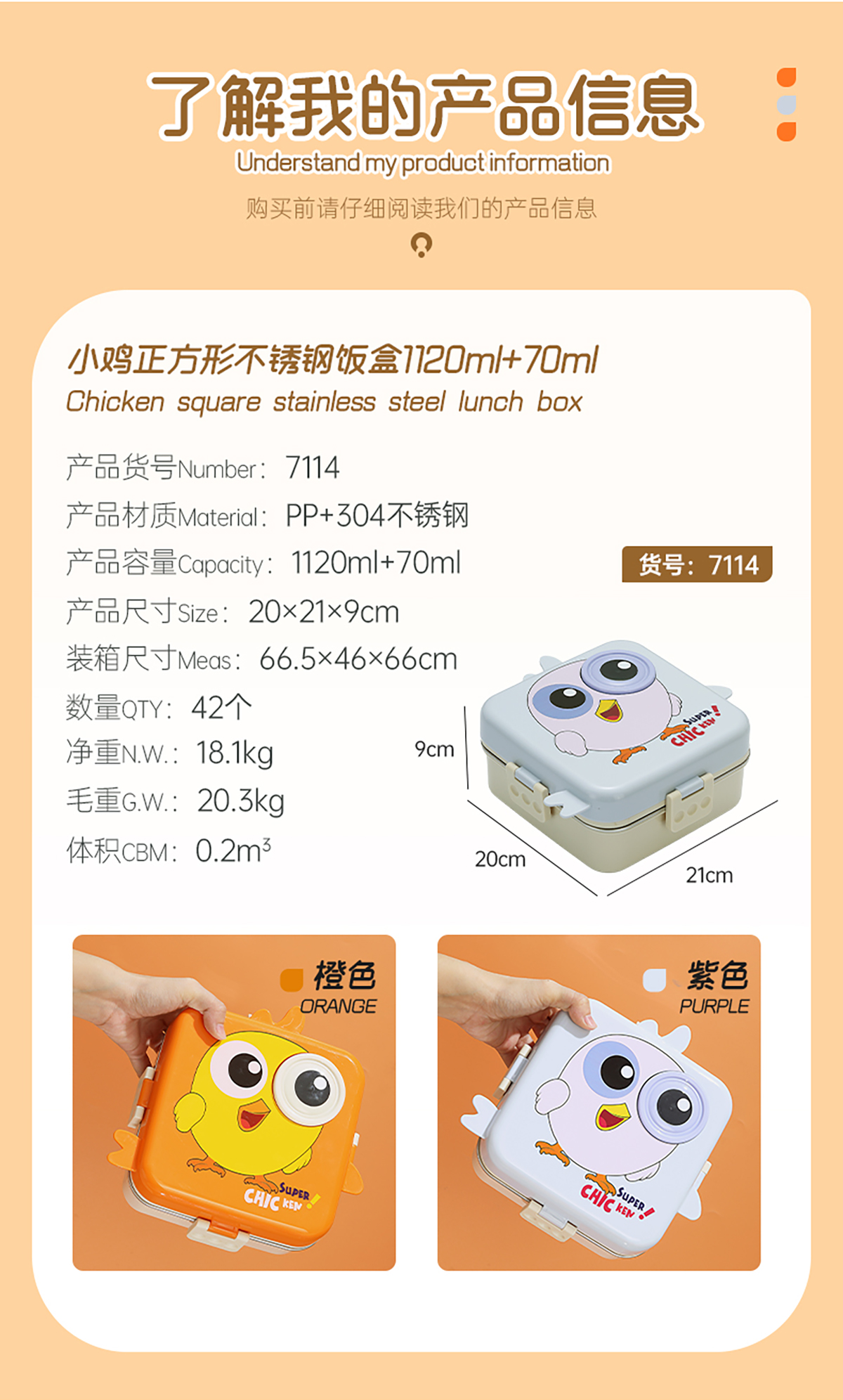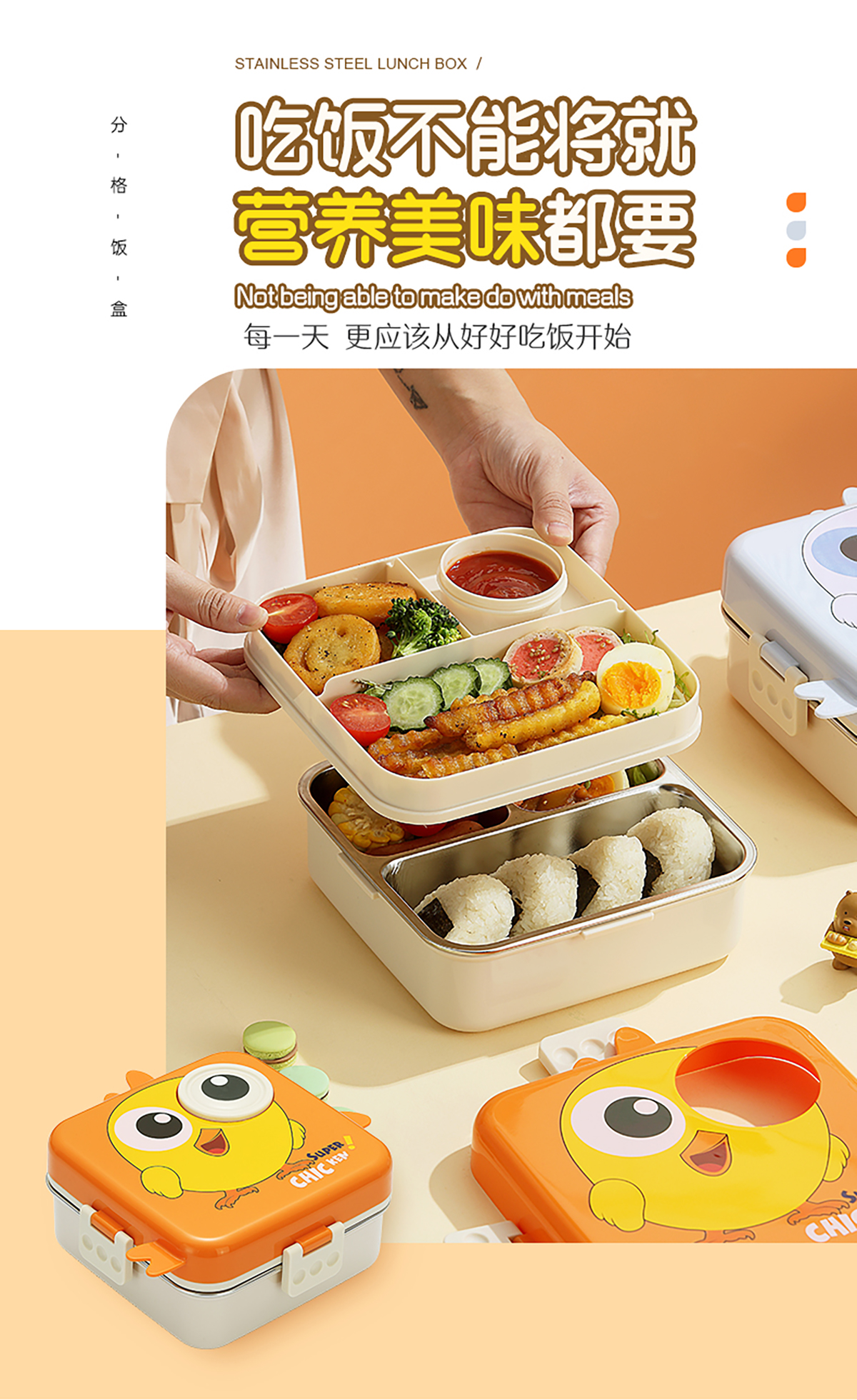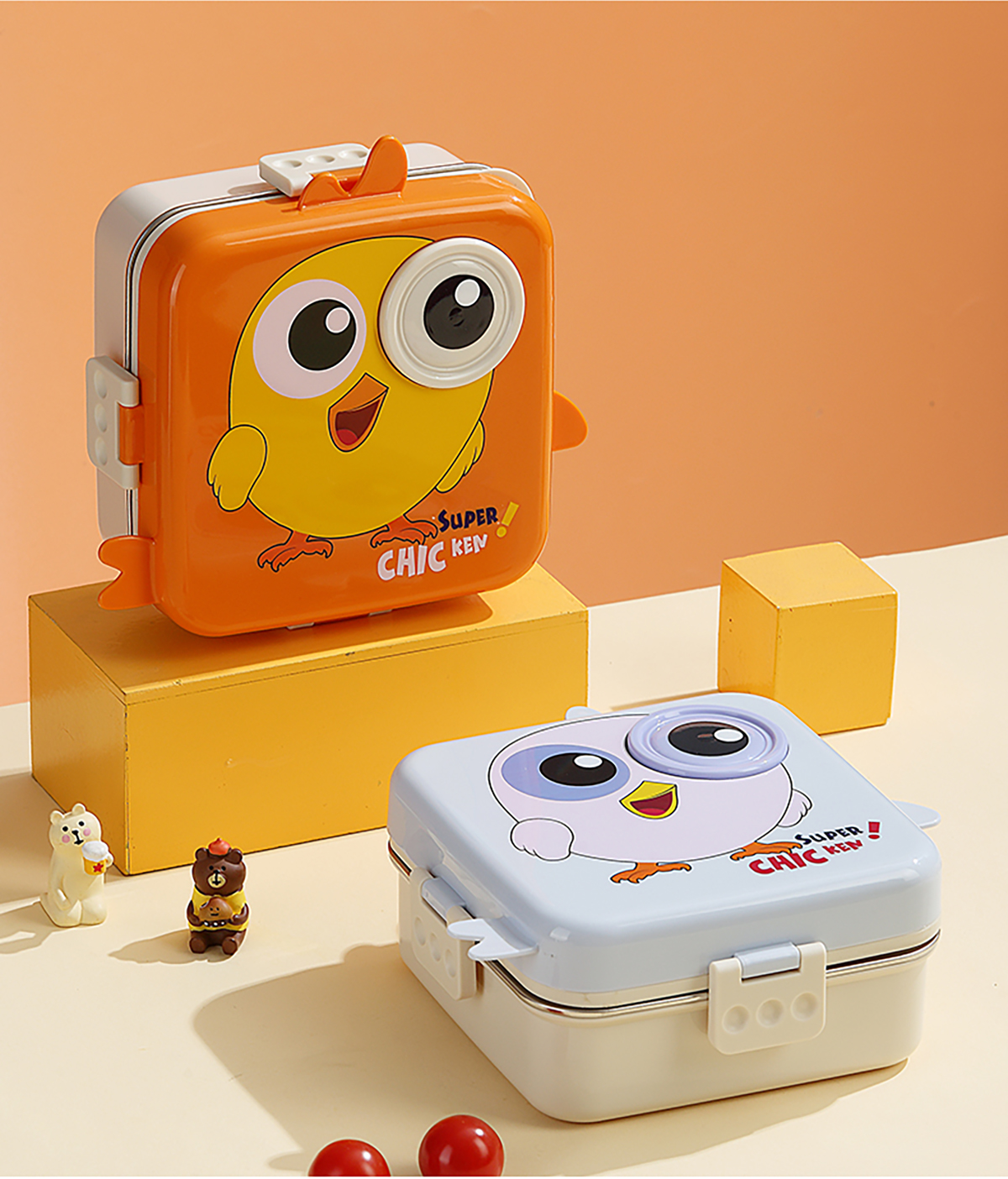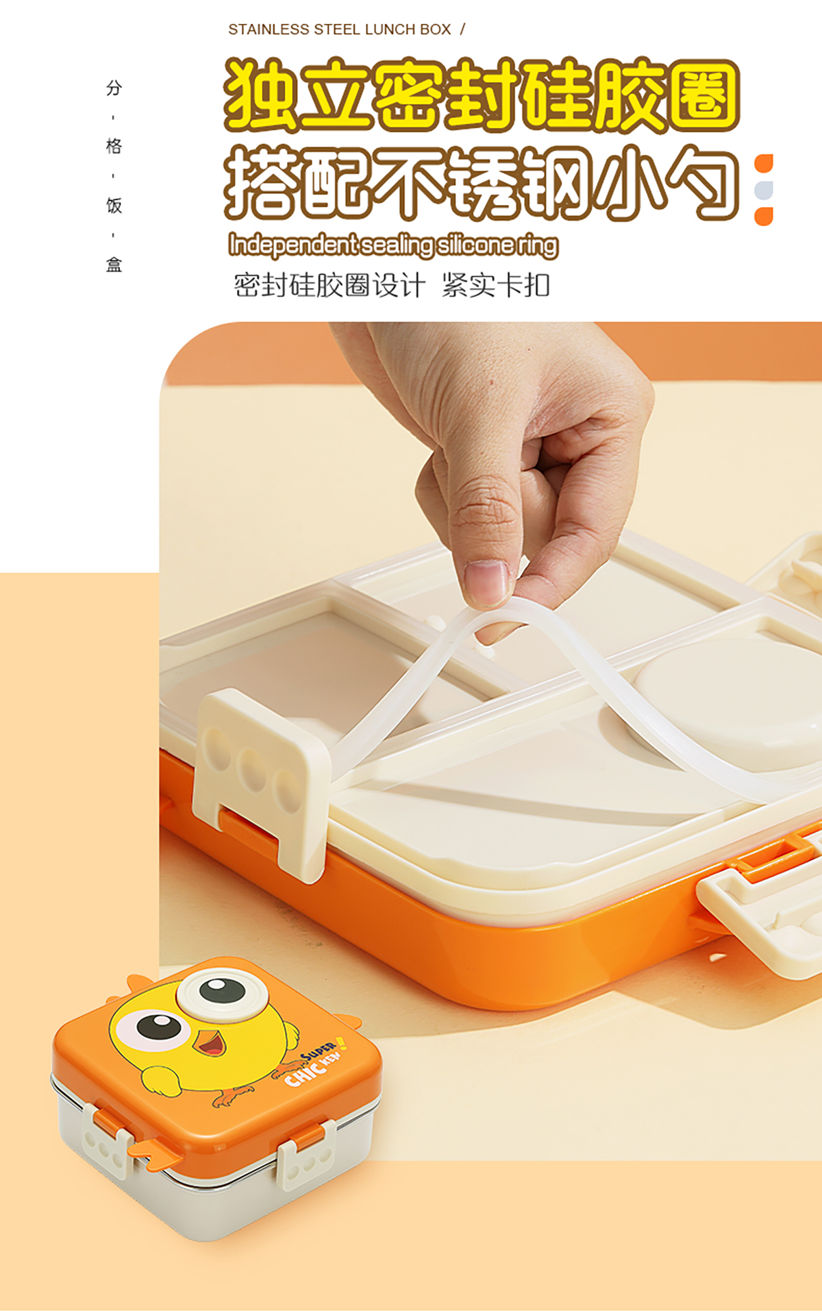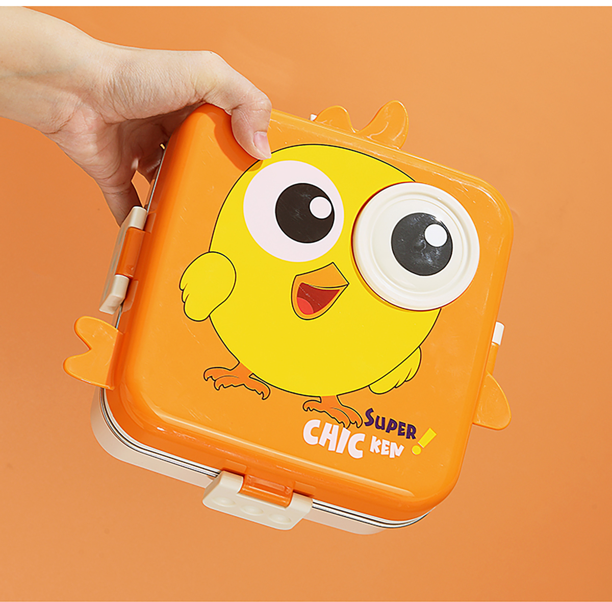 小雞正方形不銹鋼飯盒1120ml+70ml