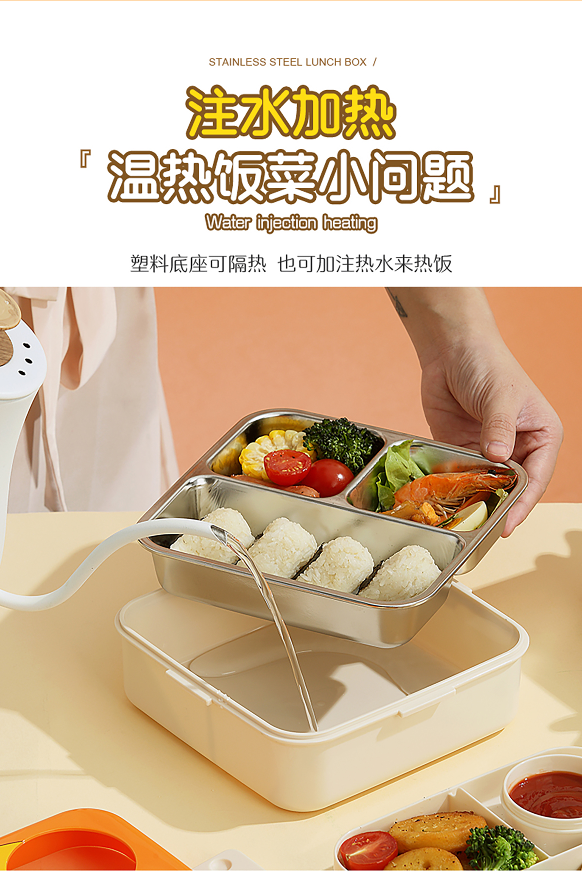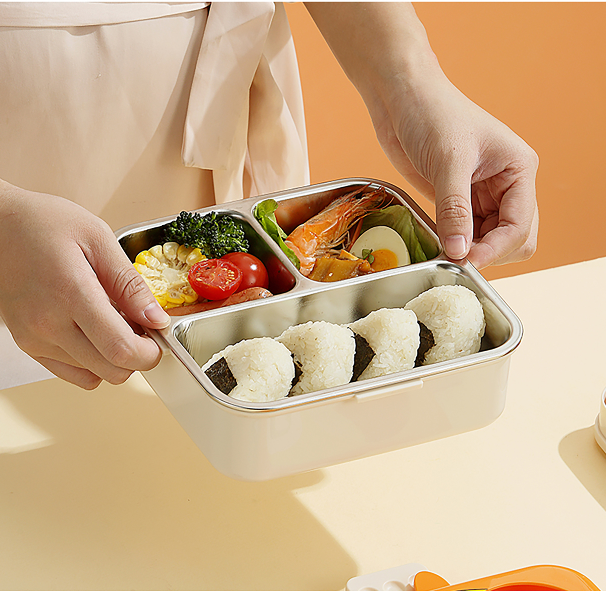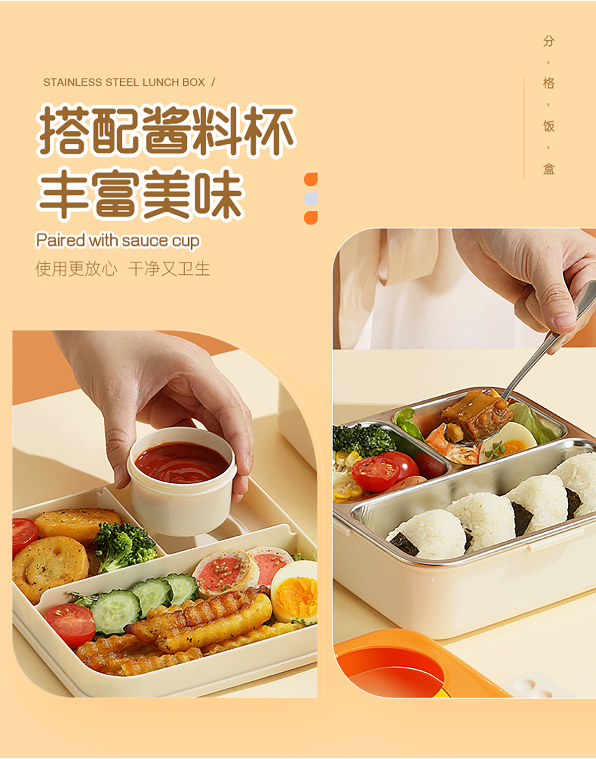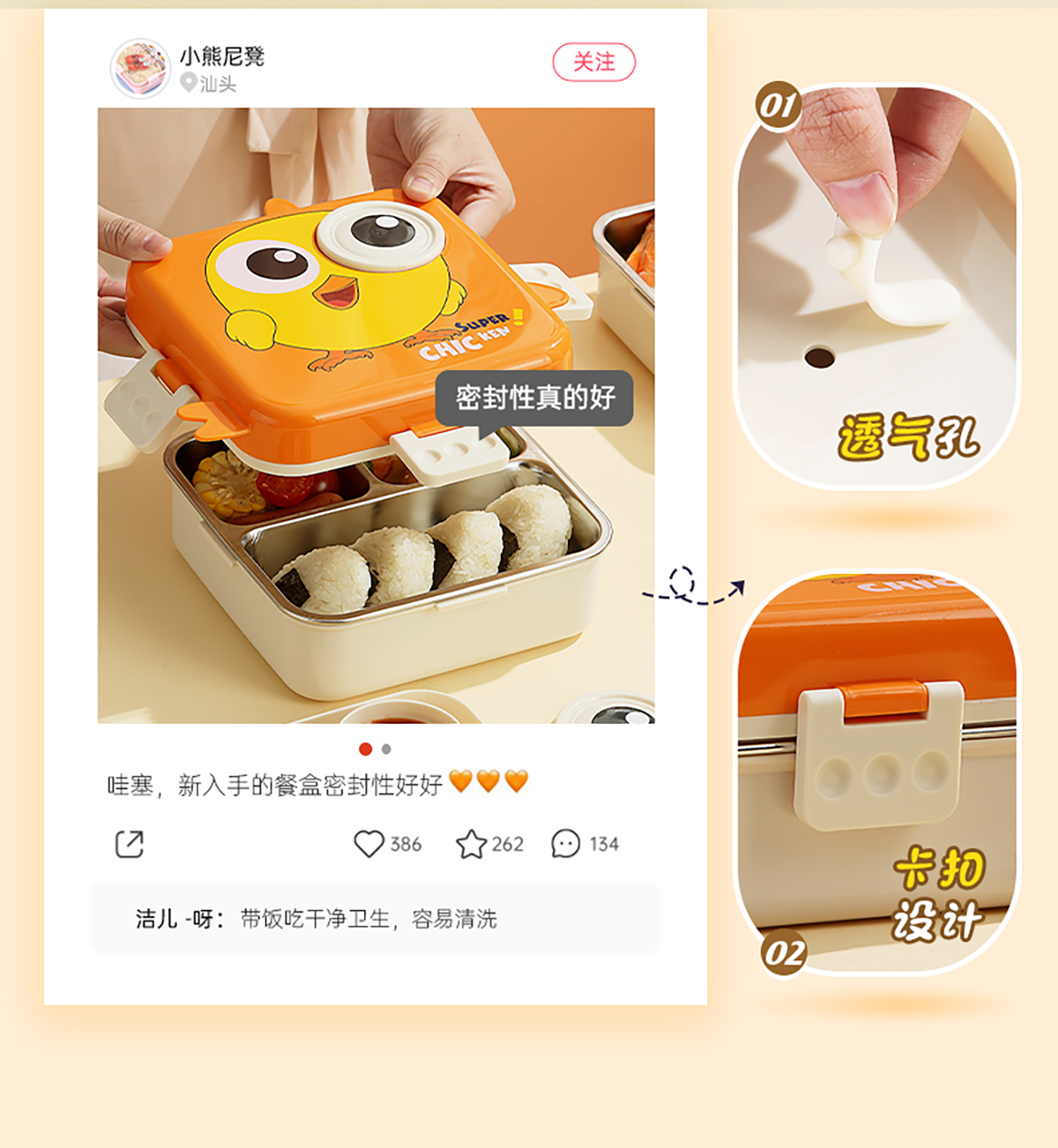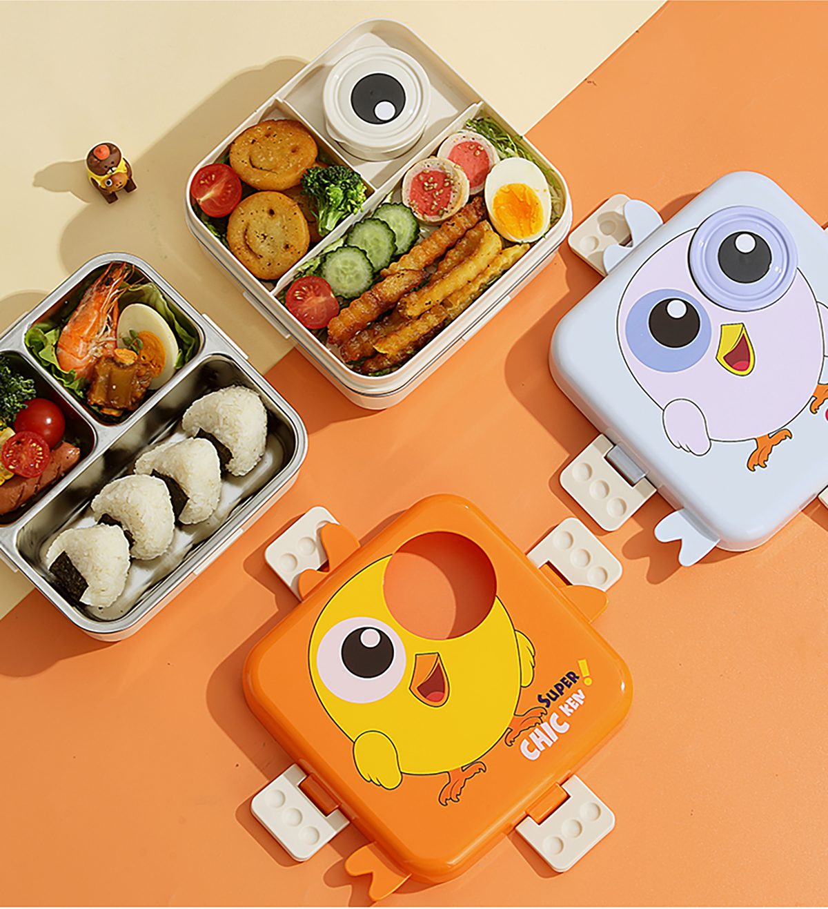 小雞正方形不銹鋼飯盒1120ml+70ml