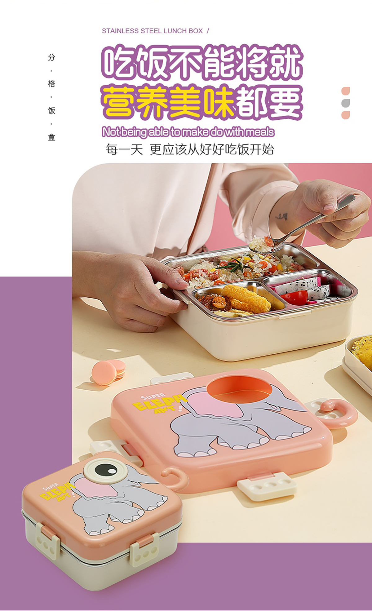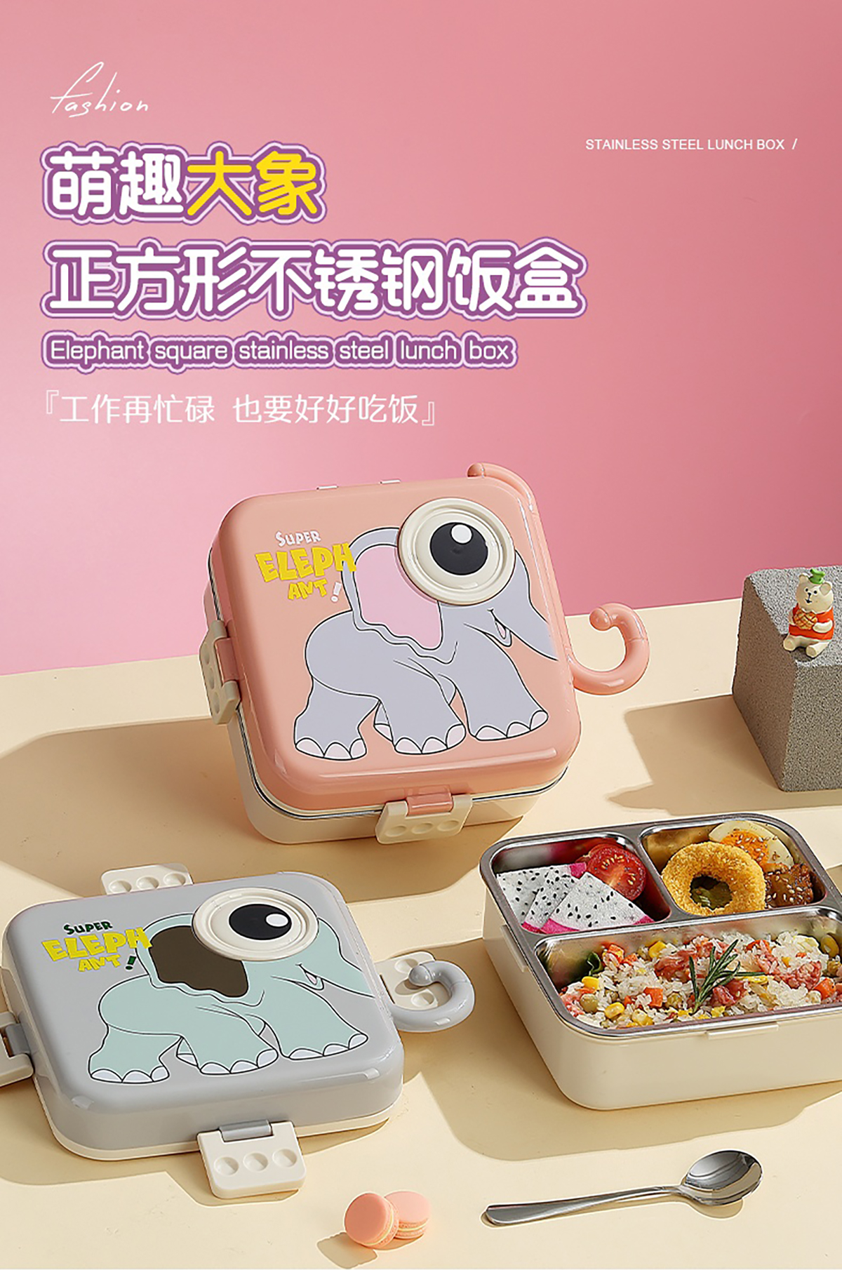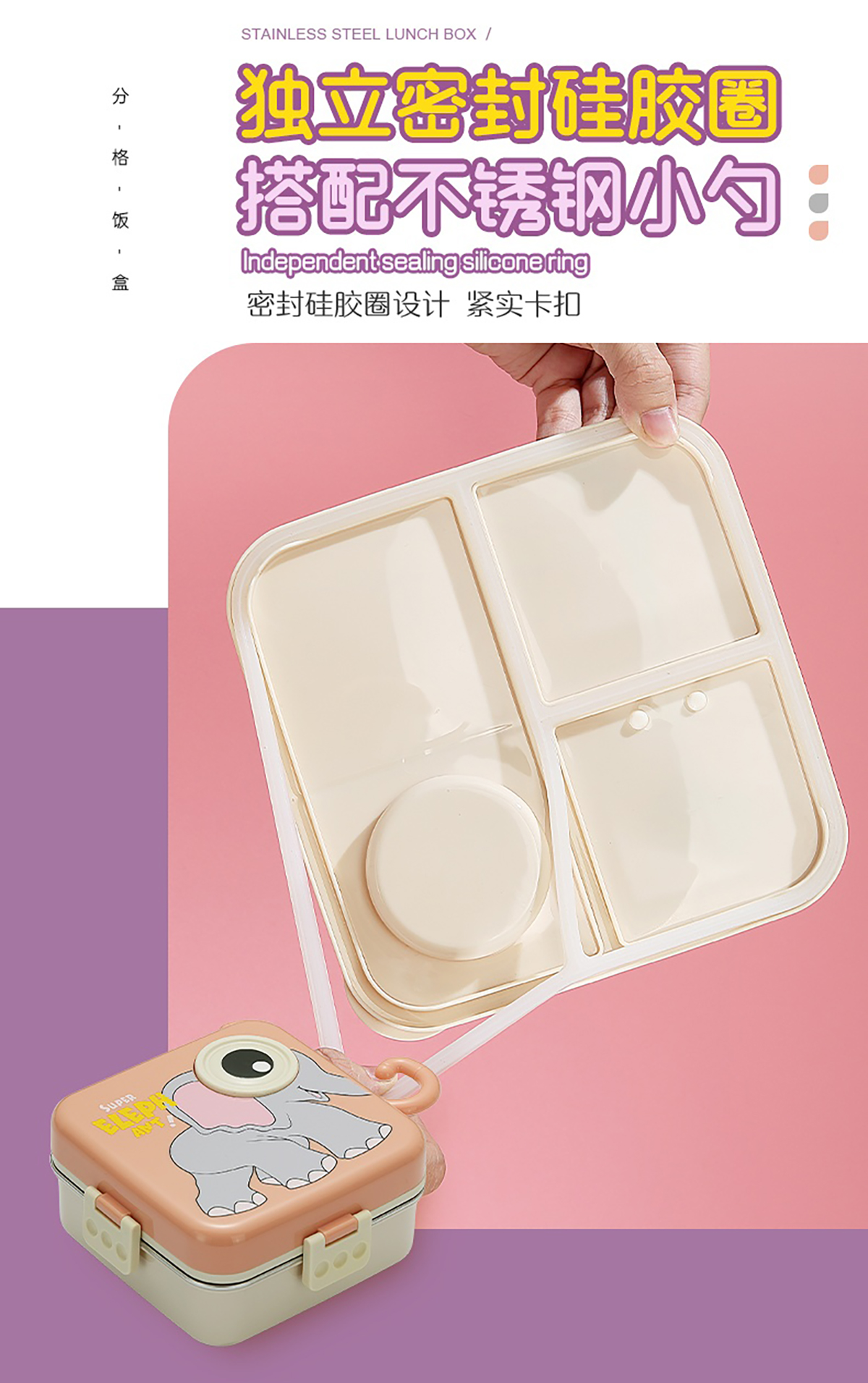 大象正方形不銹鋼飯盒1120ml+70ml