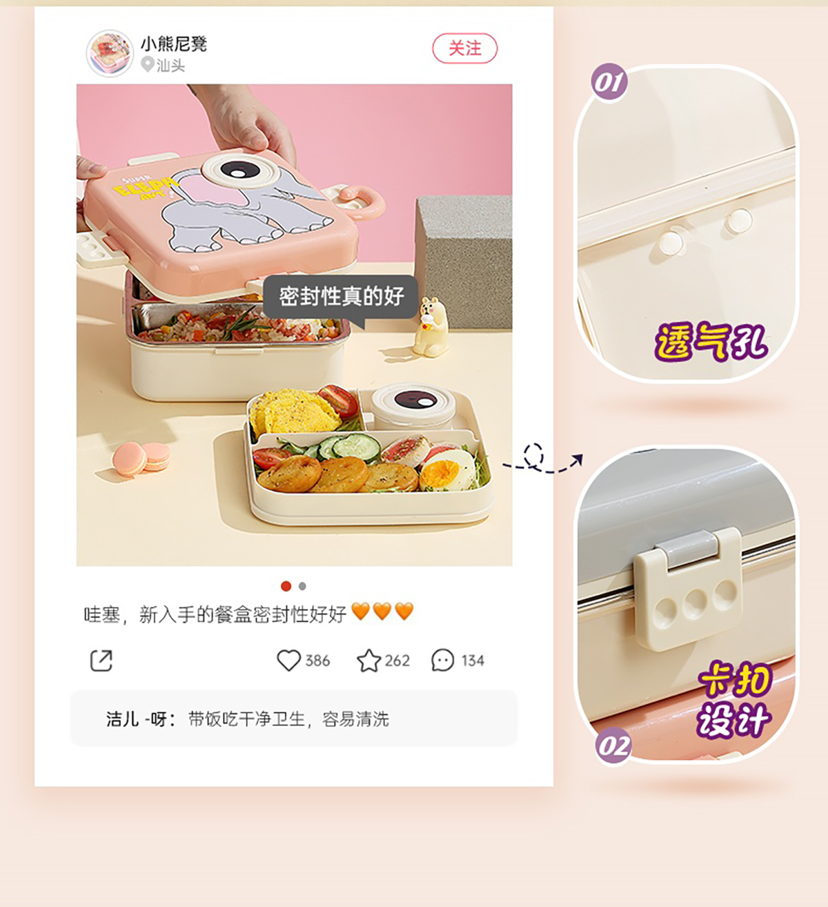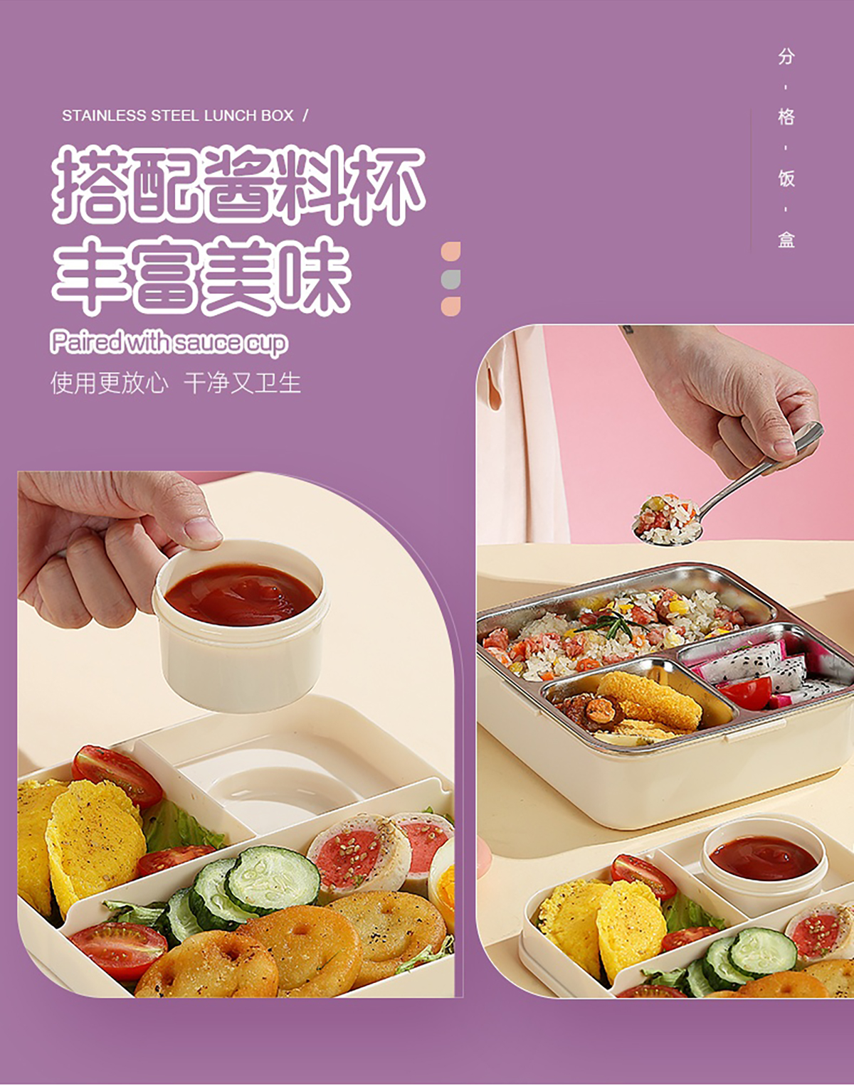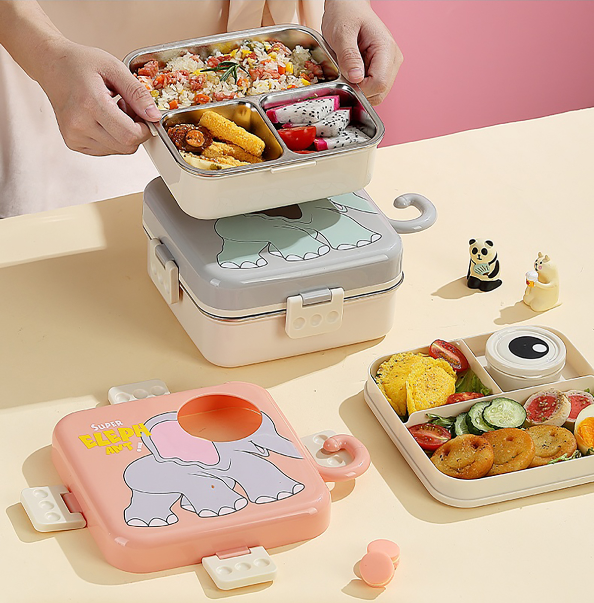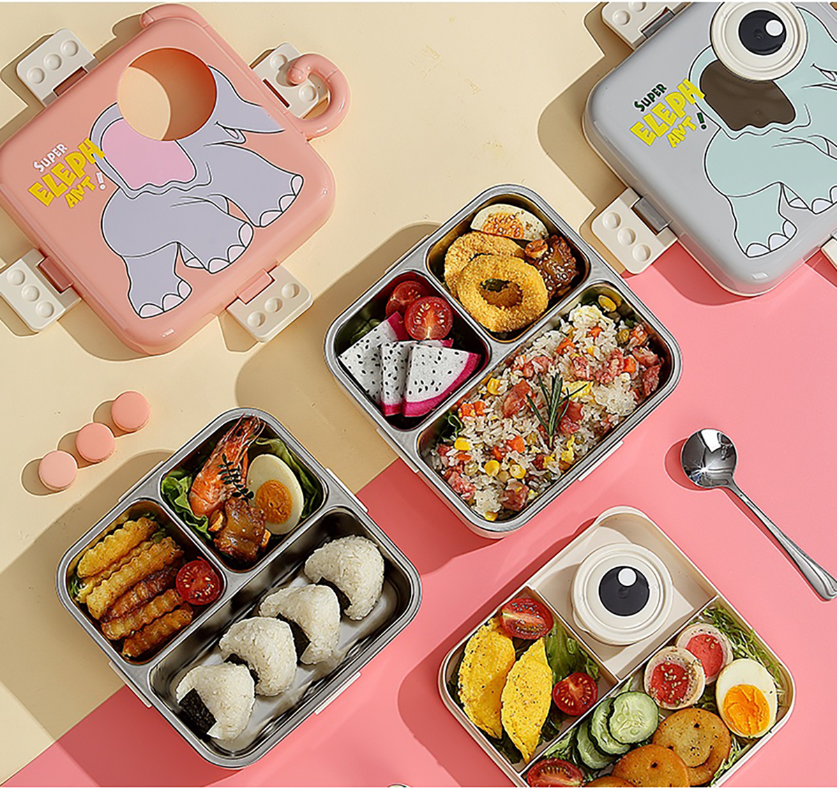 大象正方形不銹鋼飯盒1120ml+70ml