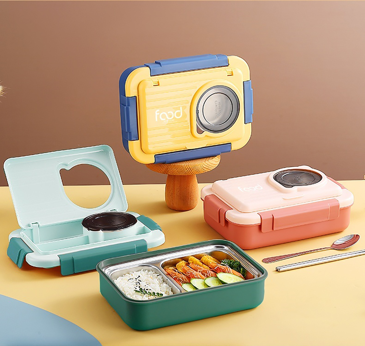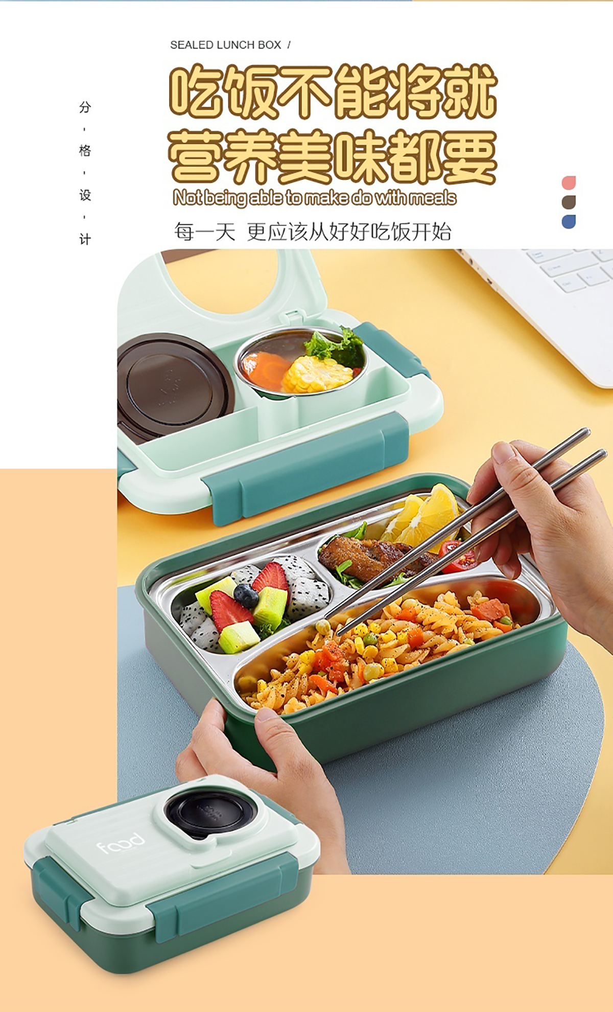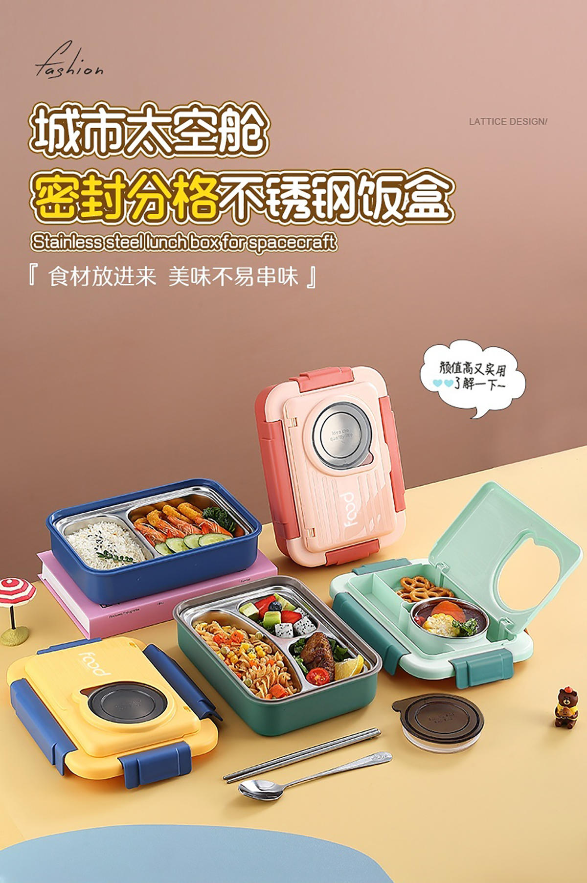 太空艙不銹鋼飯盒(2格/3格+碗150ml+不銹鋼勺筷)