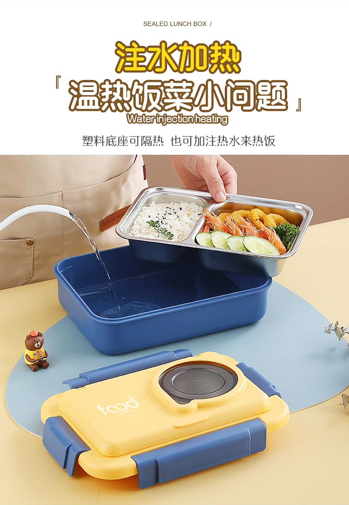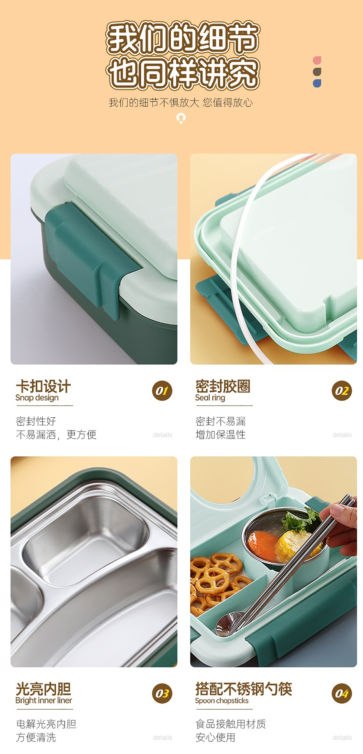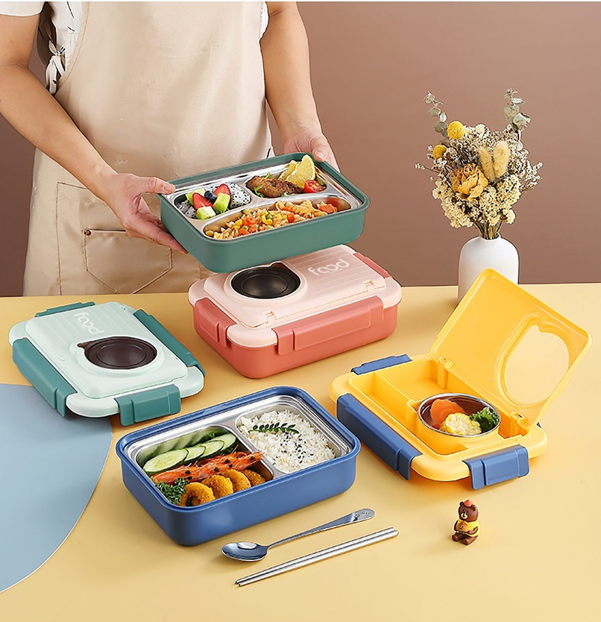 太空艙不銹鋼飯盒(2格/3格+碗150ml+不銹鋼勺筷)