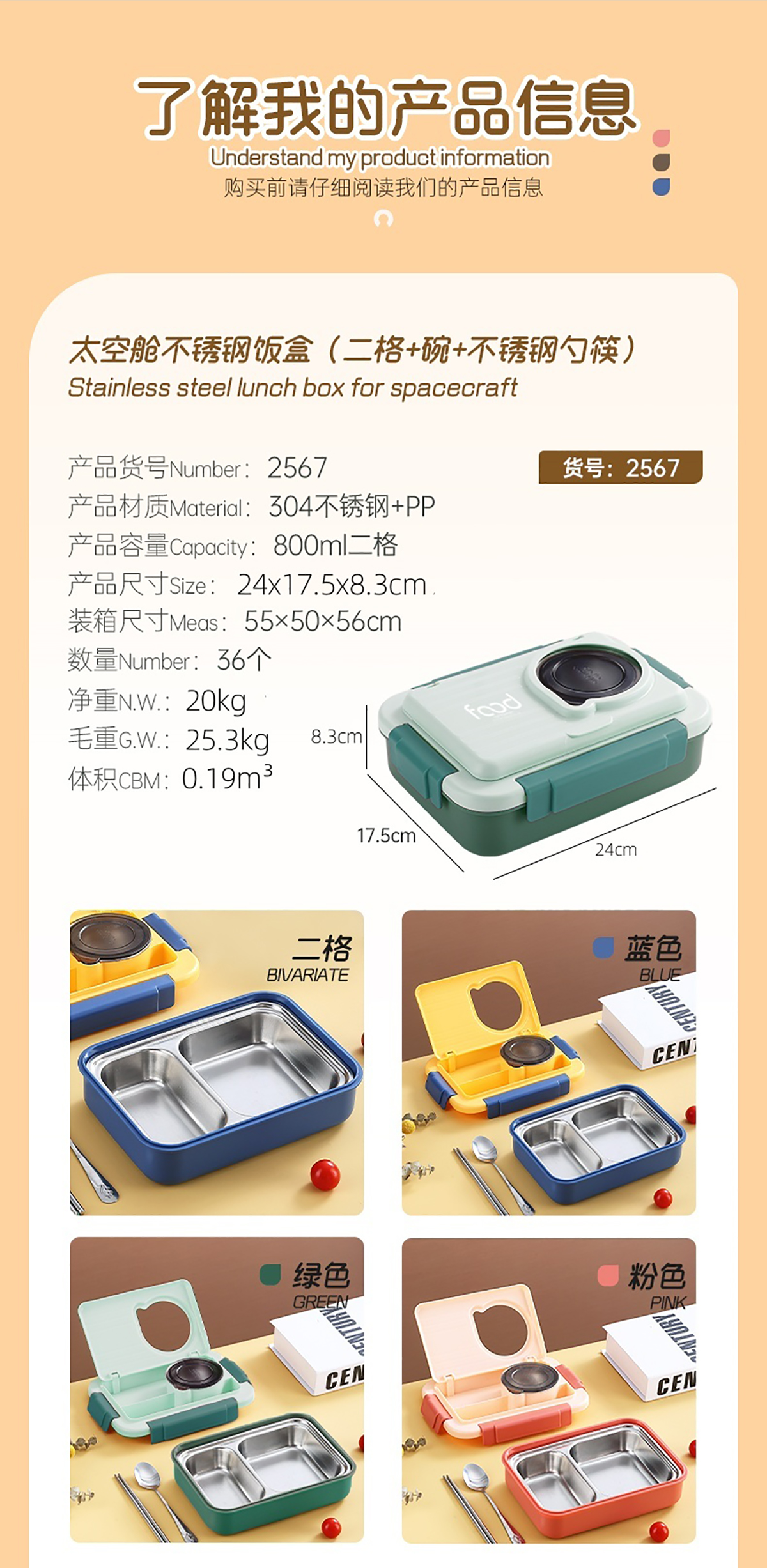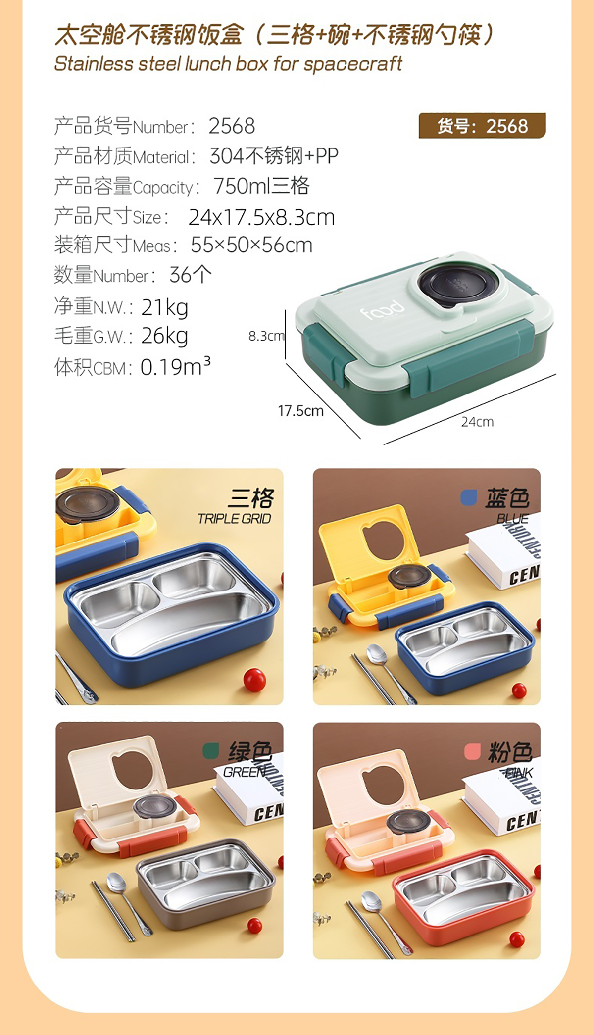 Stuff:304不銹鋼+PP/彩盒