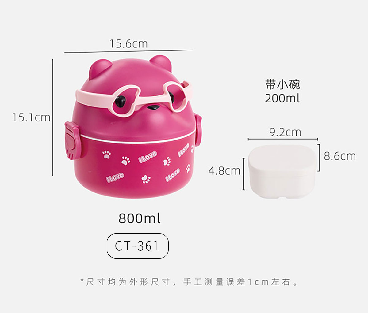 Size: CT-360:156*151mm/800ml CT-361(帶內格):156*151mm/800ml 內格:92*86*48mm/200ml