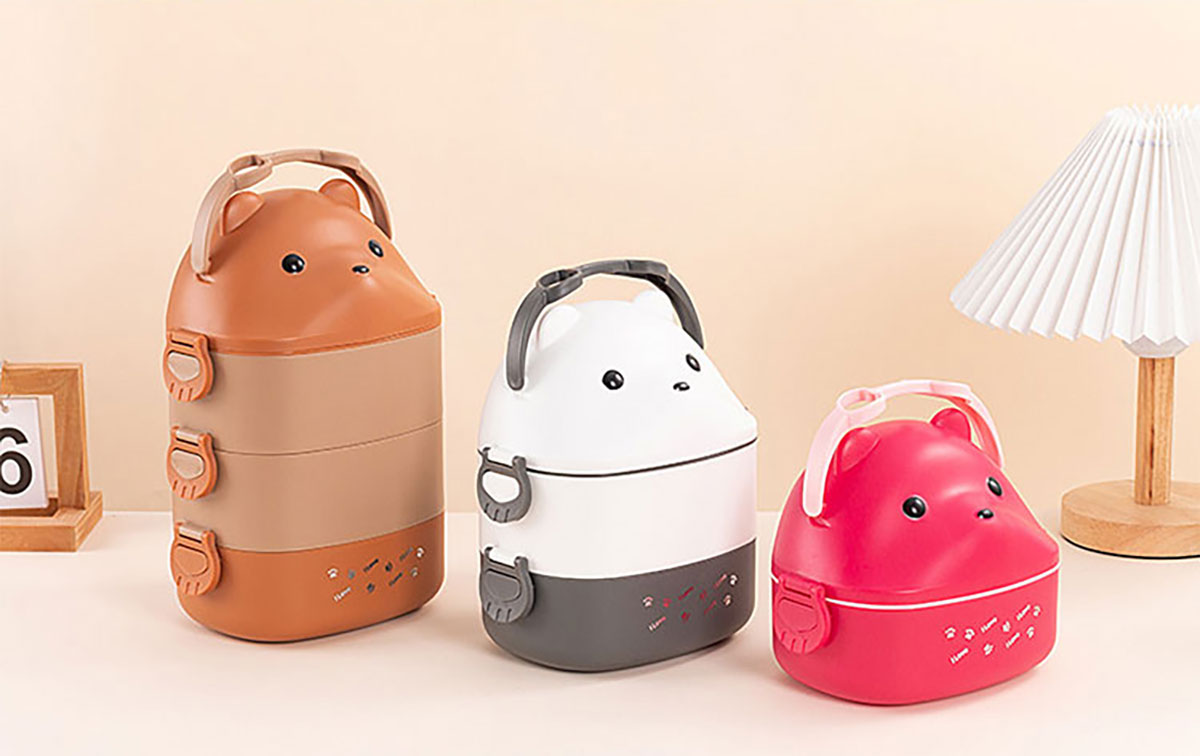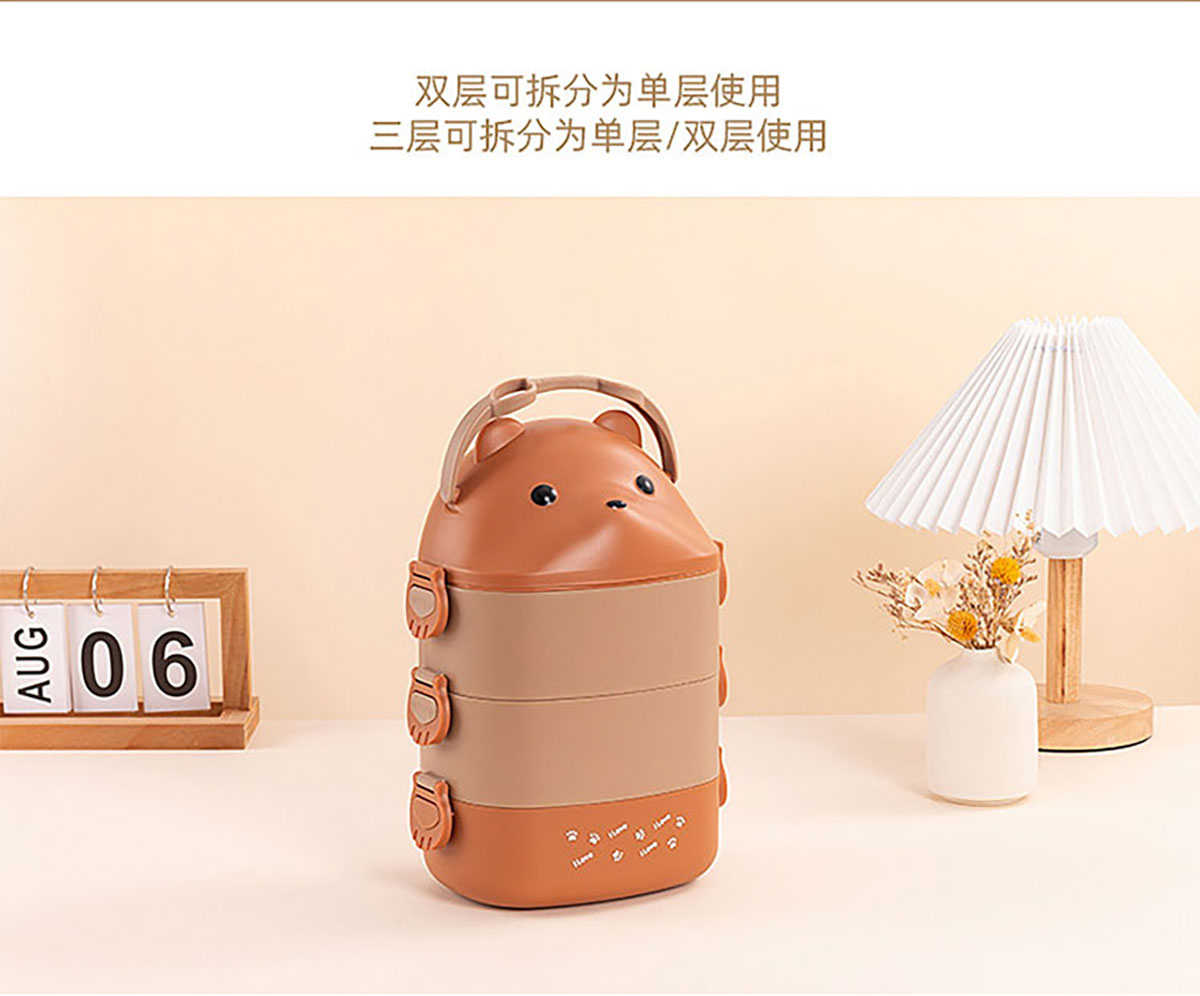 眼鏡熊長(zhǎng)方形單層/雙層/三層飯盒 (帶內(nèi)格)