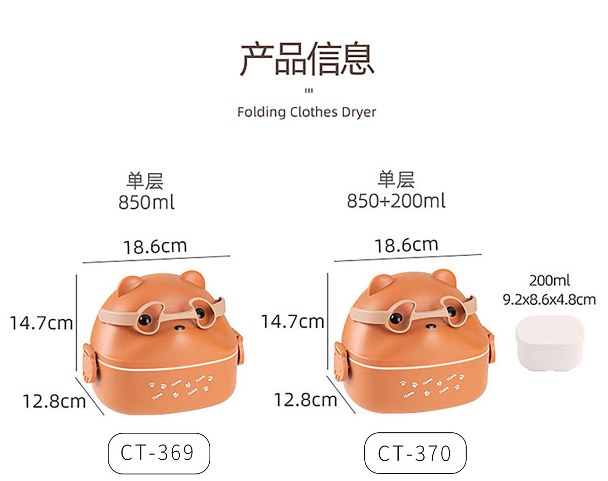 Size: CT-369(單層):186*128*147mm/850ml