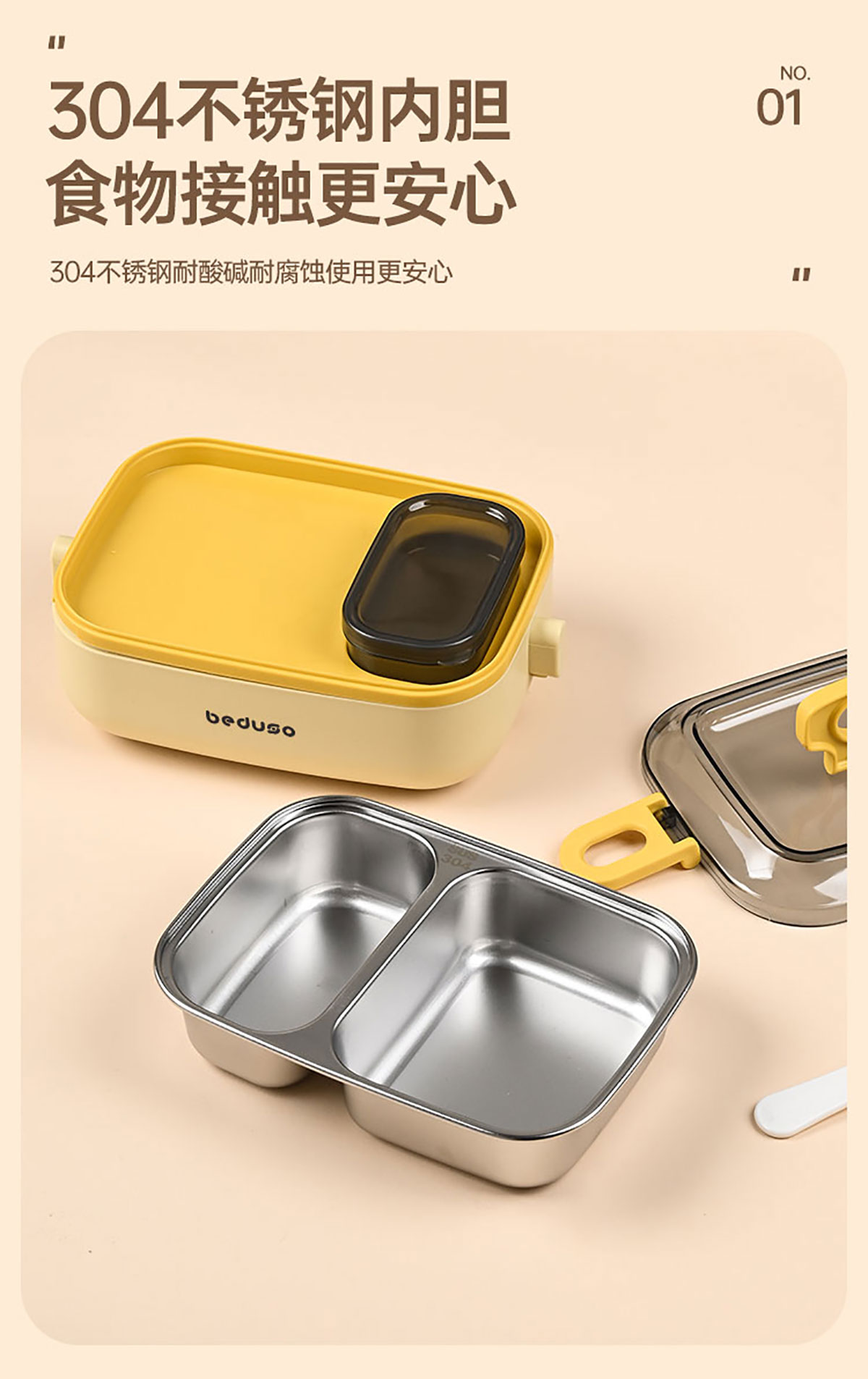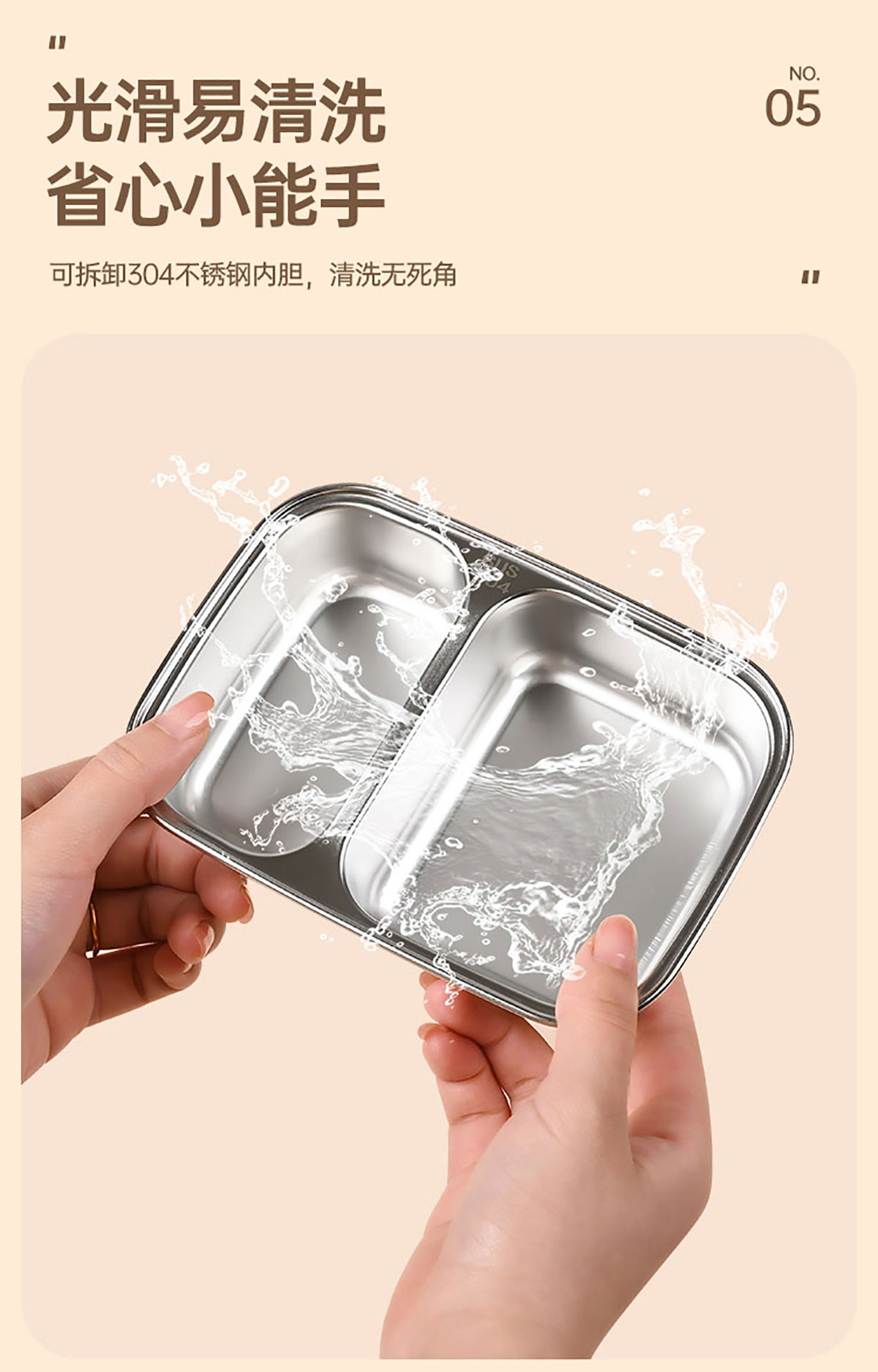 長(zhǎng)方形分格不銹鋼便當(dāng)盒500ml