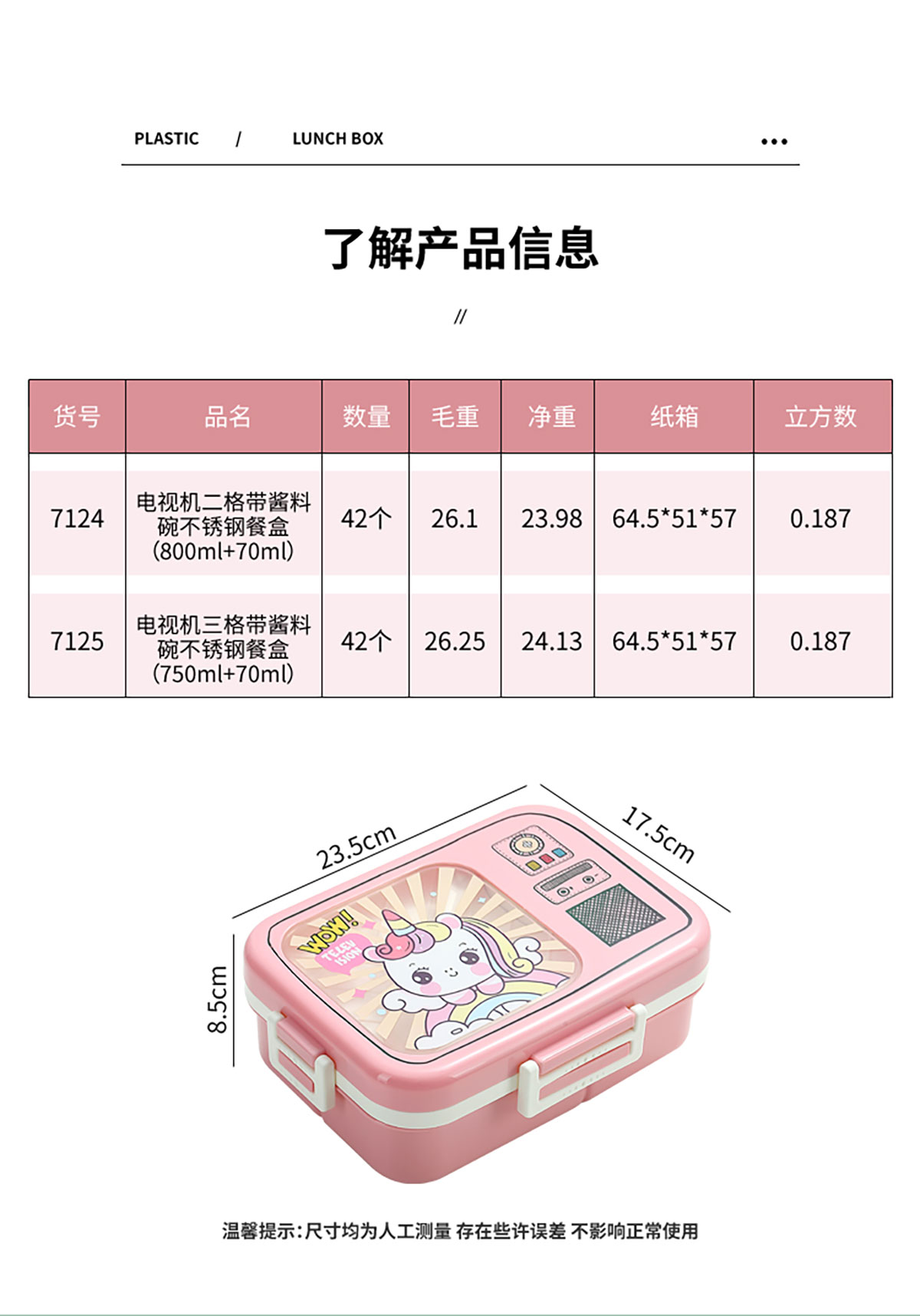 Size: LX-7124(二格):235*175*85mm/800ml+70ml
