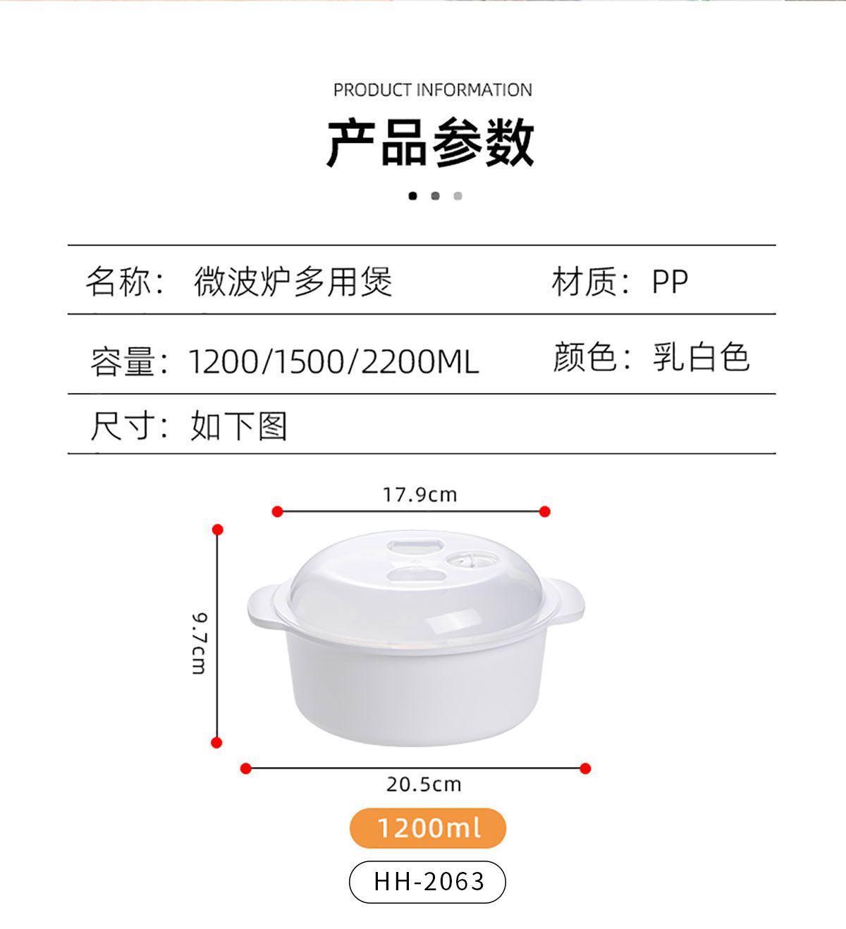 Size: HH-2063(大號):252*220*110mm/2200ml
