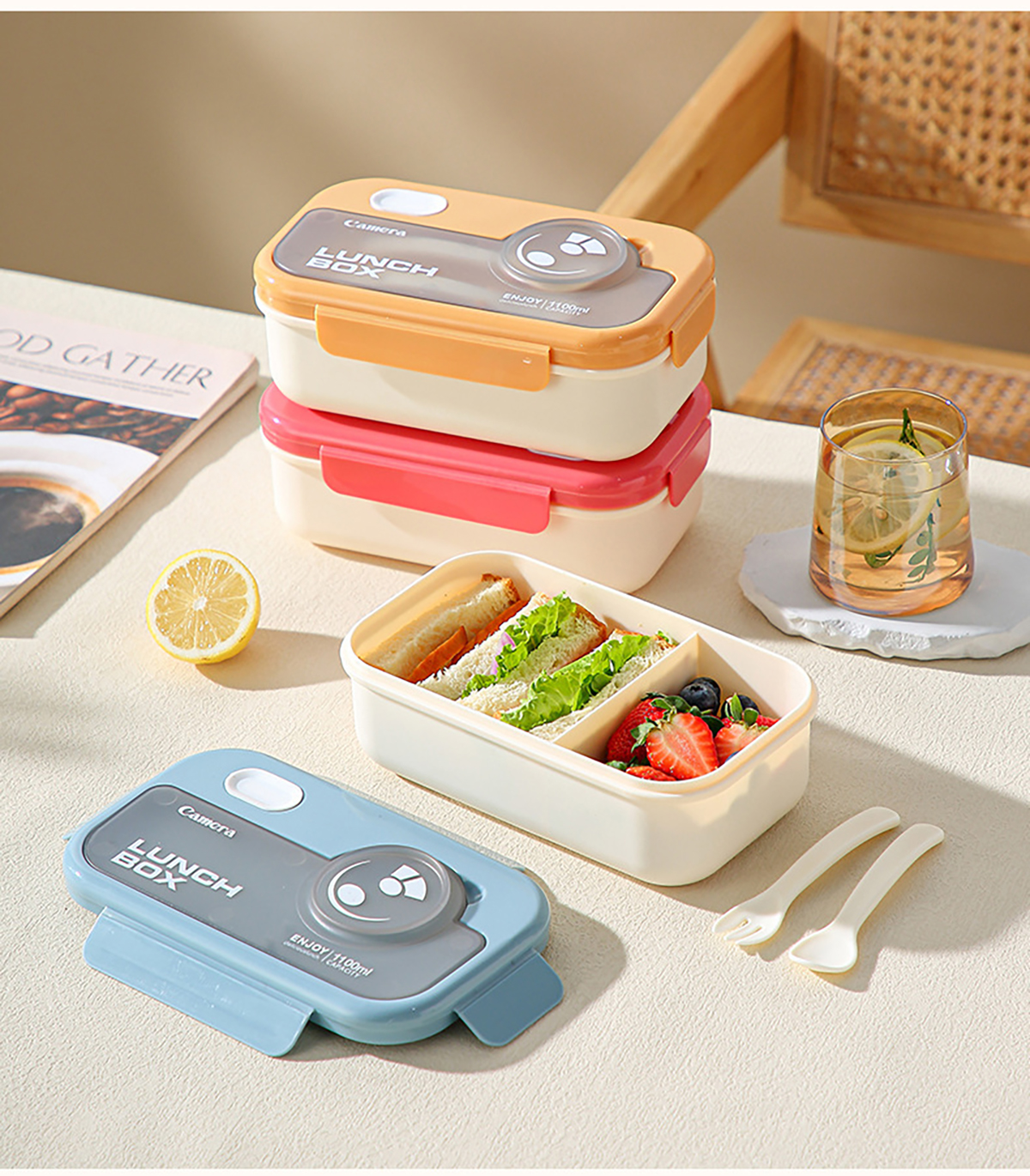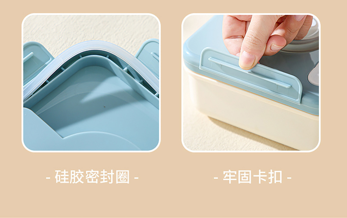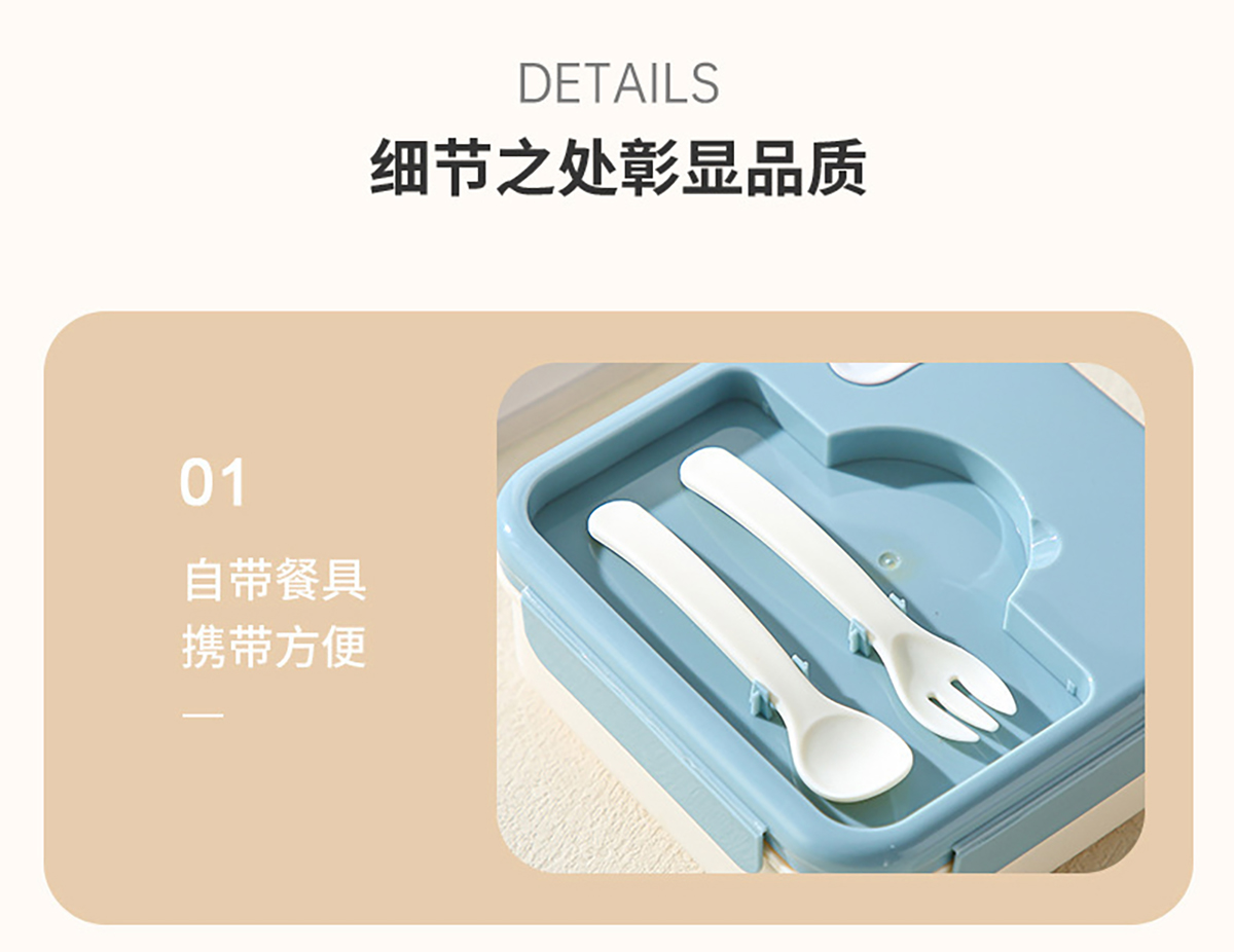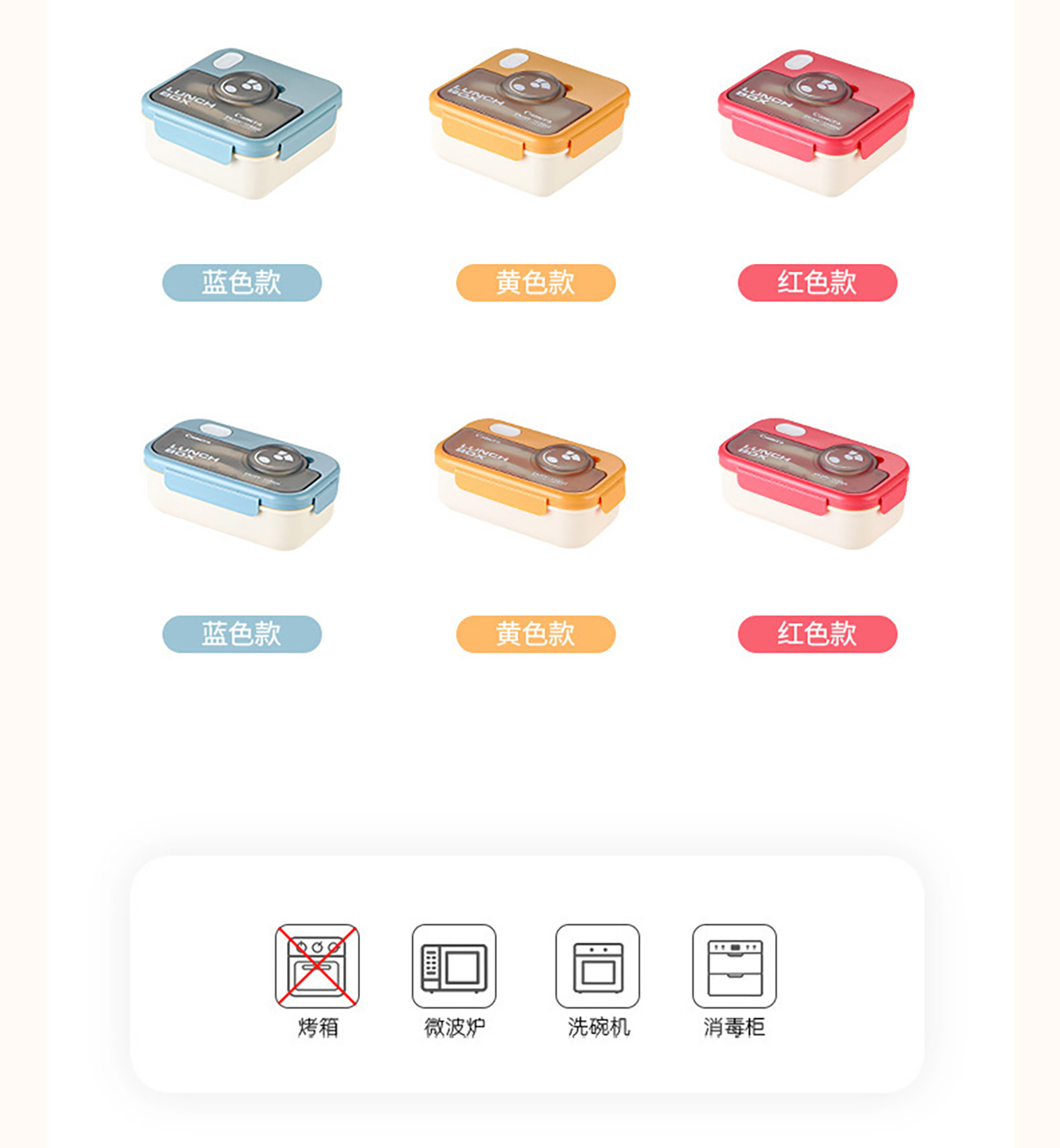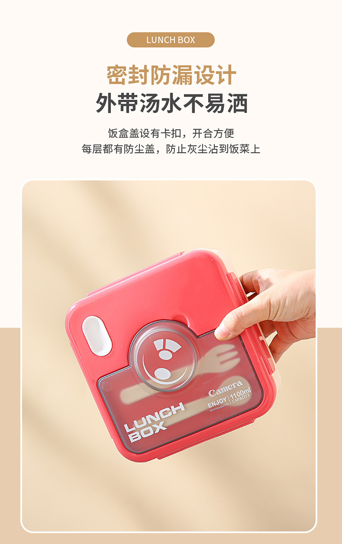 塑料款長(zhǎng)方形/正方形相機(jī)飯盒(配叉+勺)1100ml