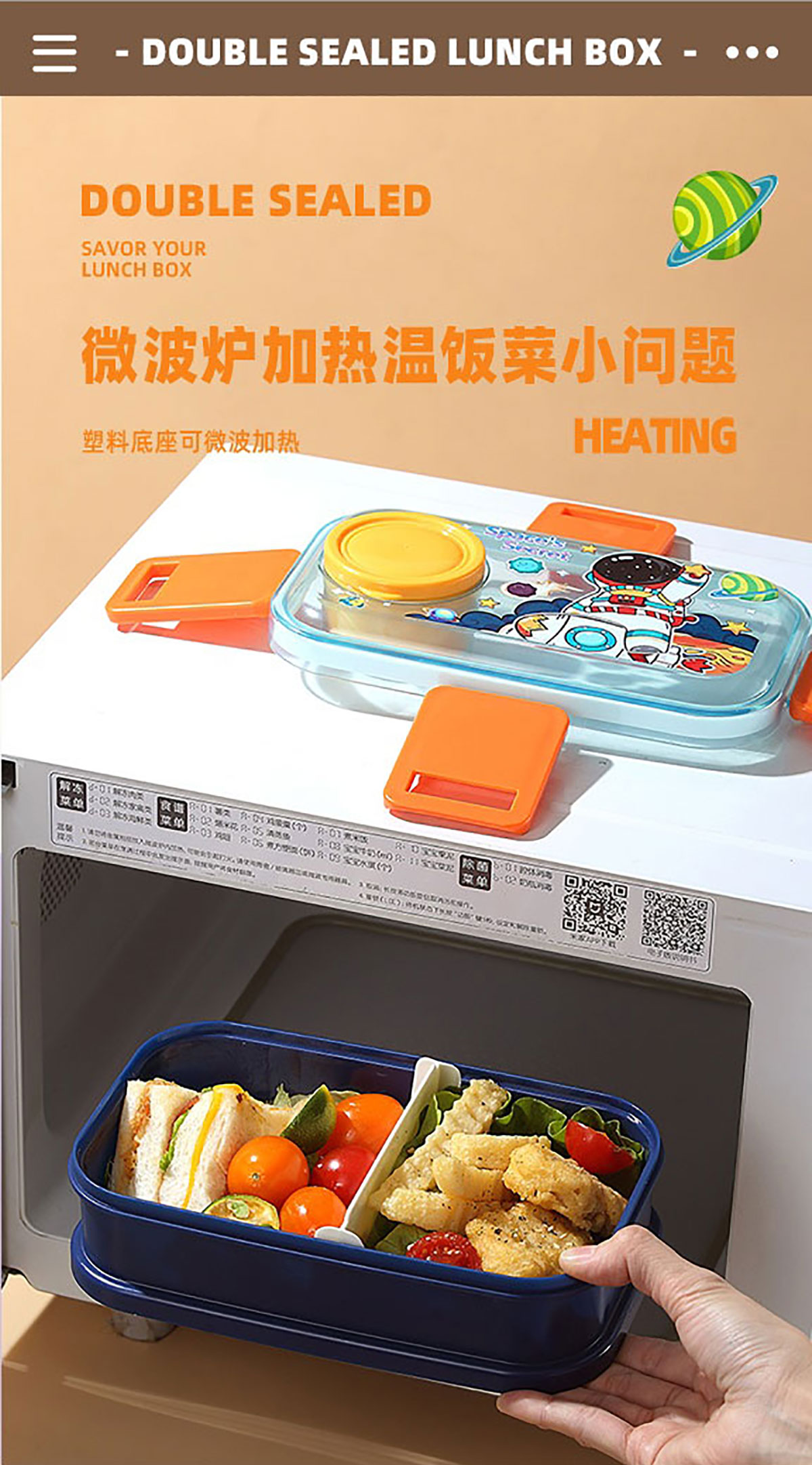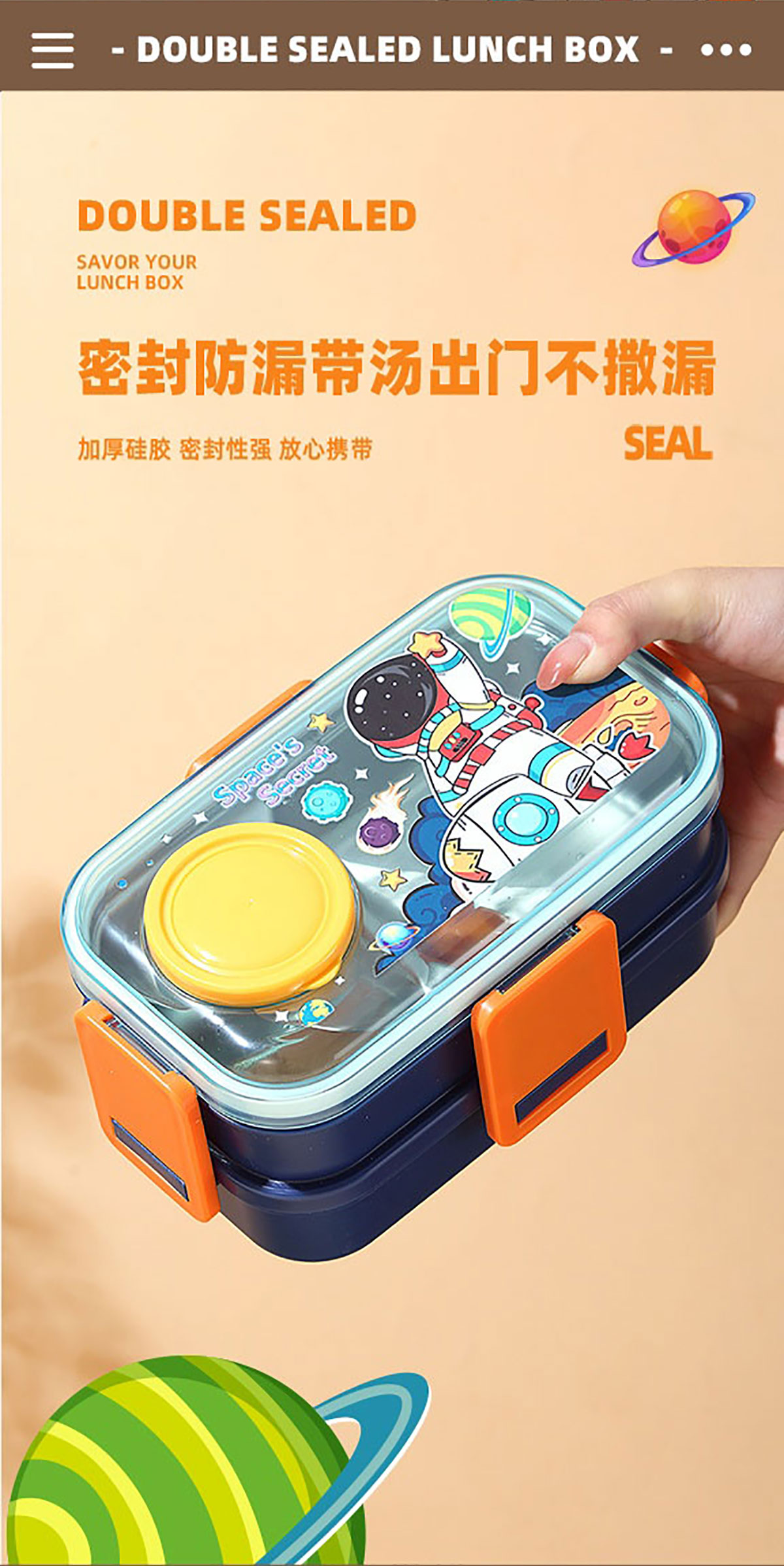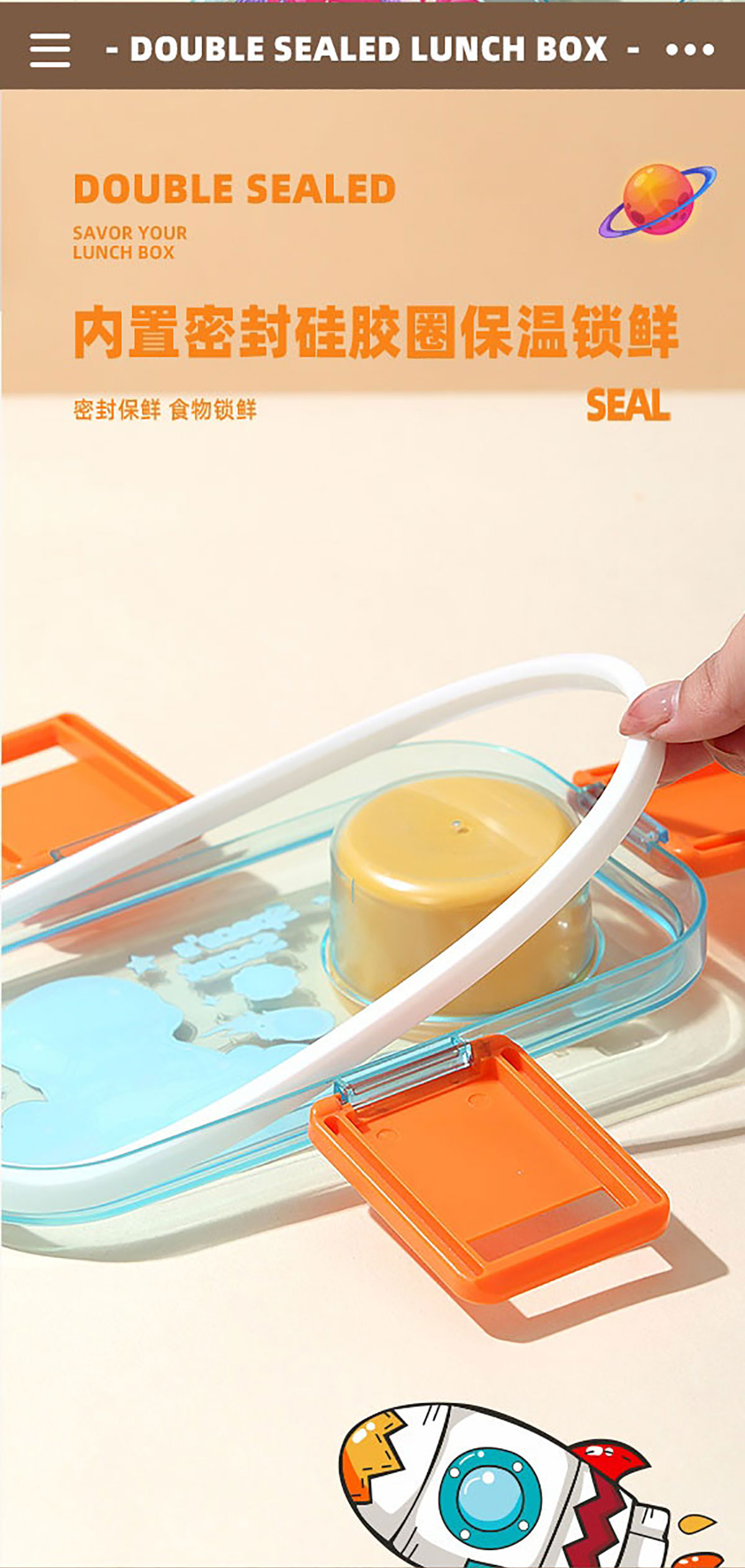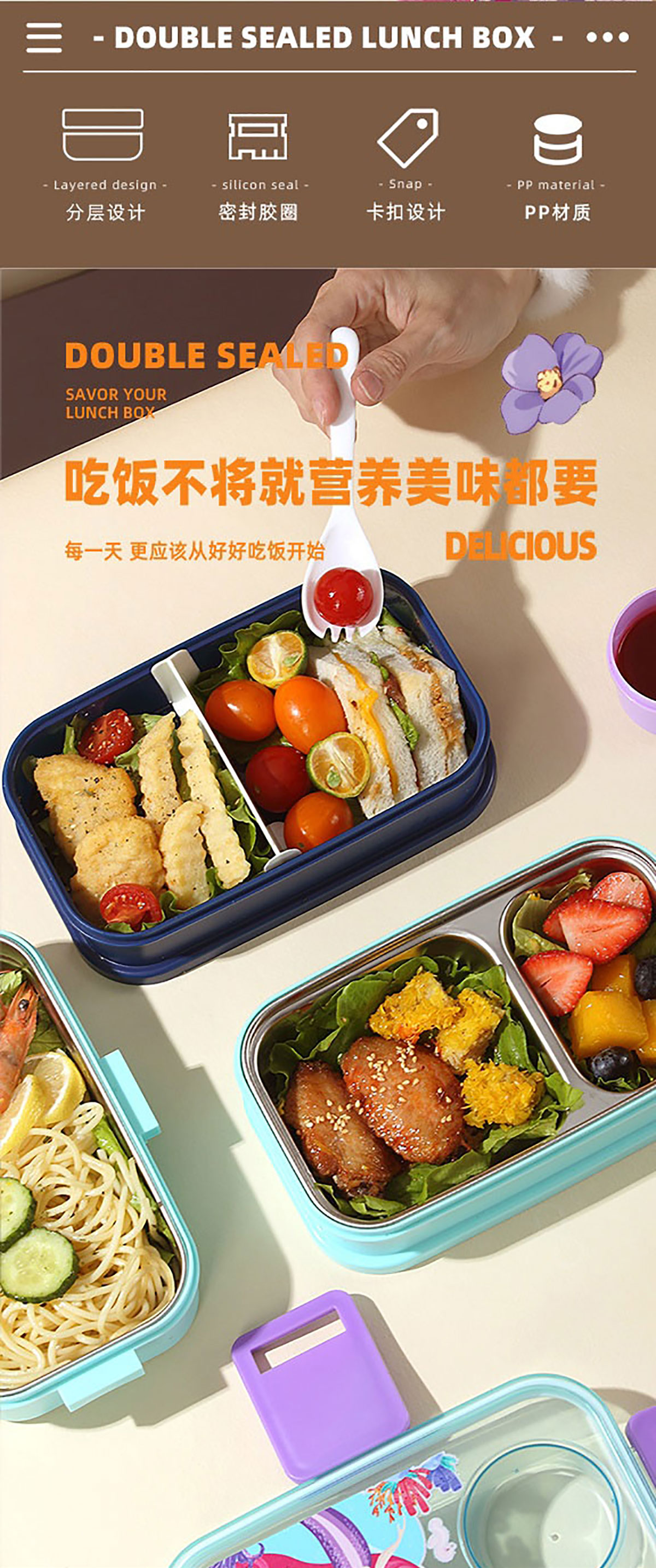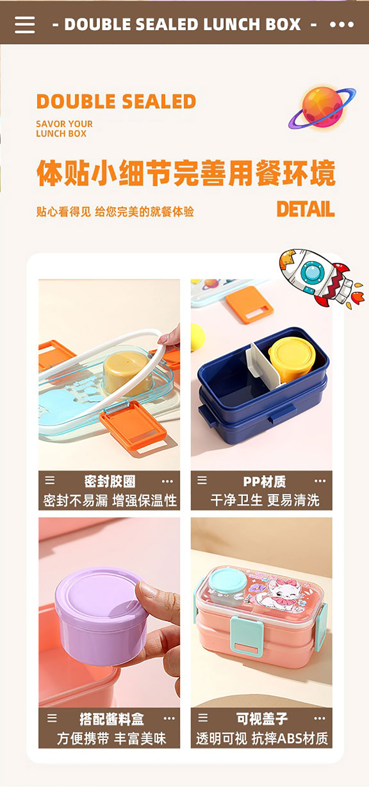 彩光卡通雙層餐盒(700mlx2+外置醬料杯80ml+pp勺)