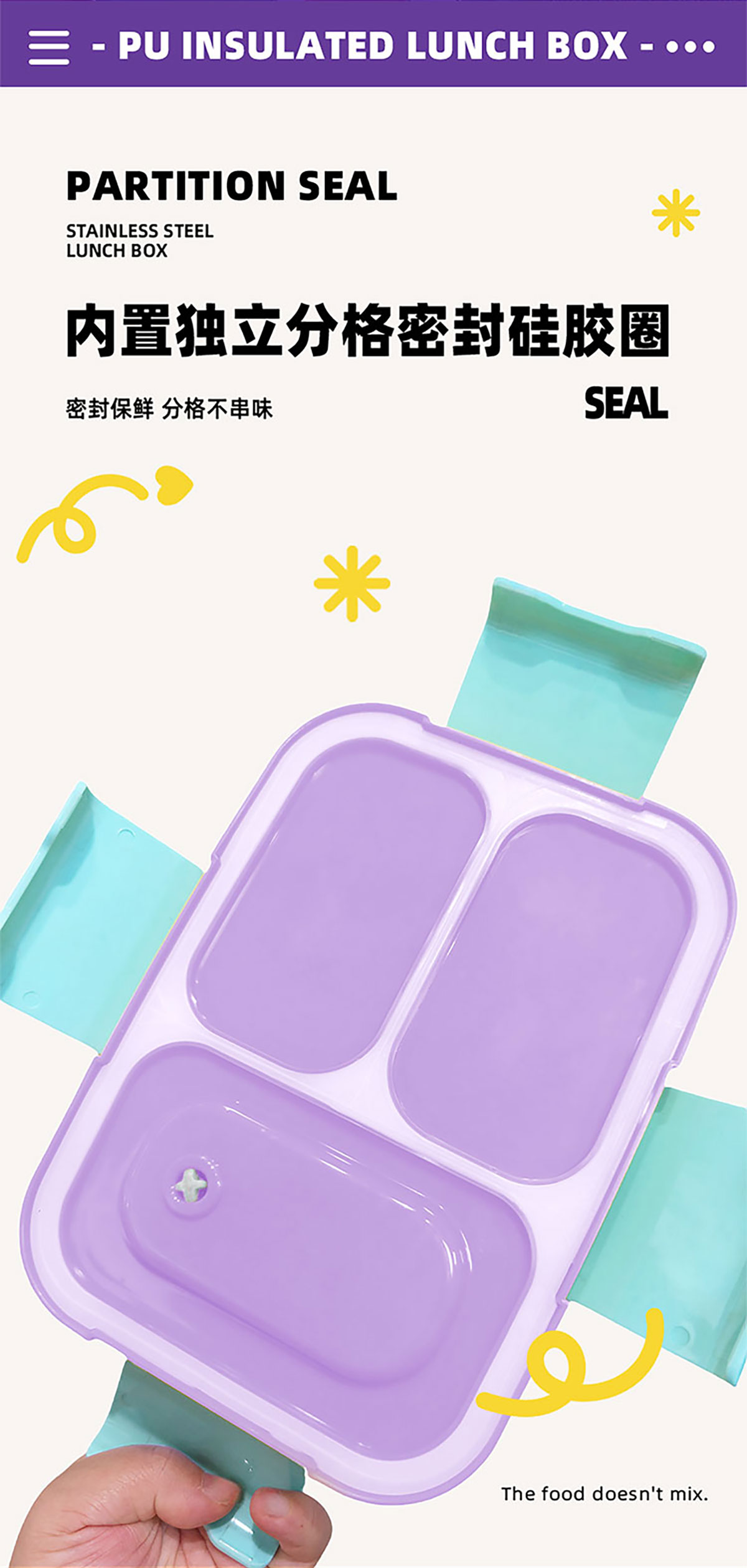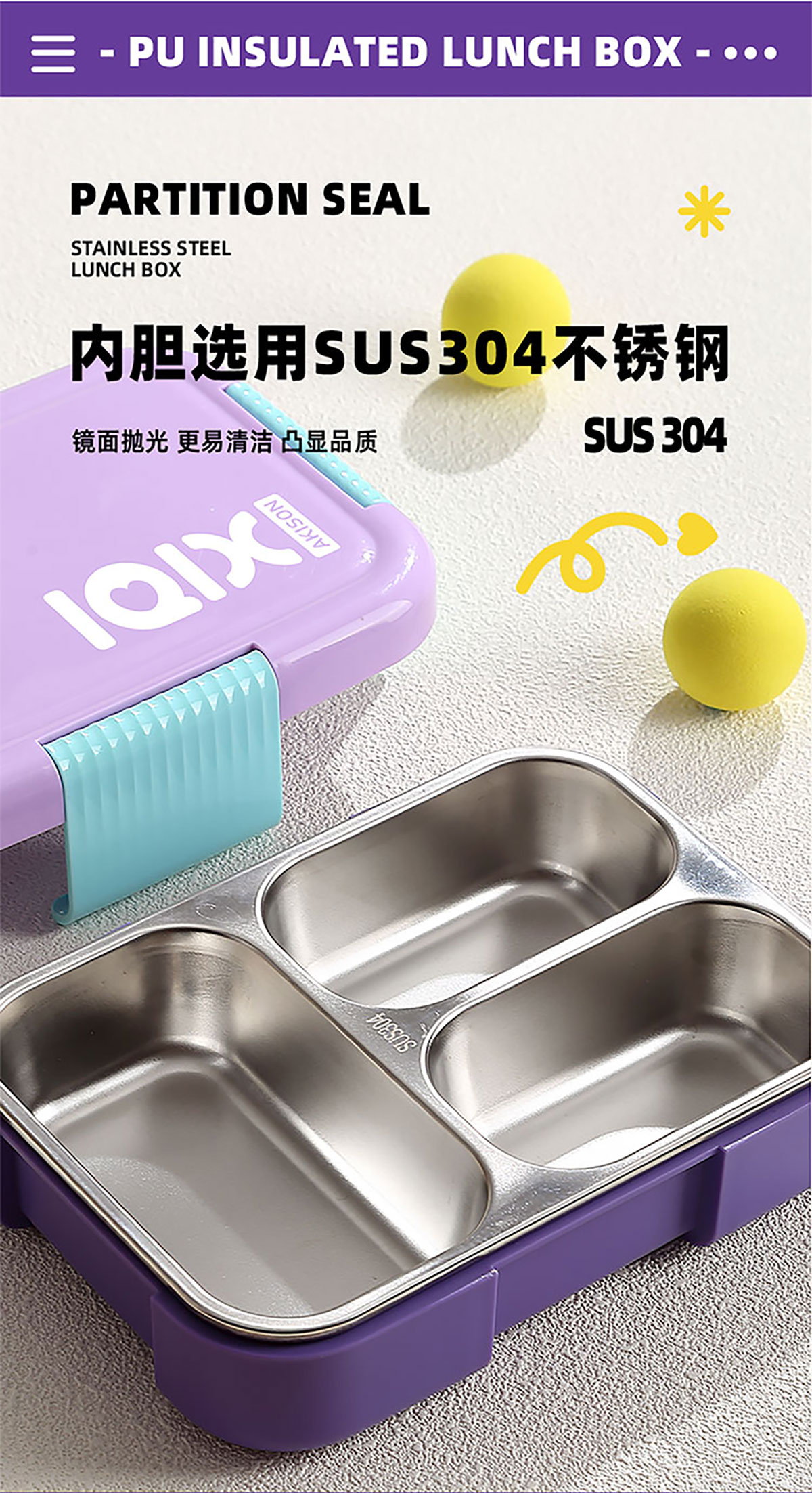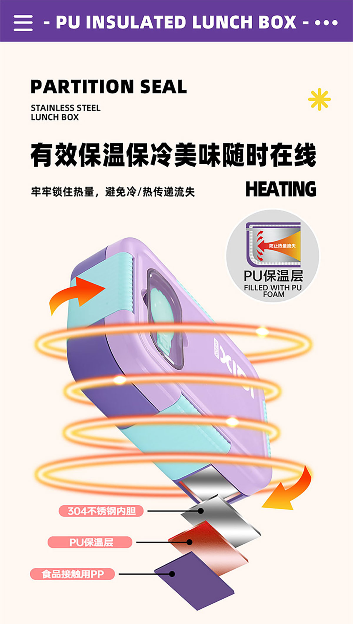PU全保溫不串味密封餐盒(不銹鋼3格/2格+PP折疊勺)