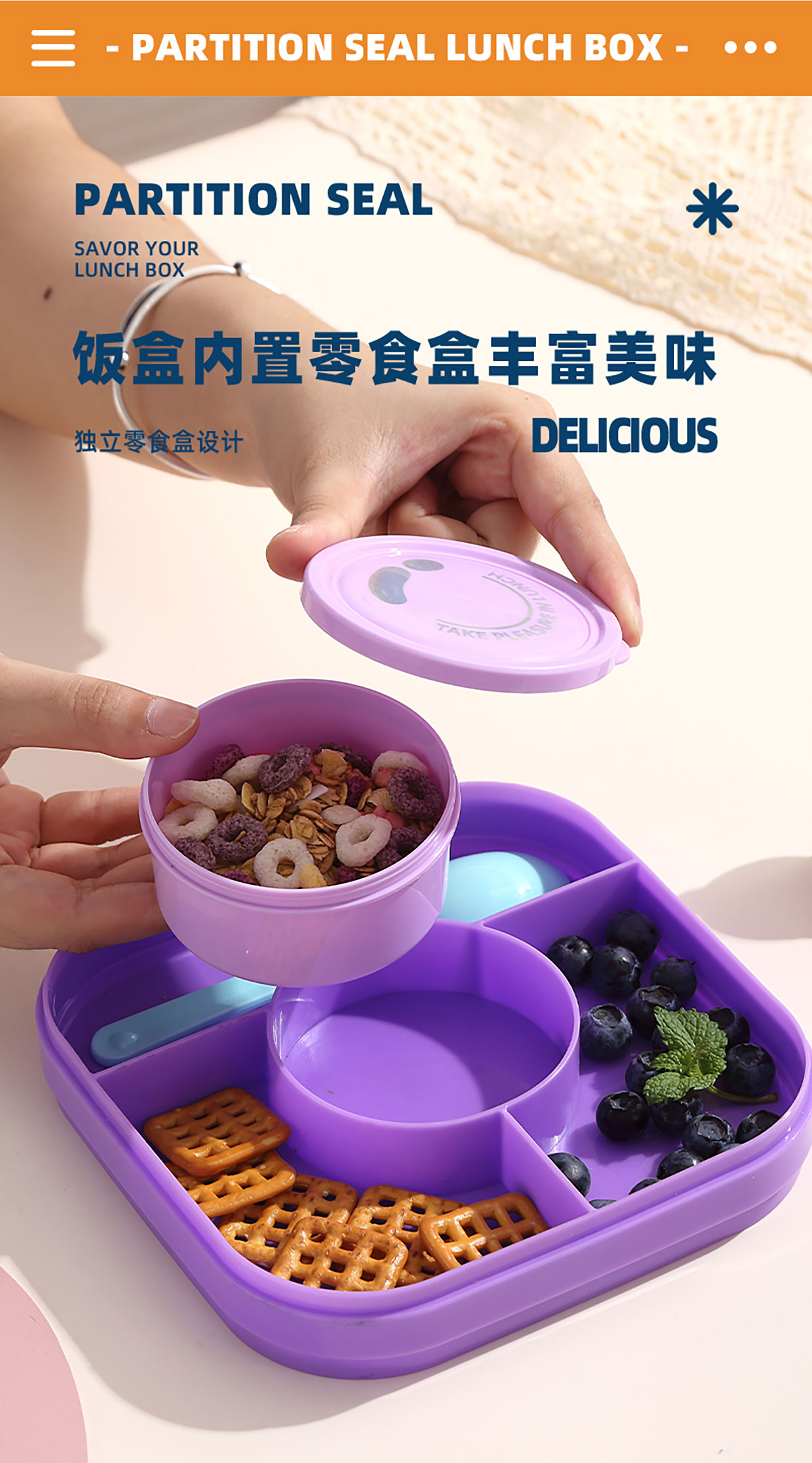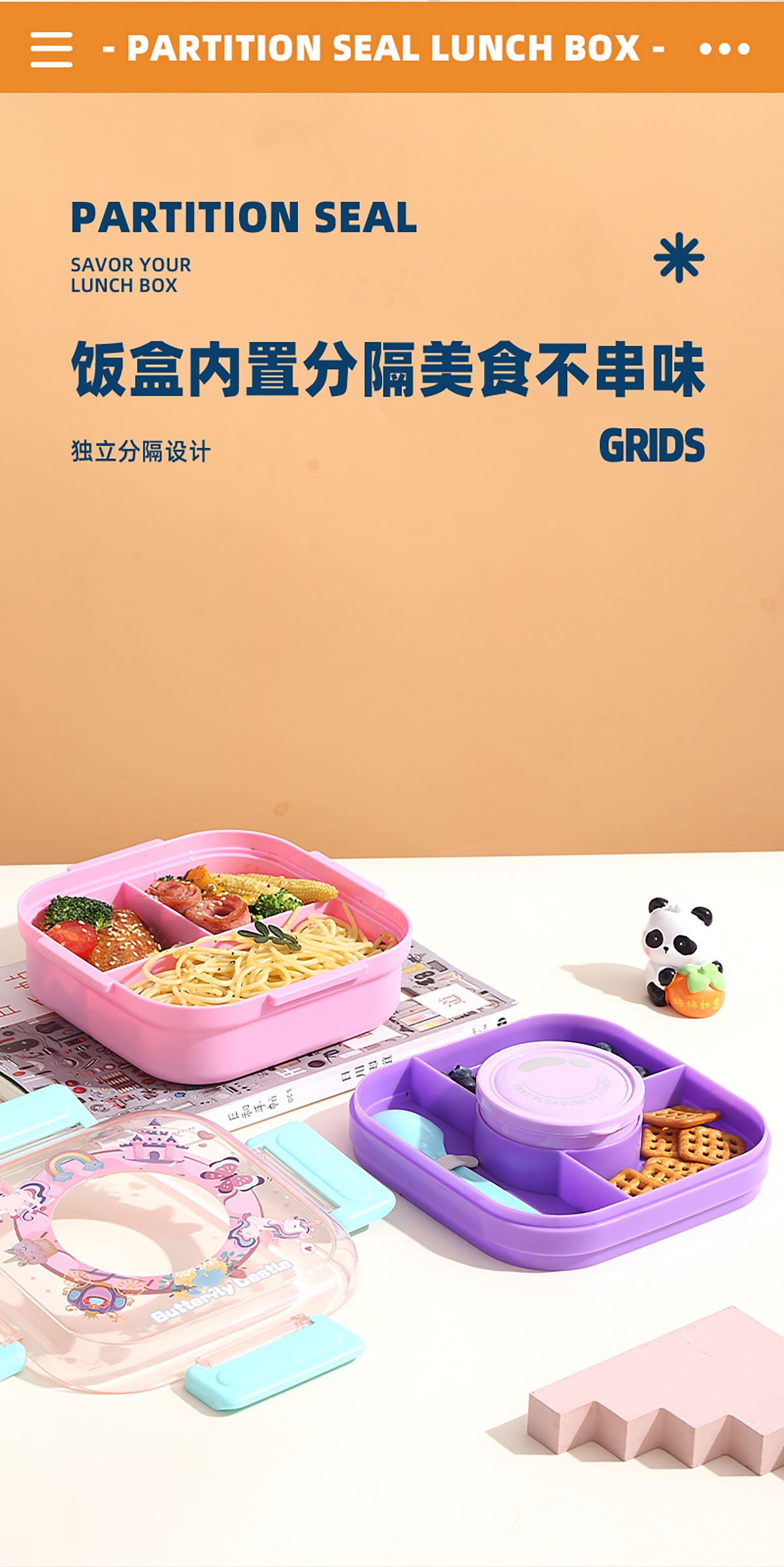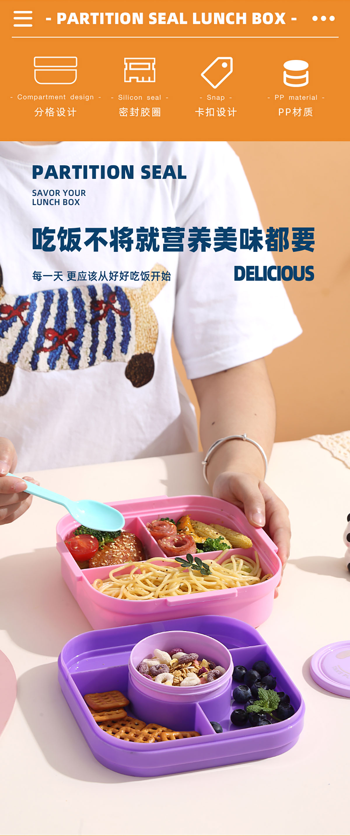 相機(jī)不串味餐盒(方形塑料三格1100ml+碗150ml+PP勺)