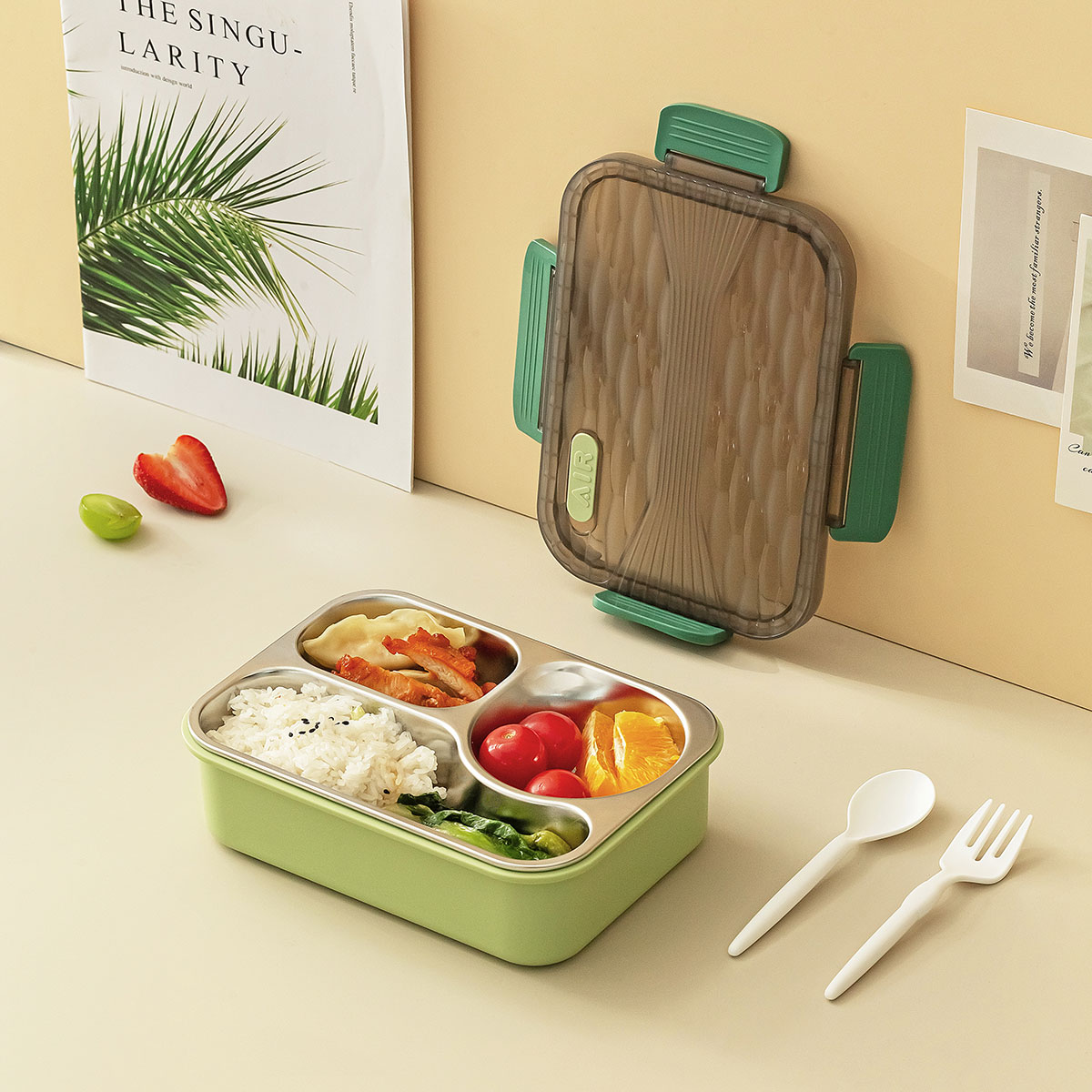 小簡三格不銹鋼飯盒