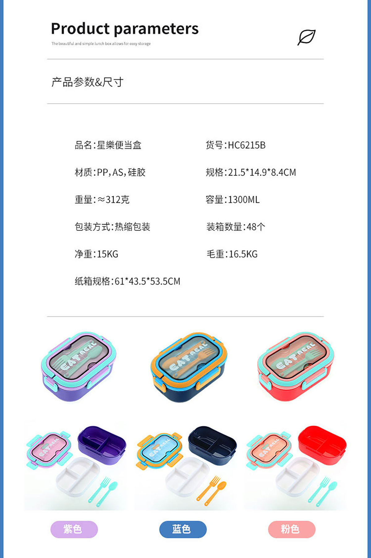 SWY-HC6215B(三格PP款加高款):215*149*84mm/1300ml