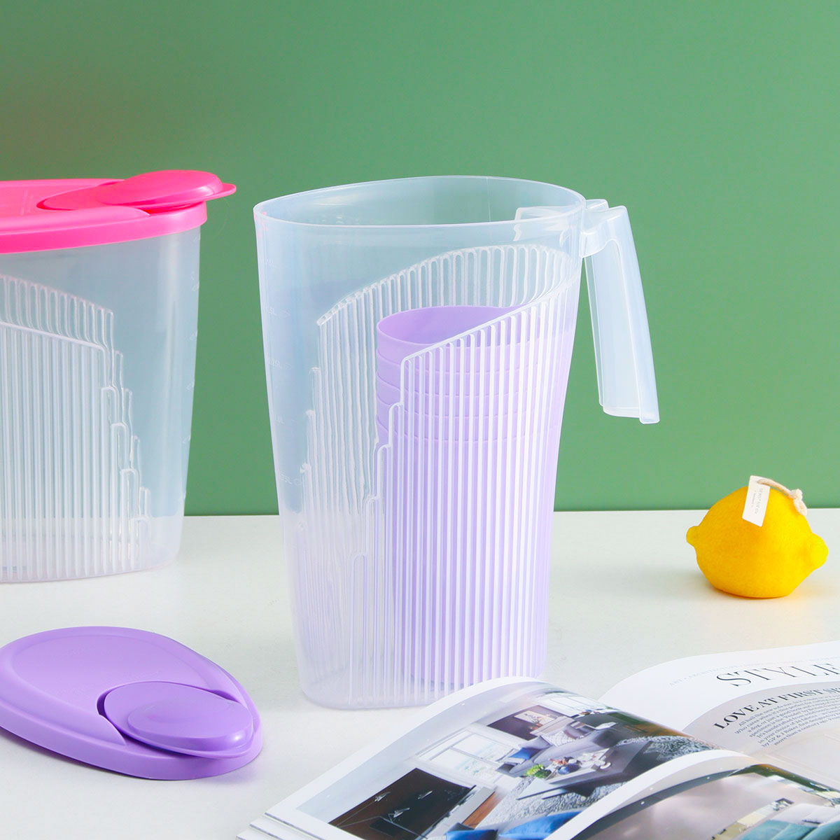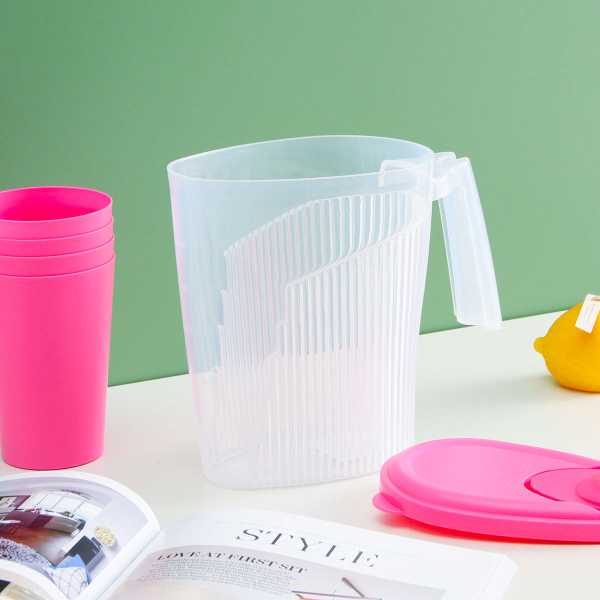 Size: XL-R2081(大號):果汁壺:L200*W110*H230mm/1.8L 水杯:Φ80*Φ58*110mm/350ml